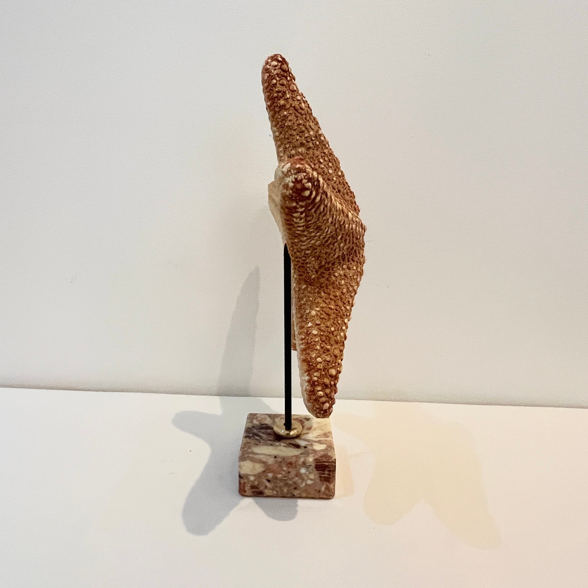Grande et belle ancienne étoile de mer Protoreaster Nodosus monté sur un socle en marbre rose, rondelle laiton et tige de fer.