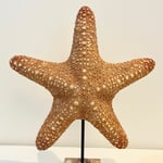 Grande étoile de mer naturelle Protoreaster Nodosus sur socle en marbre rose.