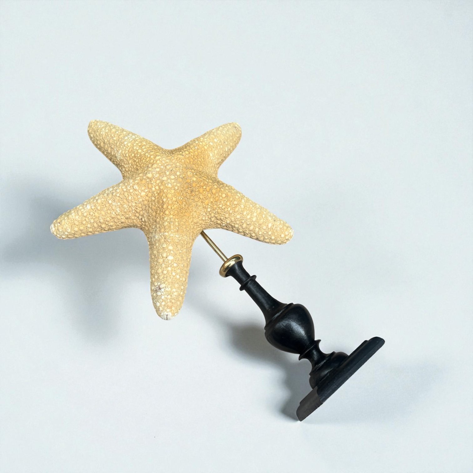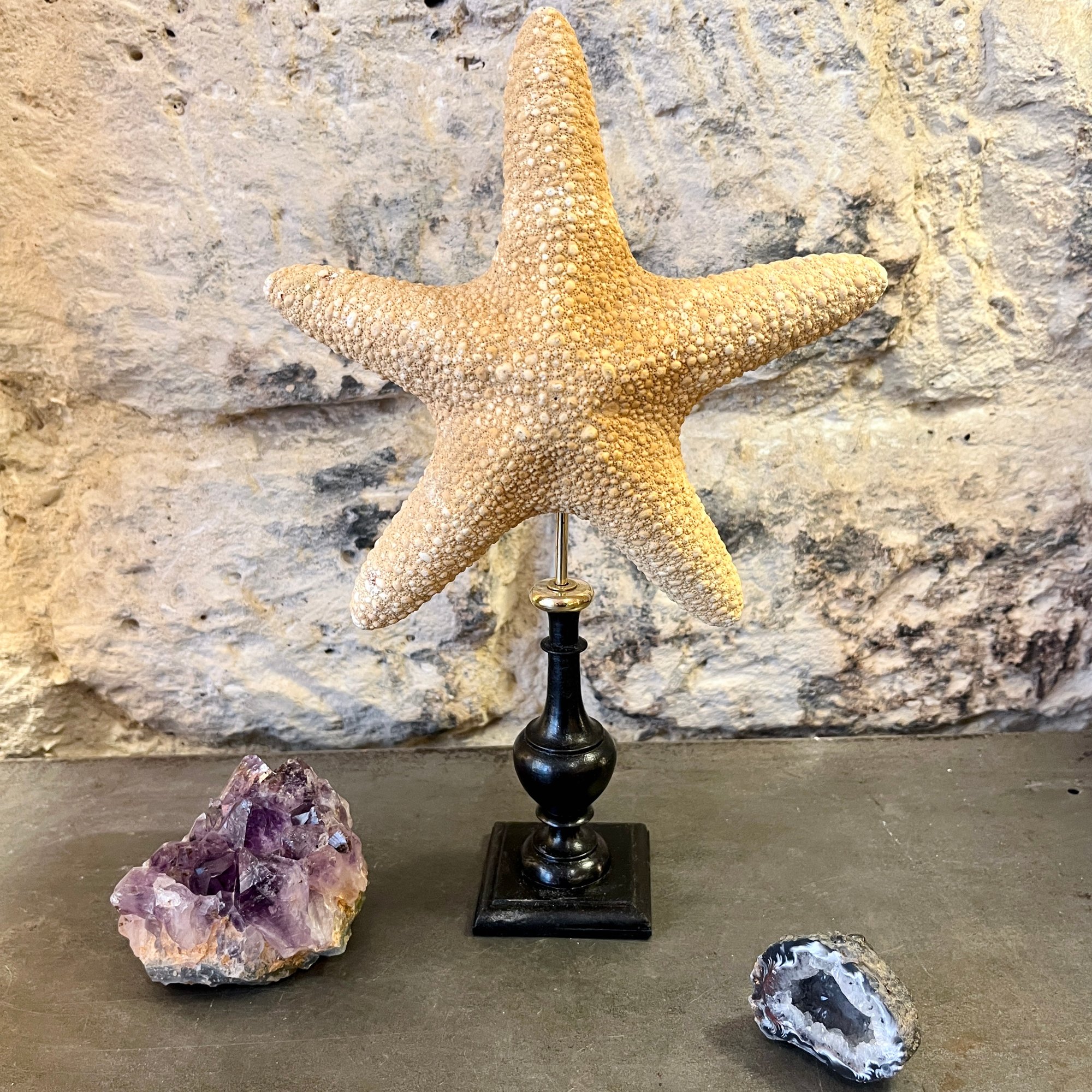 étoile de mer sur socle en bois tourné fin XIXe - Protoreaster nodosus - cabinet de curiosités