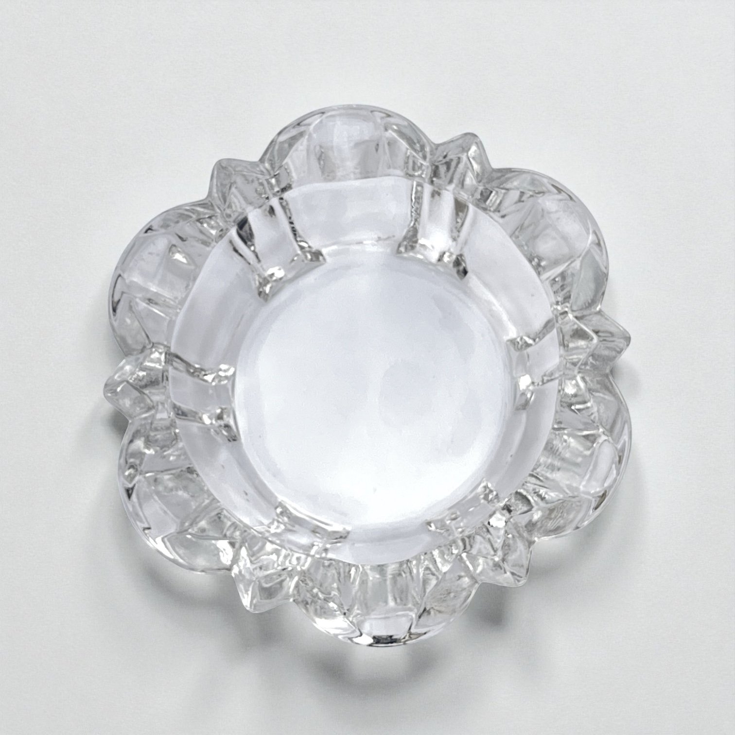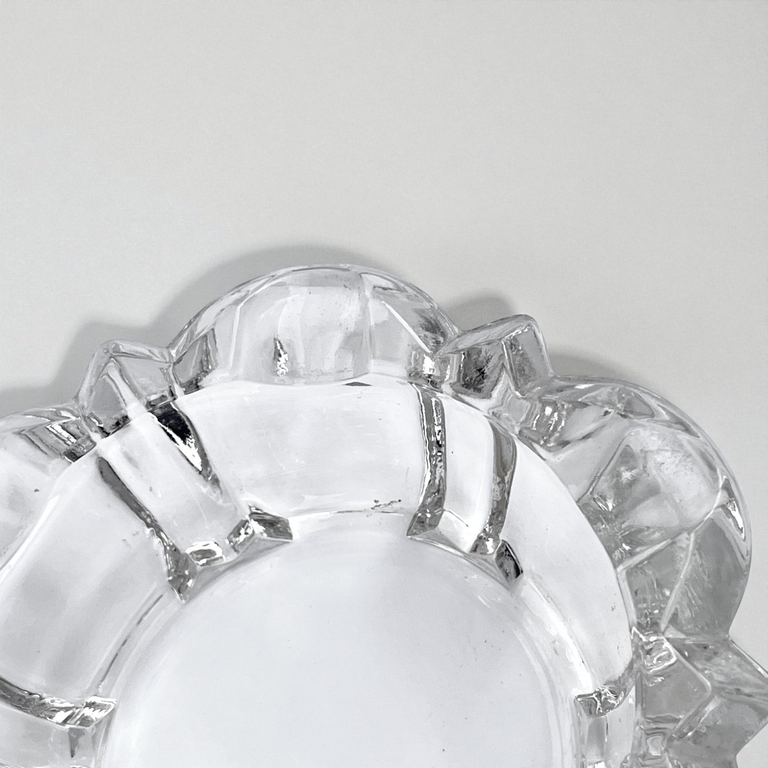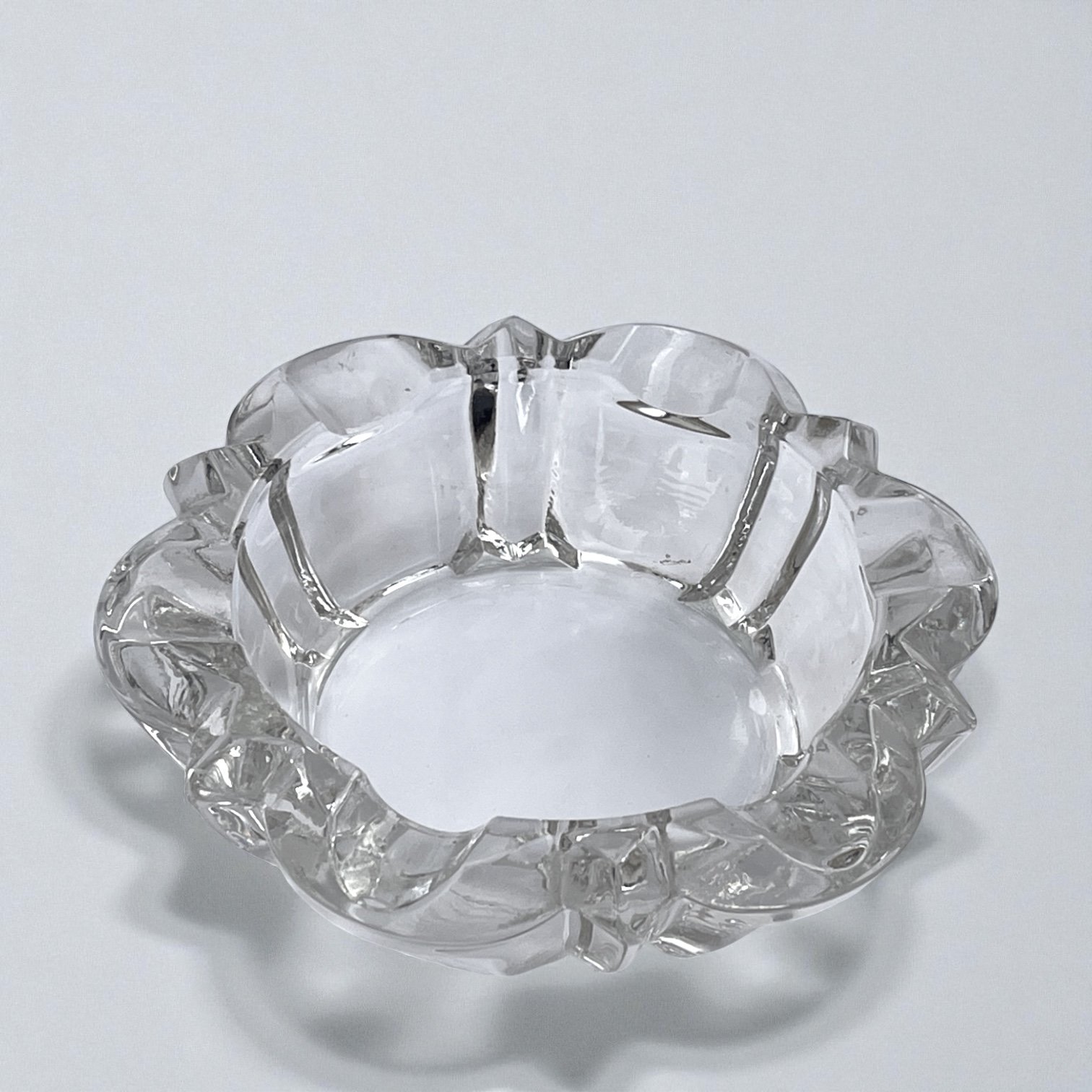 Beau cendrier ou vide-poches en verre pressé moulé, typique du style Art Déco des années 1930.