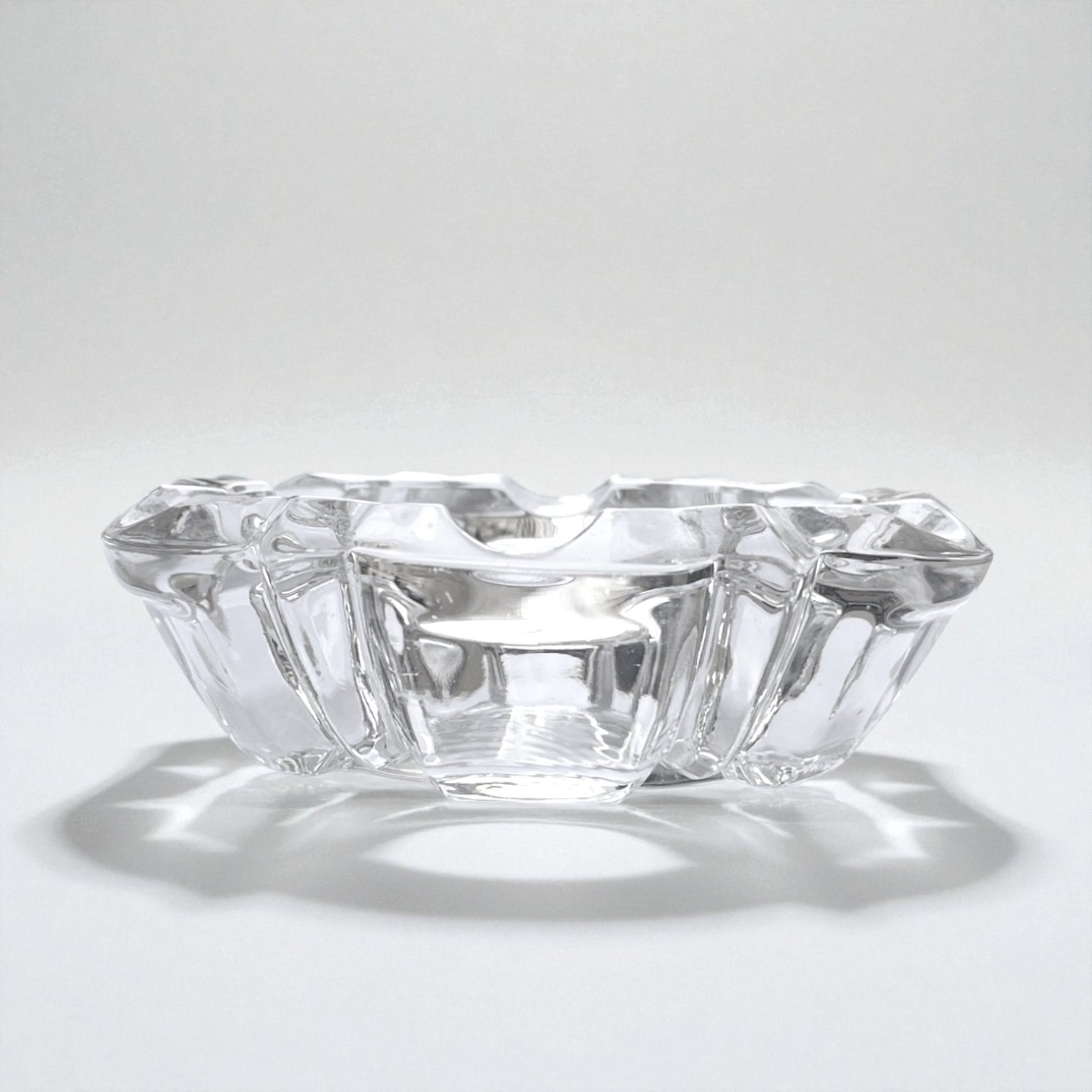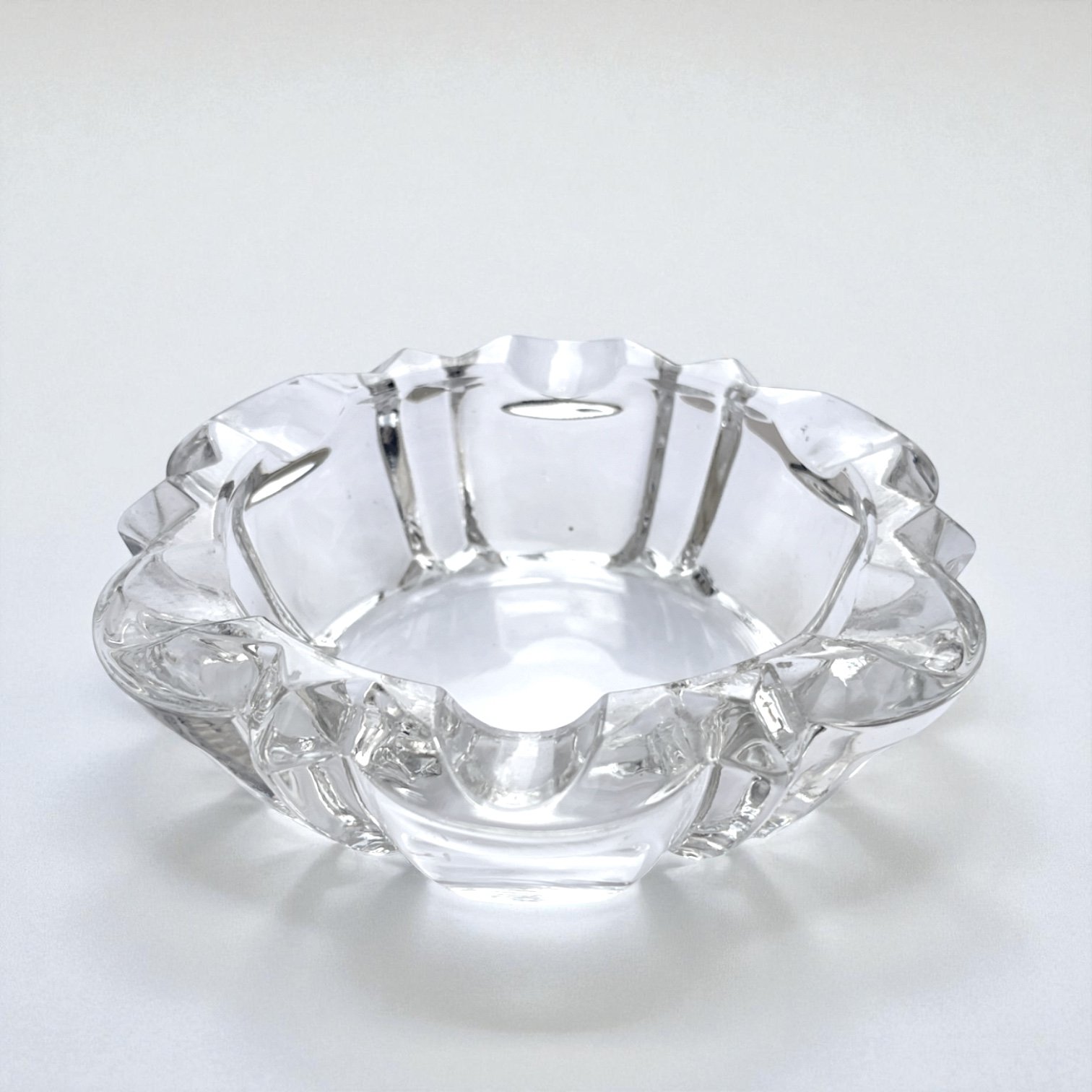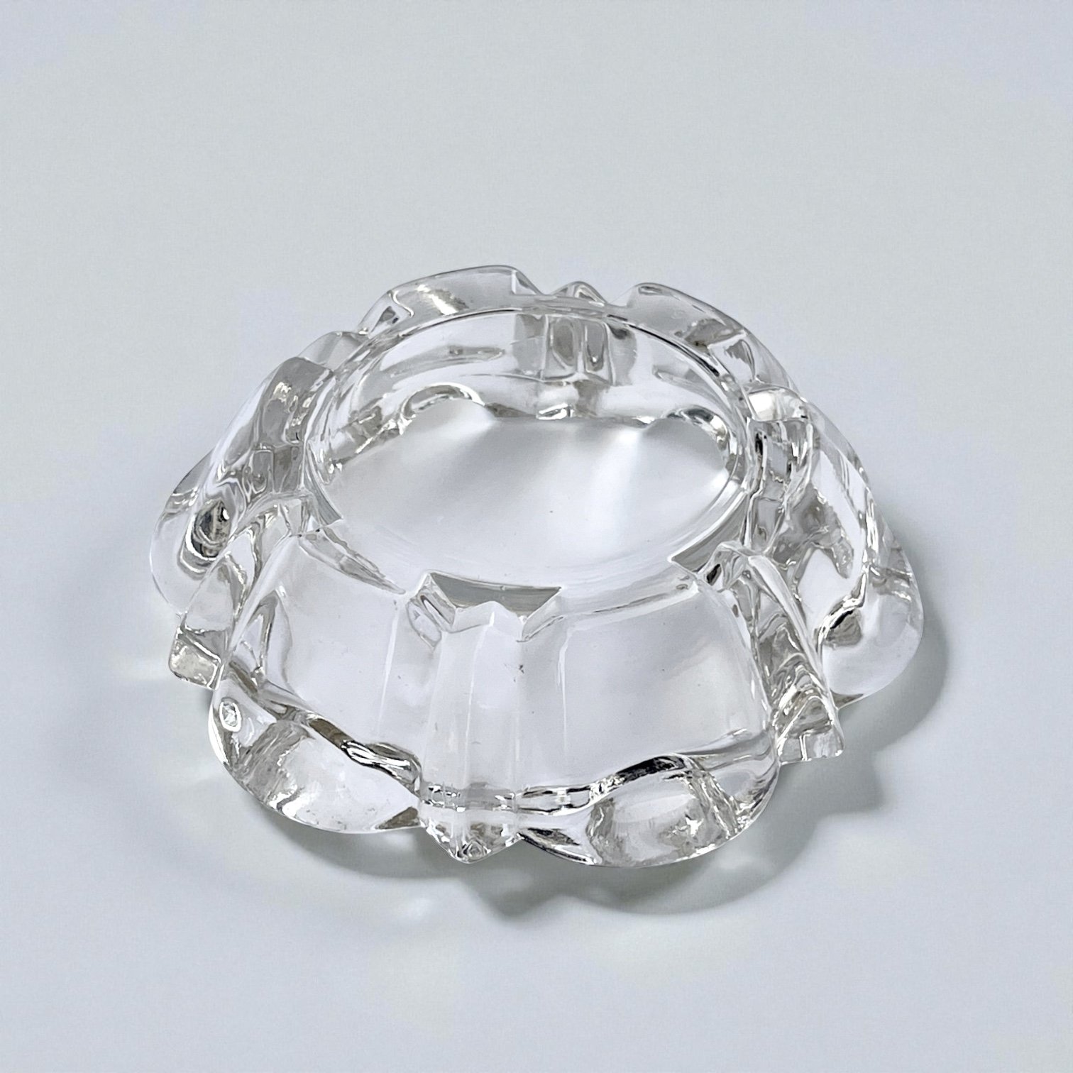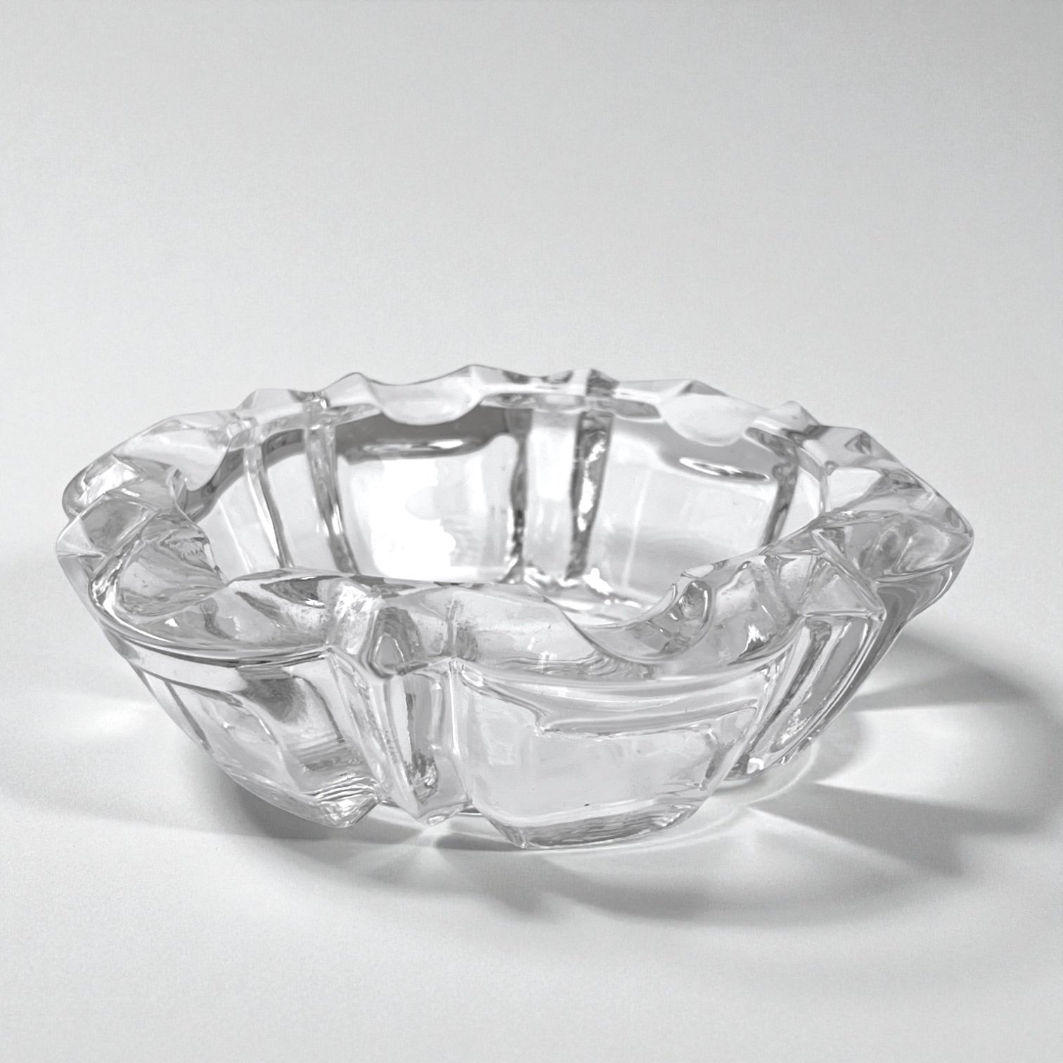 Beau cendrier ou vide-poches en verre pressé moulé, typique du style Art Déco des années 1930.
