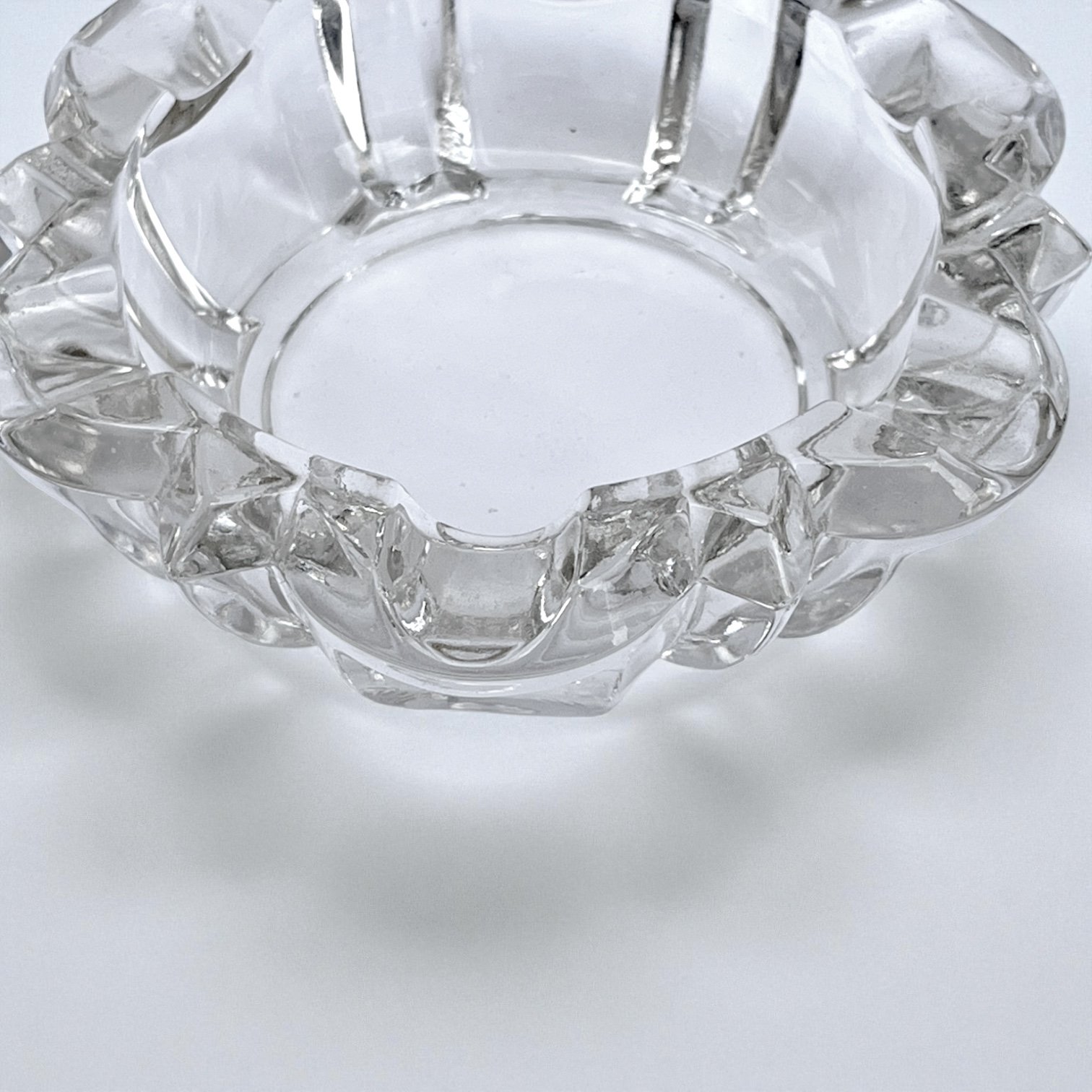 Beau cendrier ou vide-poches en verre pressé moulé, typique du style Art Déco des années 1930.