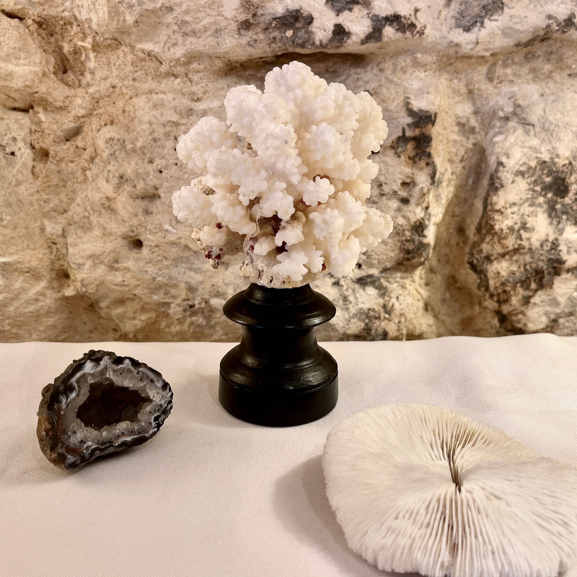Ancien corail blanc naturel sur socle en bois tourné fin XIXe - Cabinet de curiosités