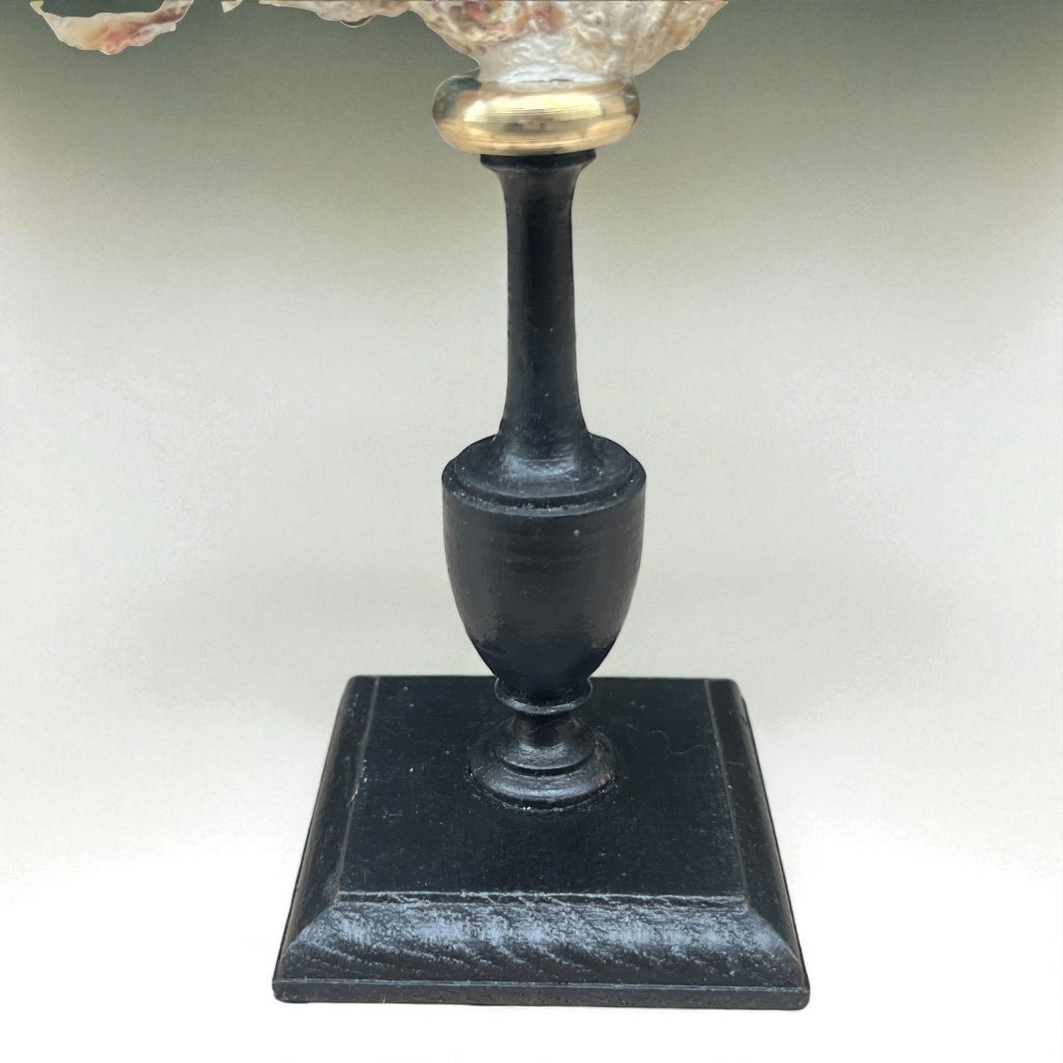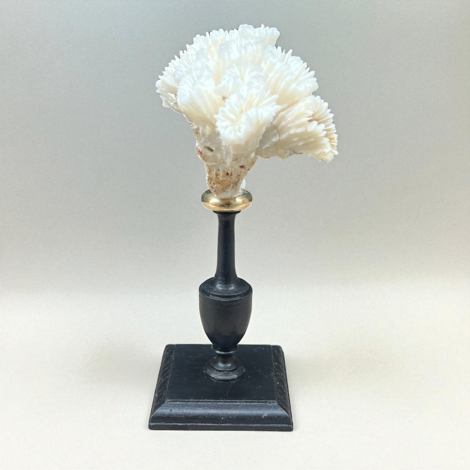 Pièce unique - Ancien corail blanc naturel Lobophyllia Corymbosa monté sur un socle en bois noirci fait à partir de pièce en bois tourné d'époque Napoléon III, fin XIXe et pièce de laiton.