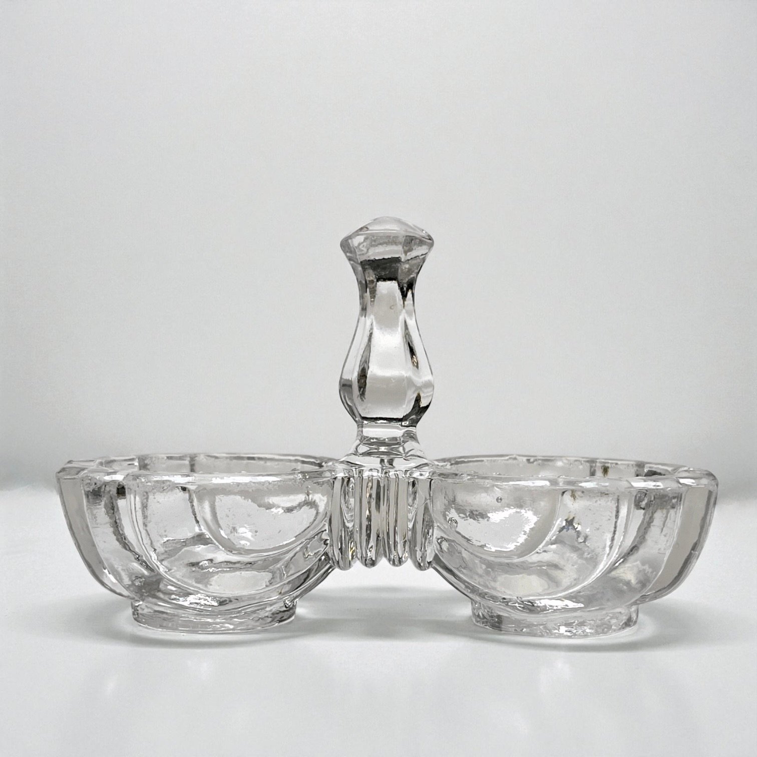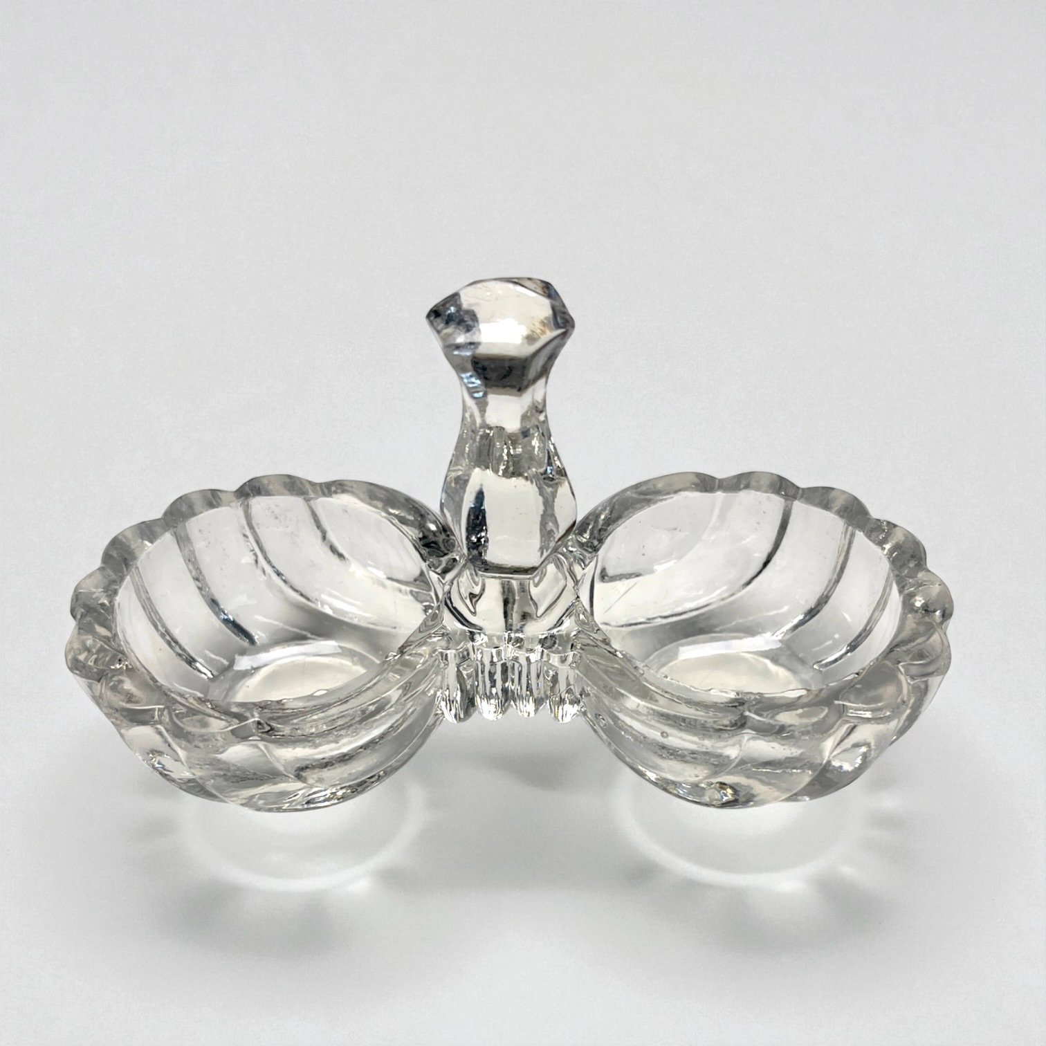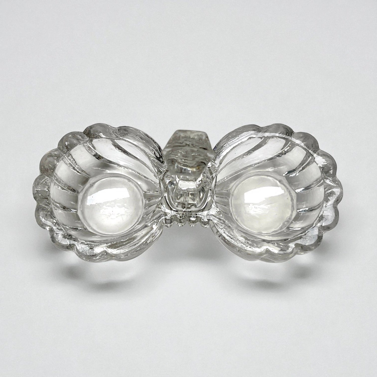 Ancien salière poivrière en verre taillé Art Déco forme coquilles - Saleron début XXe