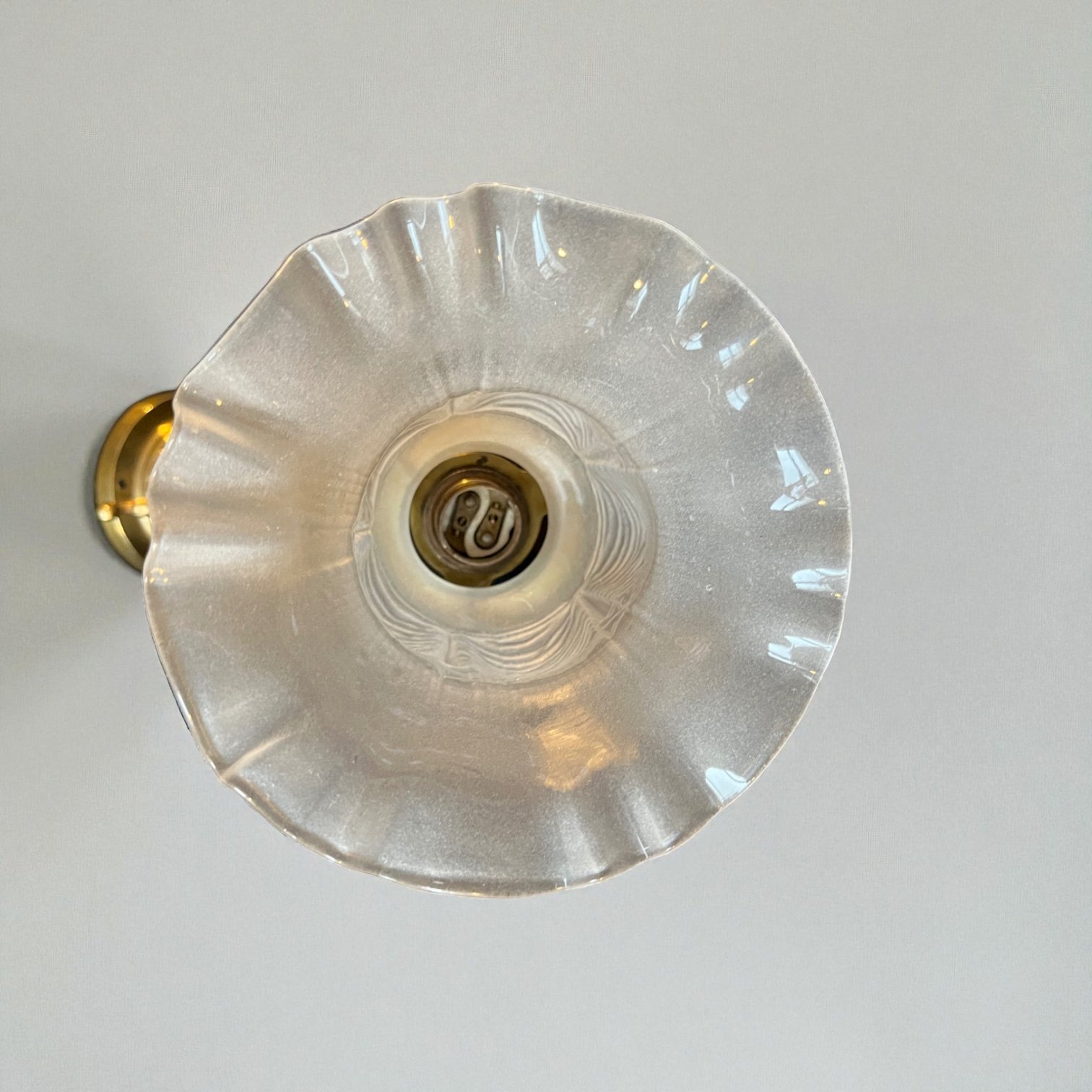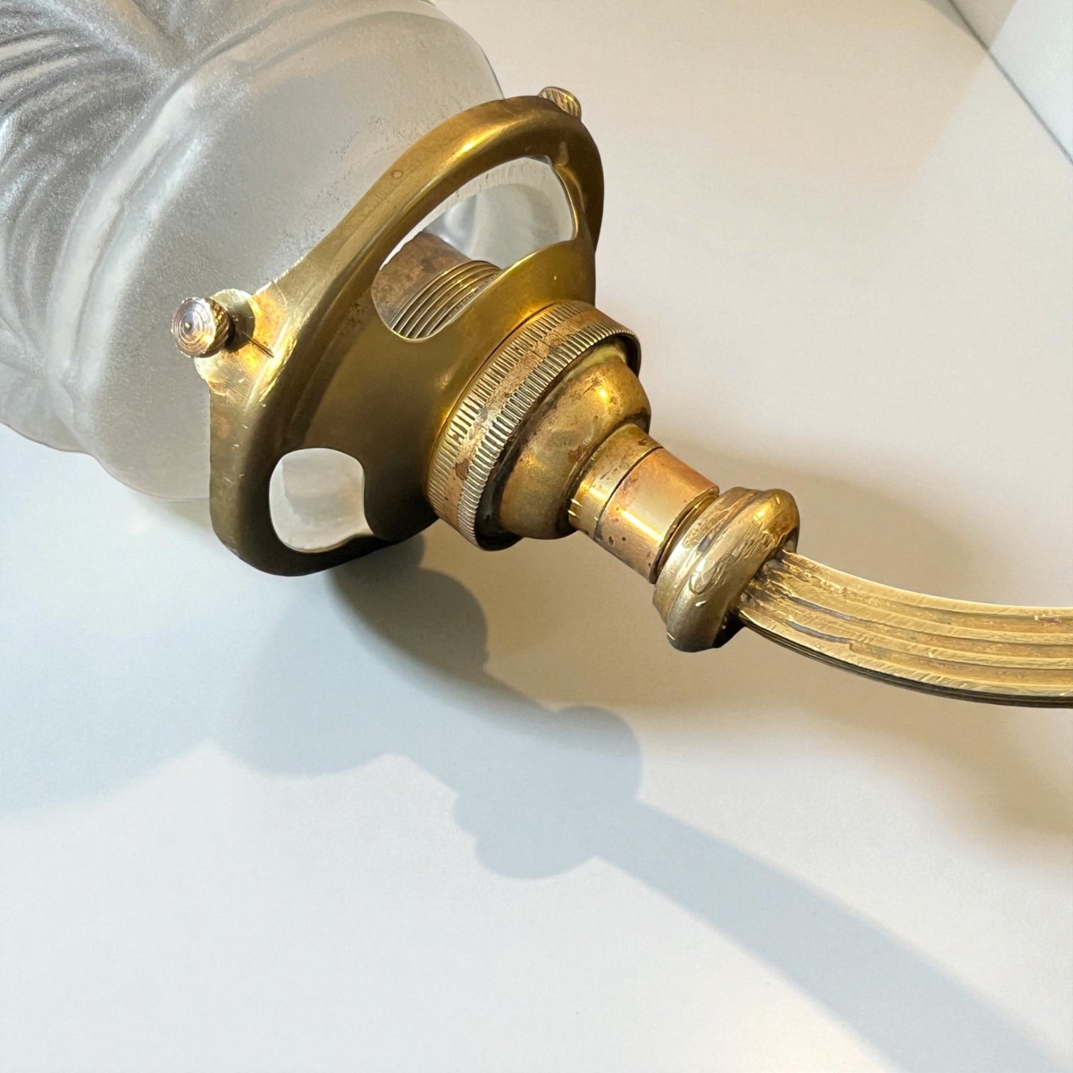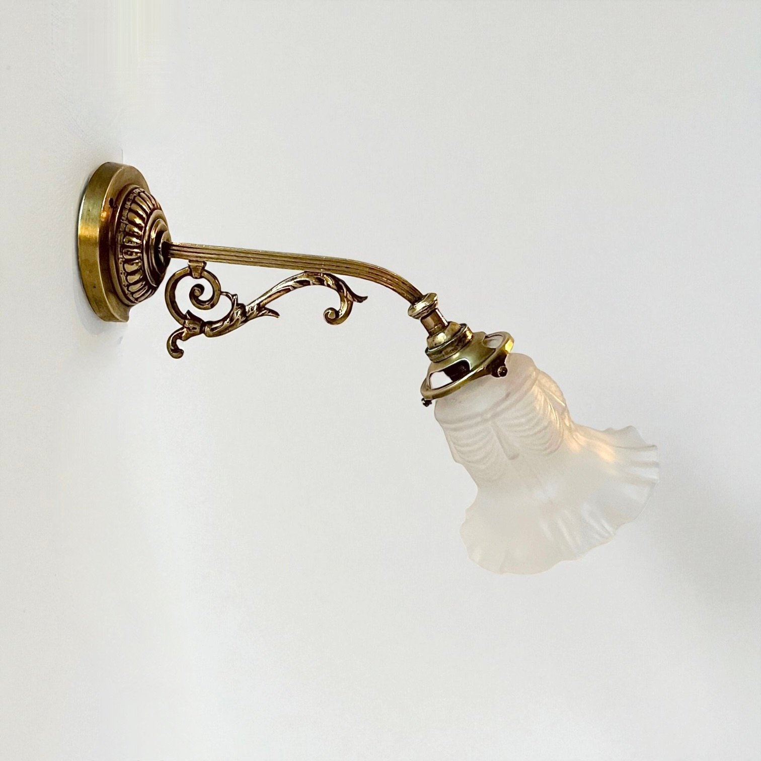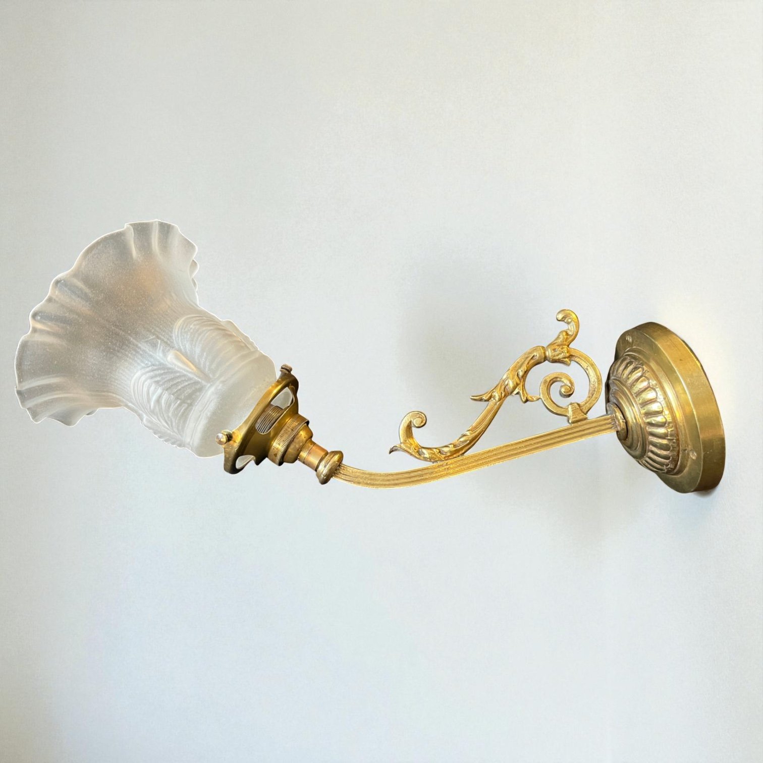 Applique ancienne de style Louis XVI en bronze et globe tulipe en verre translucide drapé