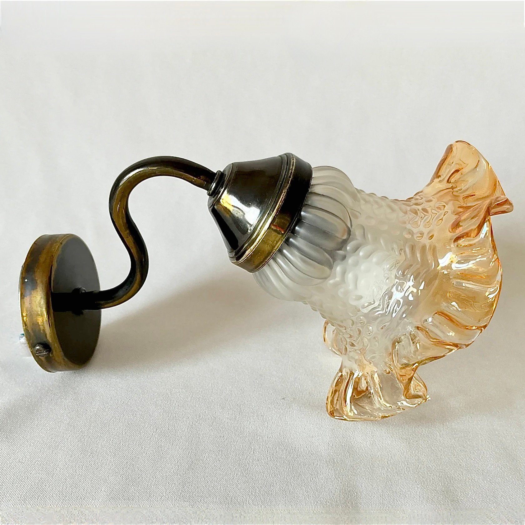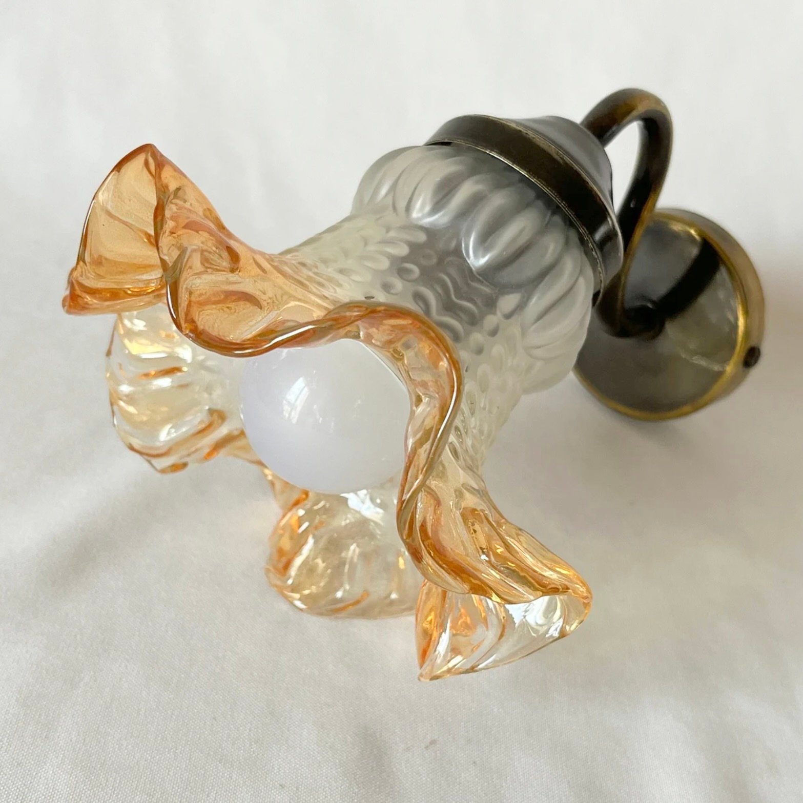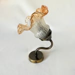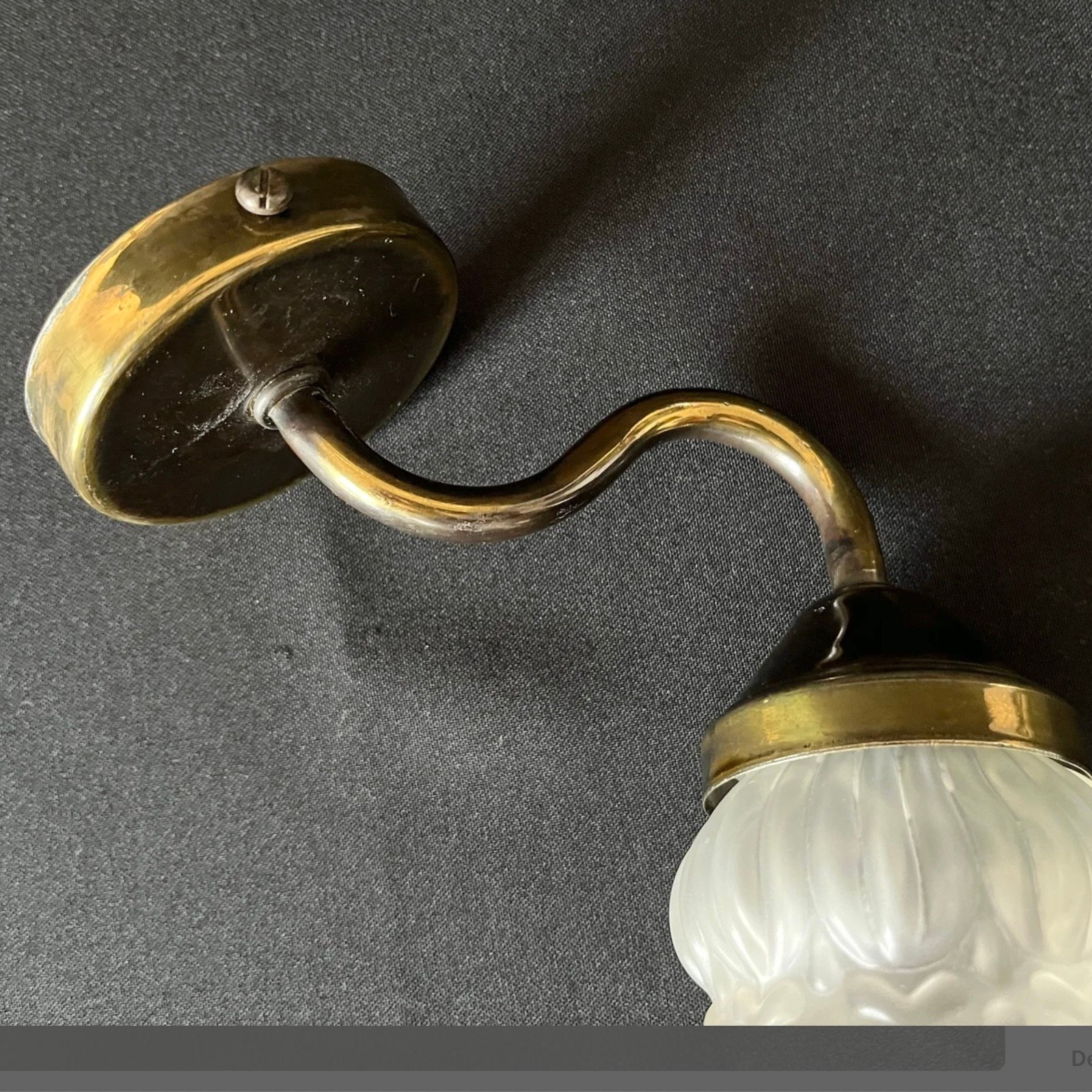 Applique murale vintage col de cygne DISDEROT DELMAS en laiton et tulipe opaline fleur