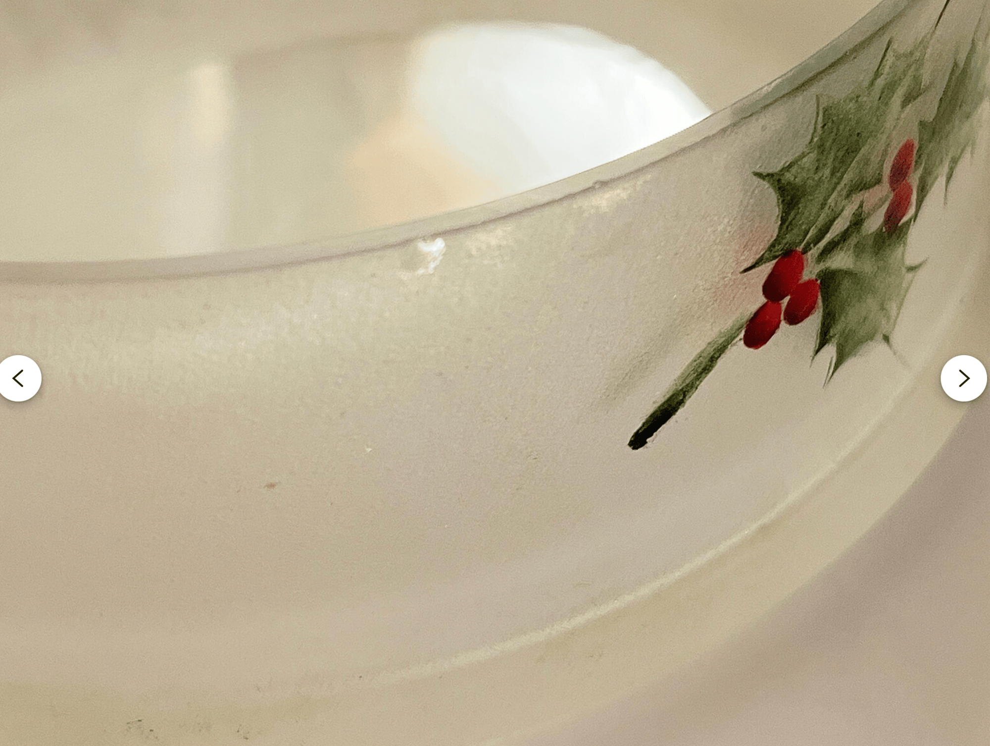 Ancienne boîte en verre givré avec un motif de branches de houx peint à la main datant des années 1900 - 1920, signée Jost - Delhain.