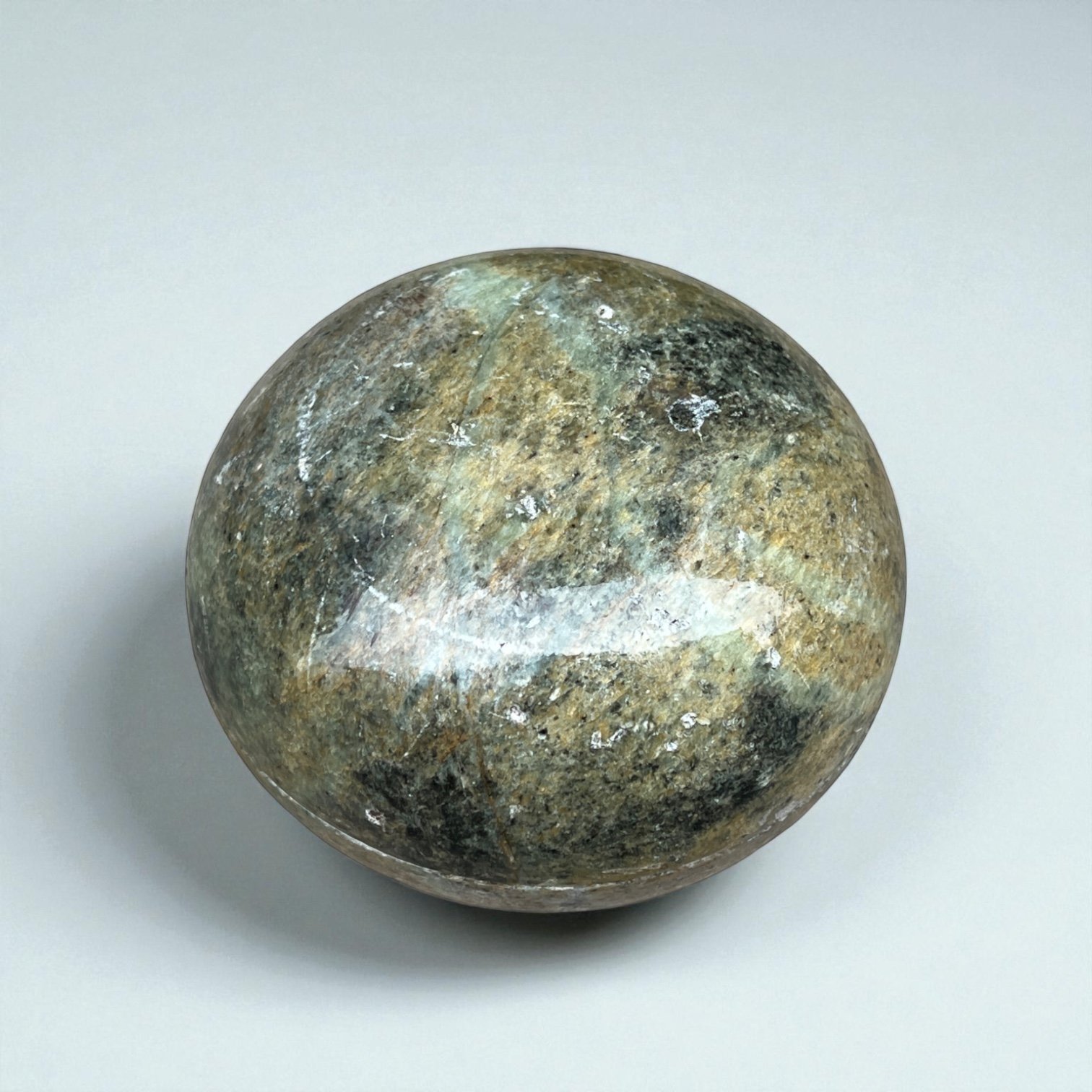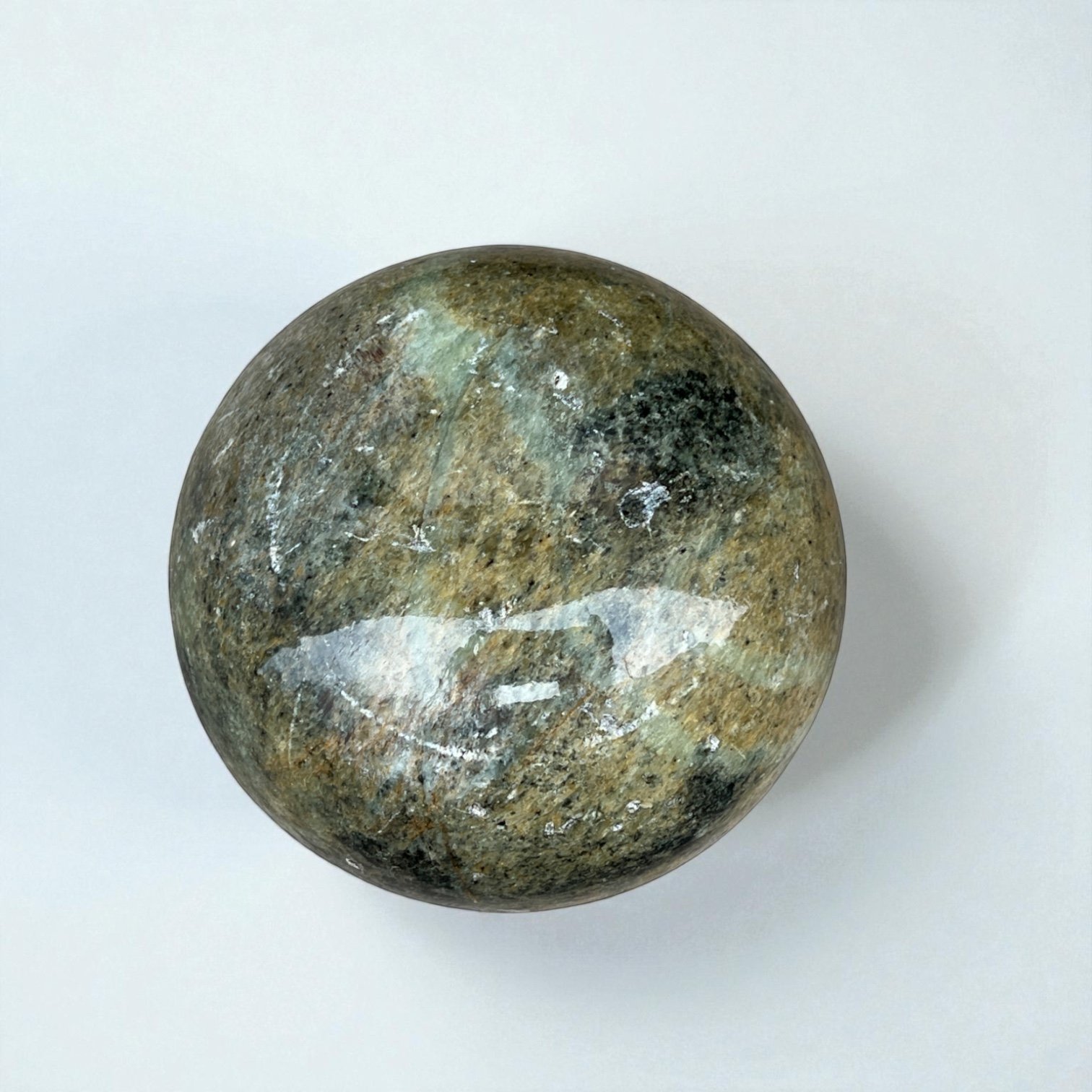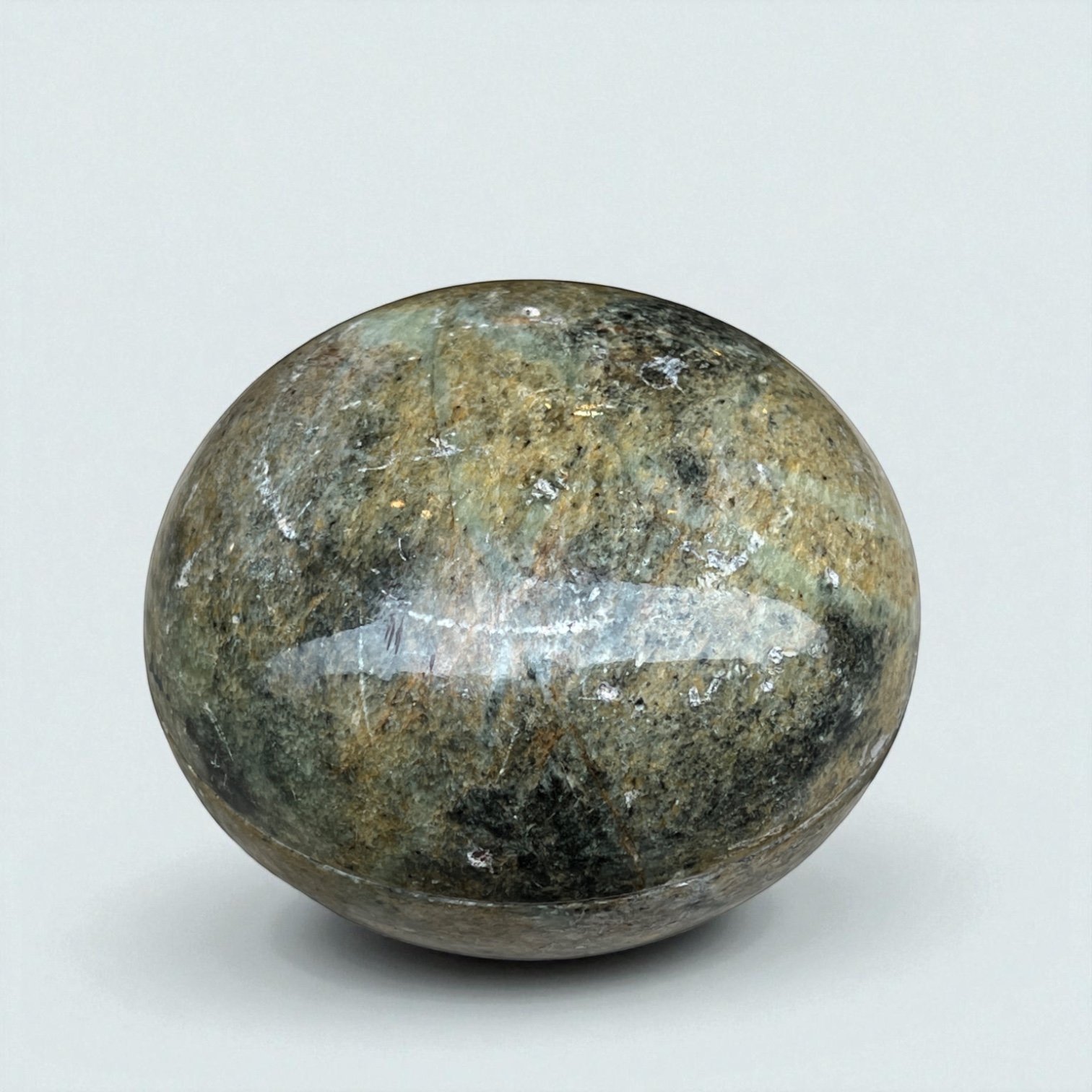Ses reflets le vert, le gris et jaune rappellent la serpentine, pierre appréciée pour son éclat doux et ses nuances apaisantes.