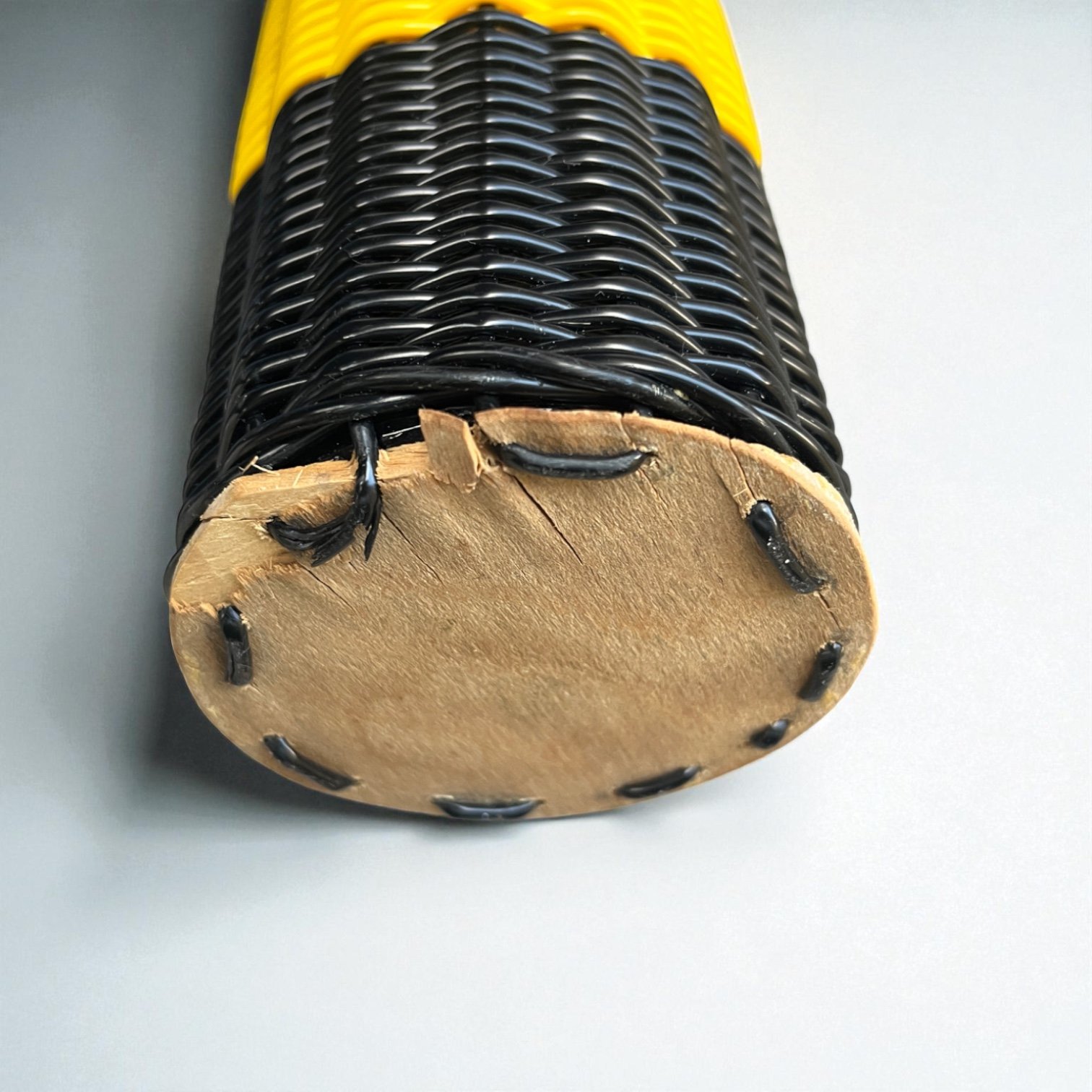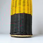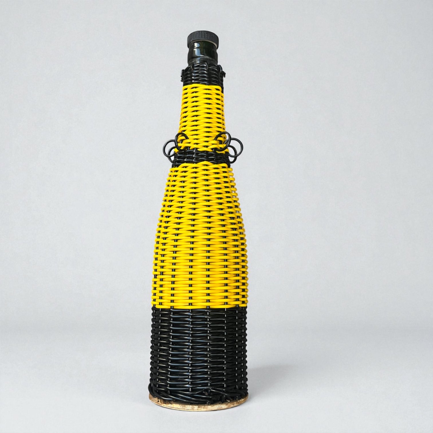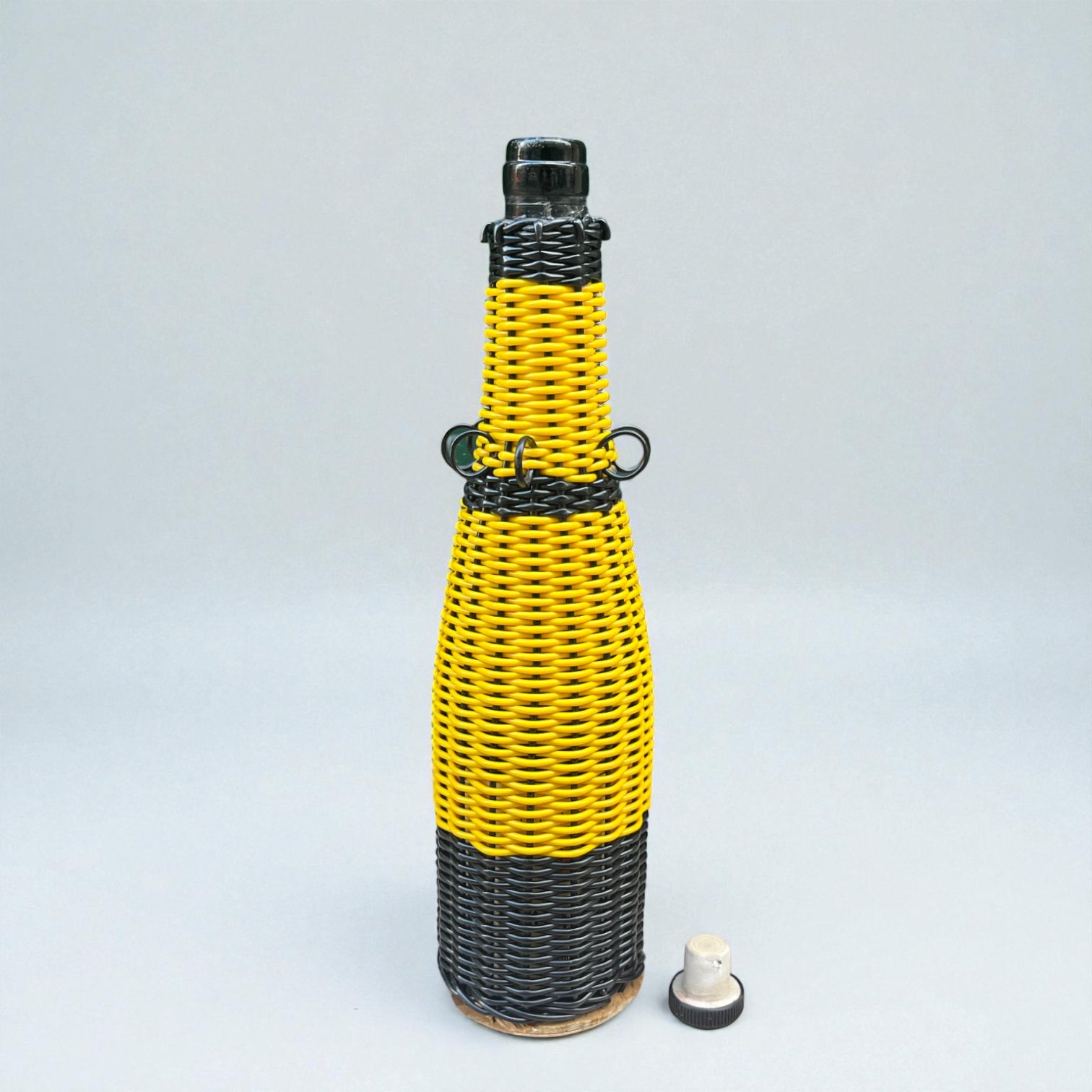 Bouteille longue en scoubidou jaune et noir vintage – carafe rétro 60s déco pop