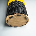 Apportez une touche rétro à votre intérieur avec cette bouteille vintage recouverte de scoubidou jaune et noir.