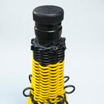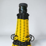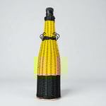Cette bouteille en verre est entièrement habillée d’un tressage en plastique