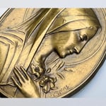Cadre ancien en verre miroir avec médaillon bronze Vierge Marie signé Ruffony 1930