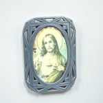 Charmant petit cadre religieux en étain, orné d’une image lithographiée du Sacré-Cœur de Jésus (sans verre).