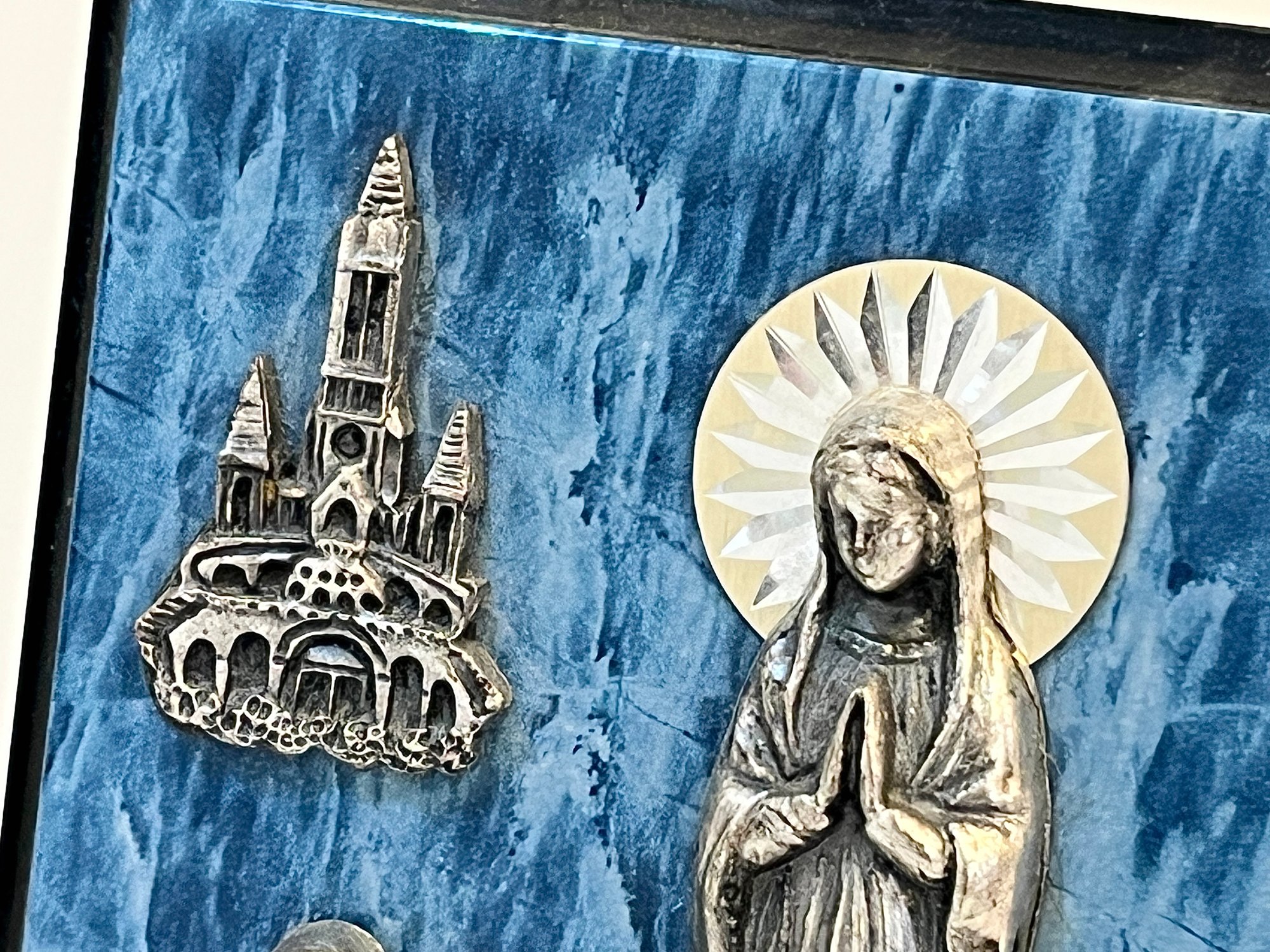 Cadre vintage souvenir de Lourdes - Bernadette Soubirous - Sainte Vierge Marie - 1960