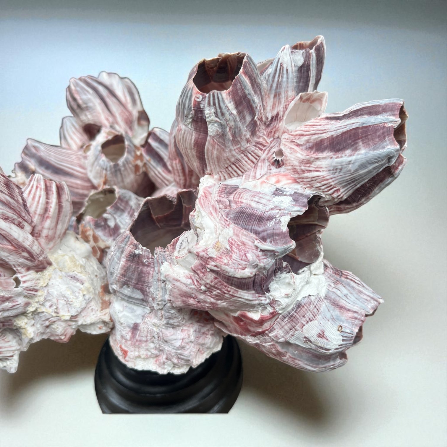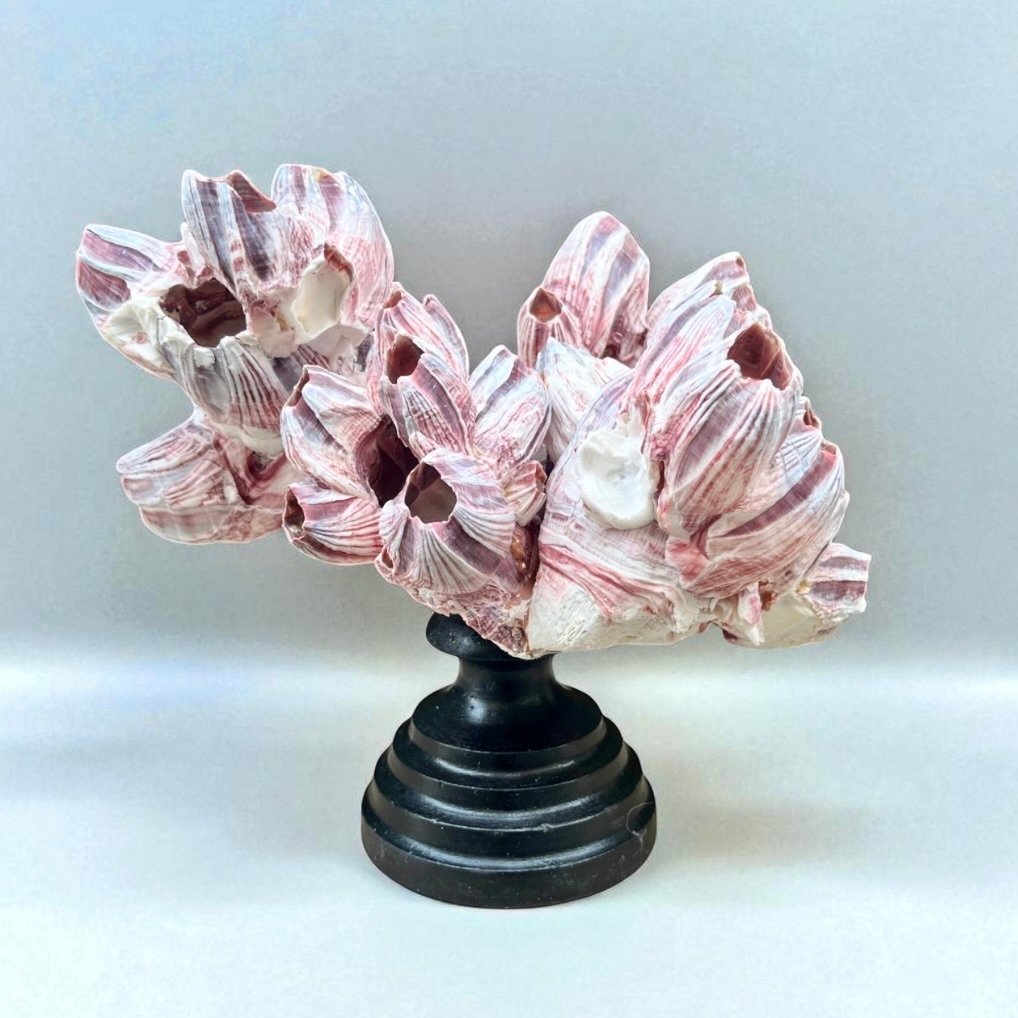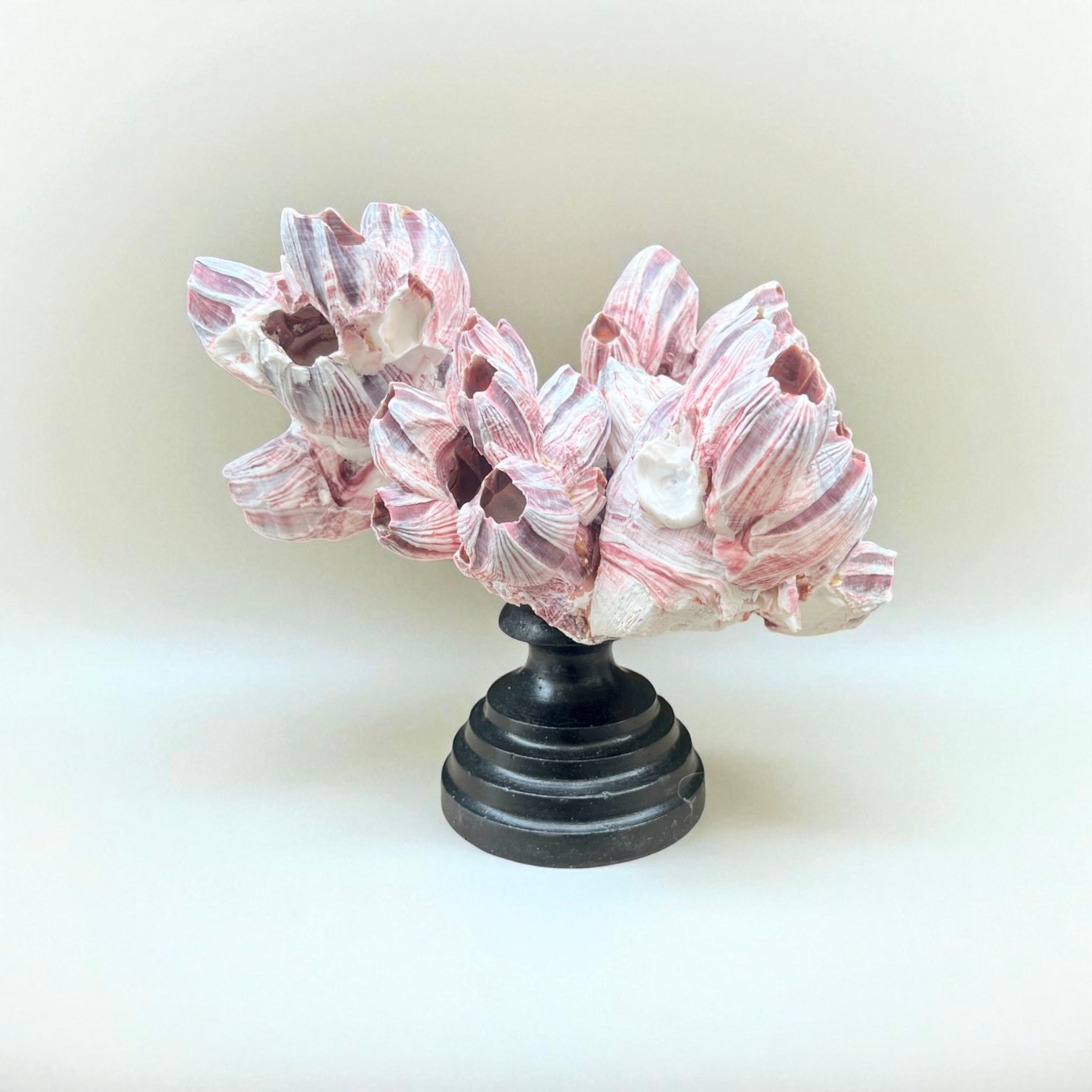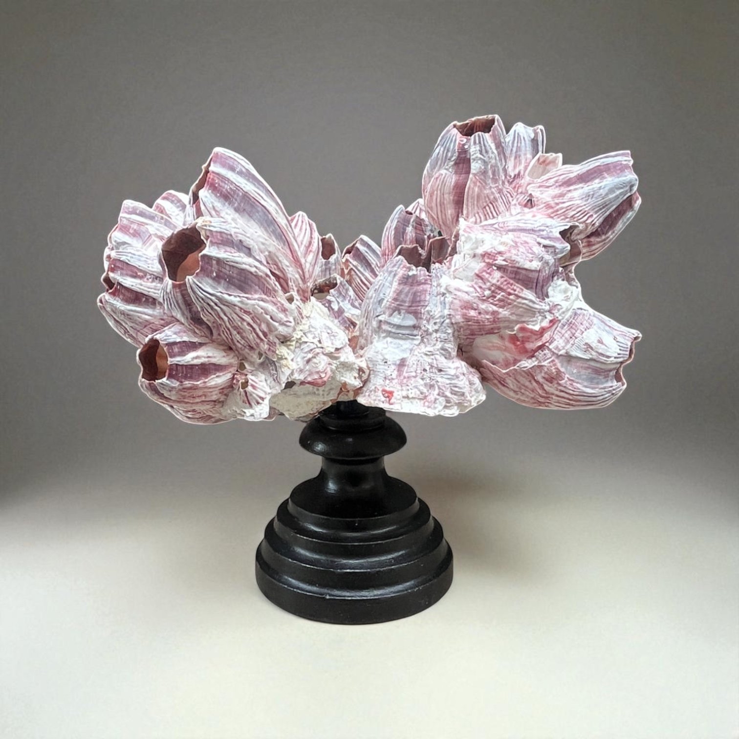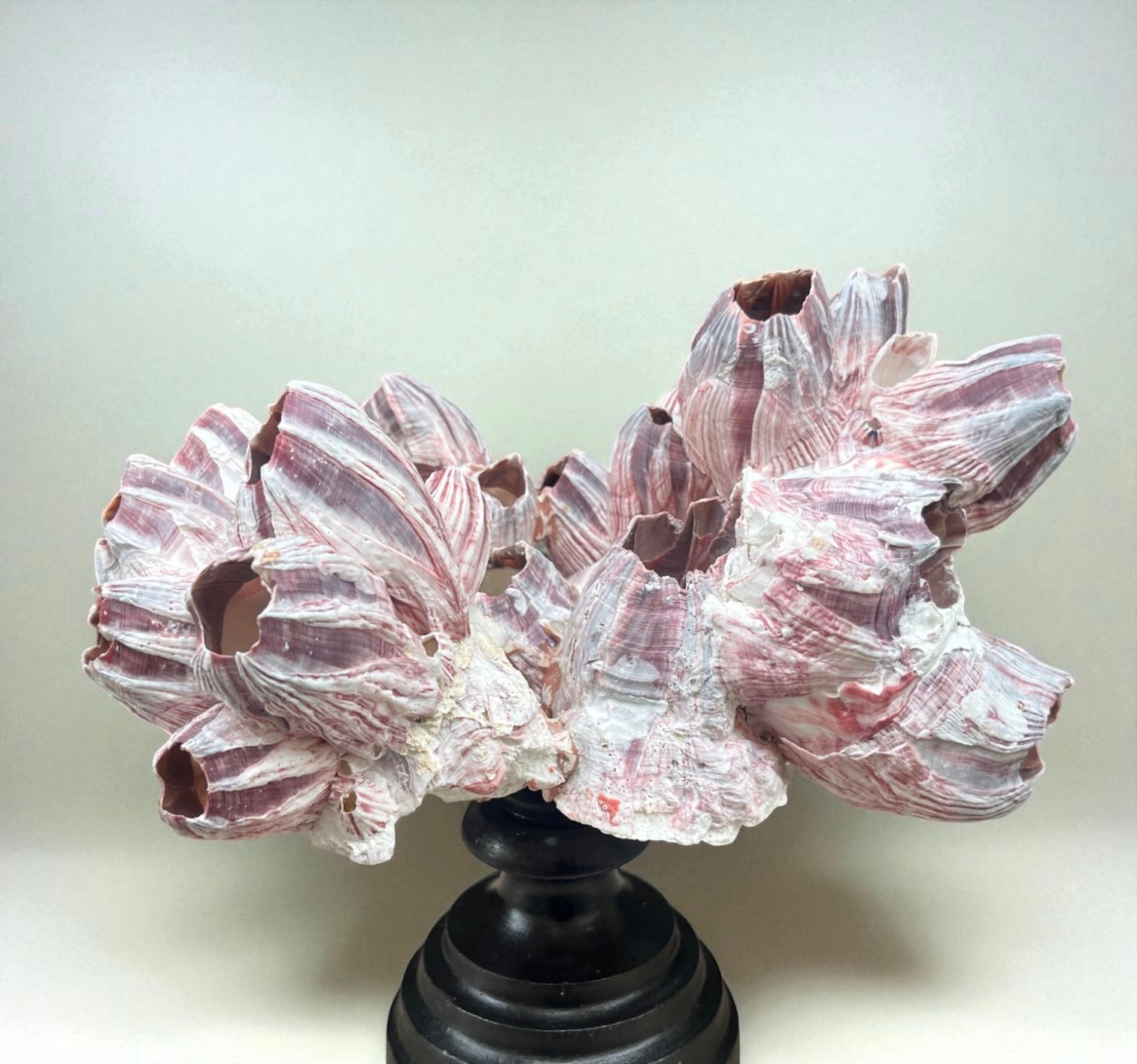 Pièce unique - Ancien bloc de balanes roses monté sur un socle en bois tourné d'époque Napoléon III, fin XIXe.