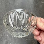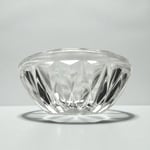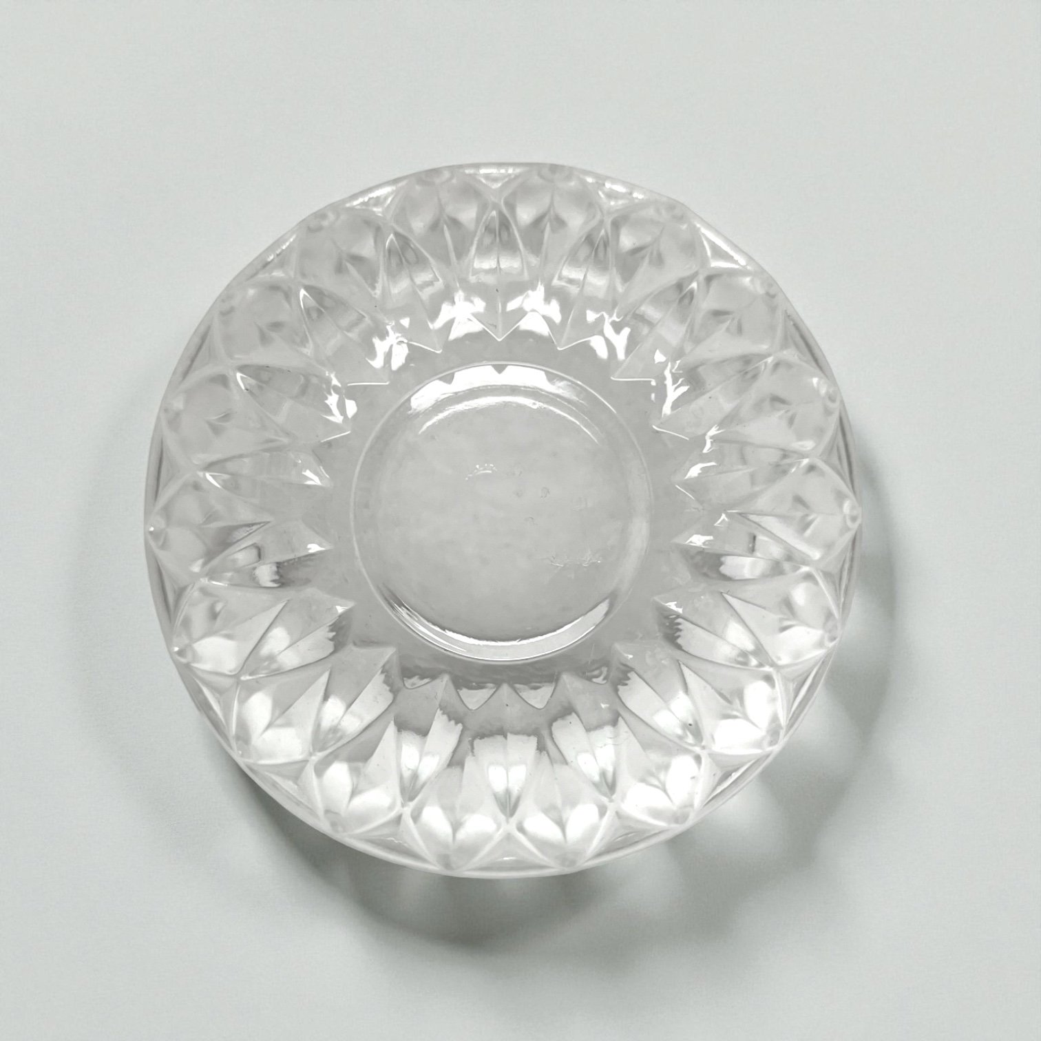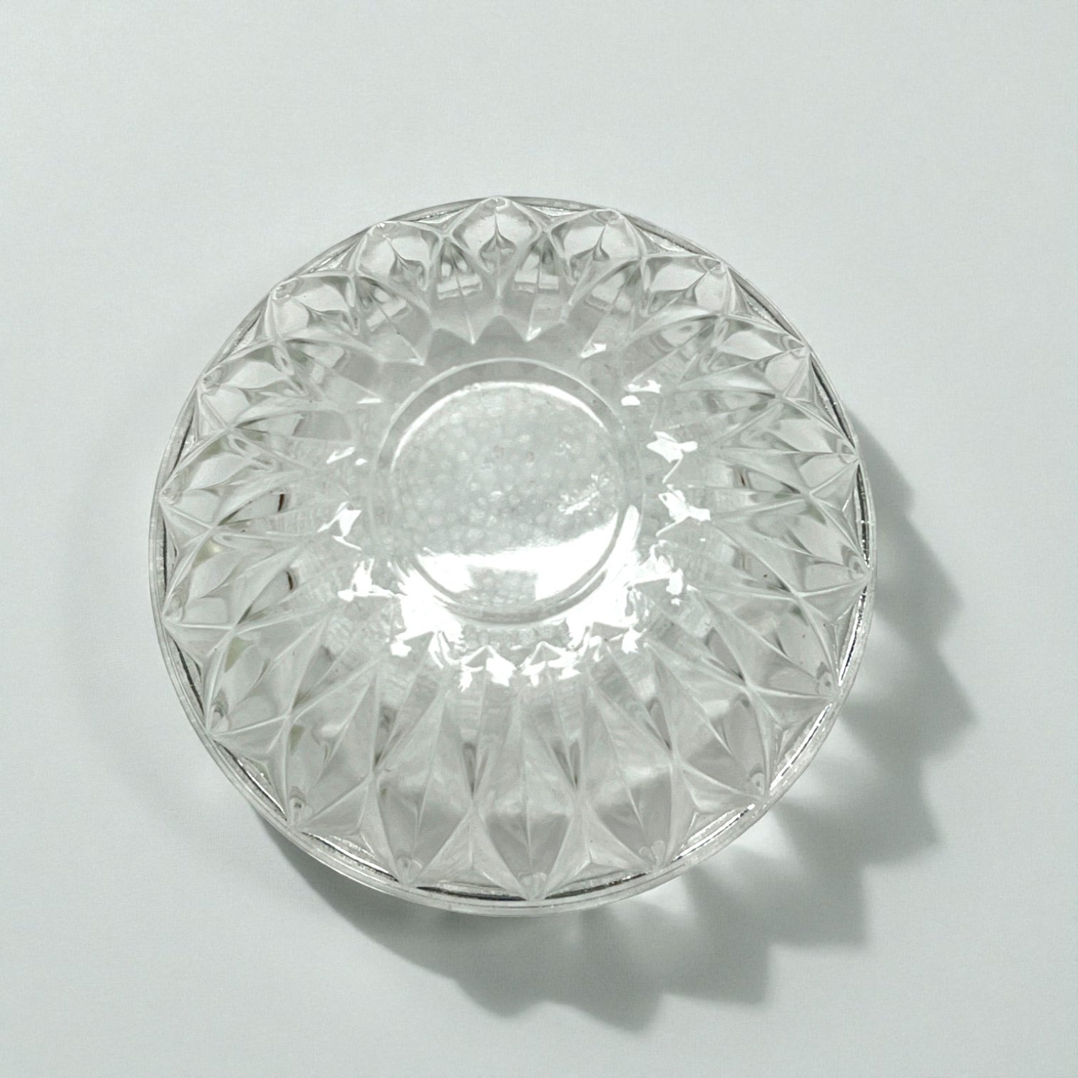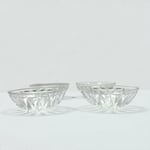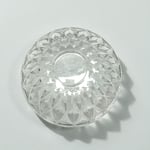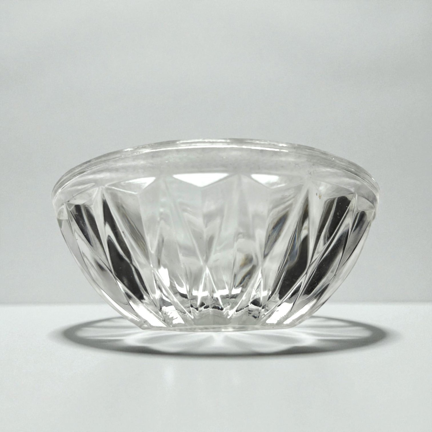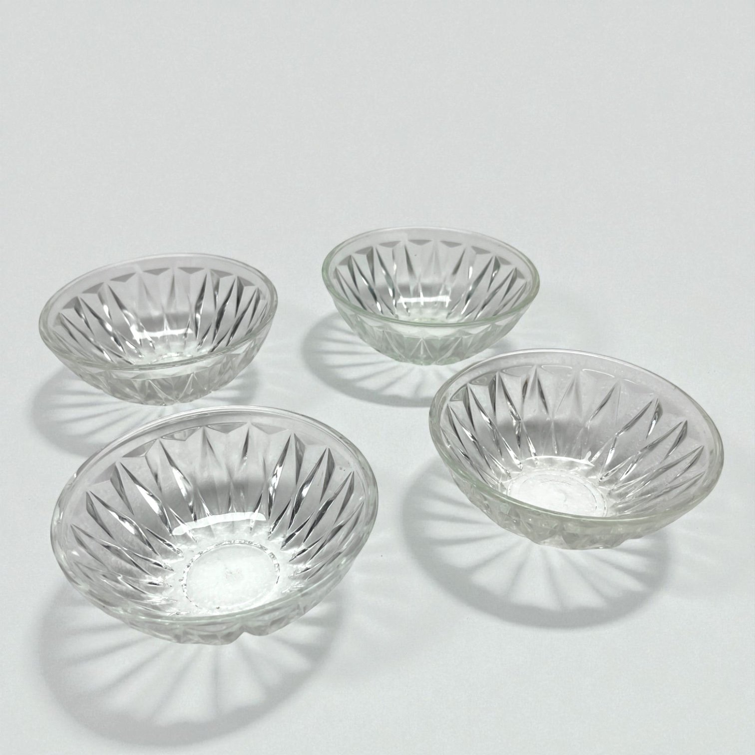 Ramequins en verre transparent à motif de losanges facettés, typiques du design vintage des années 1960-1970.