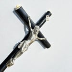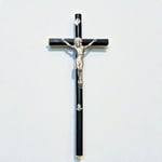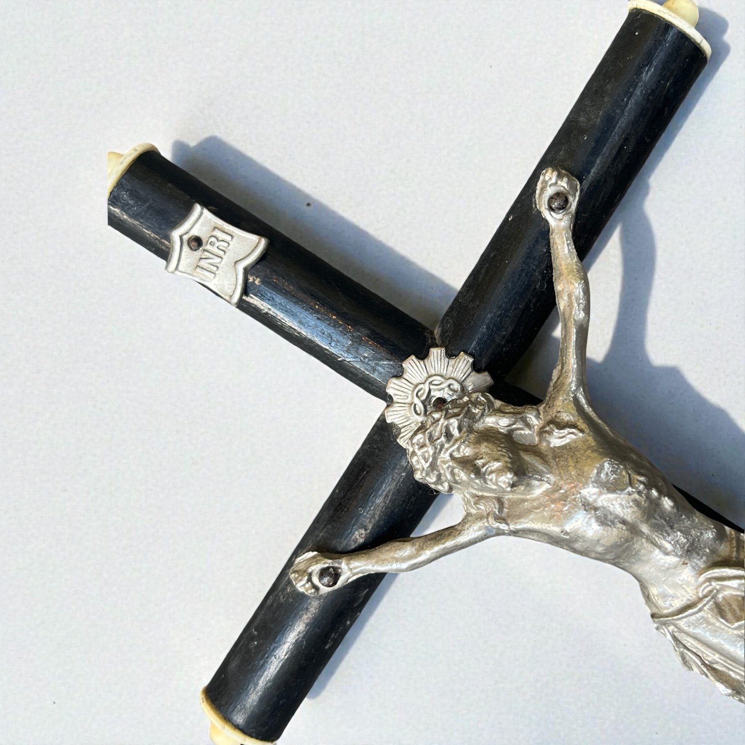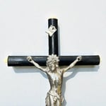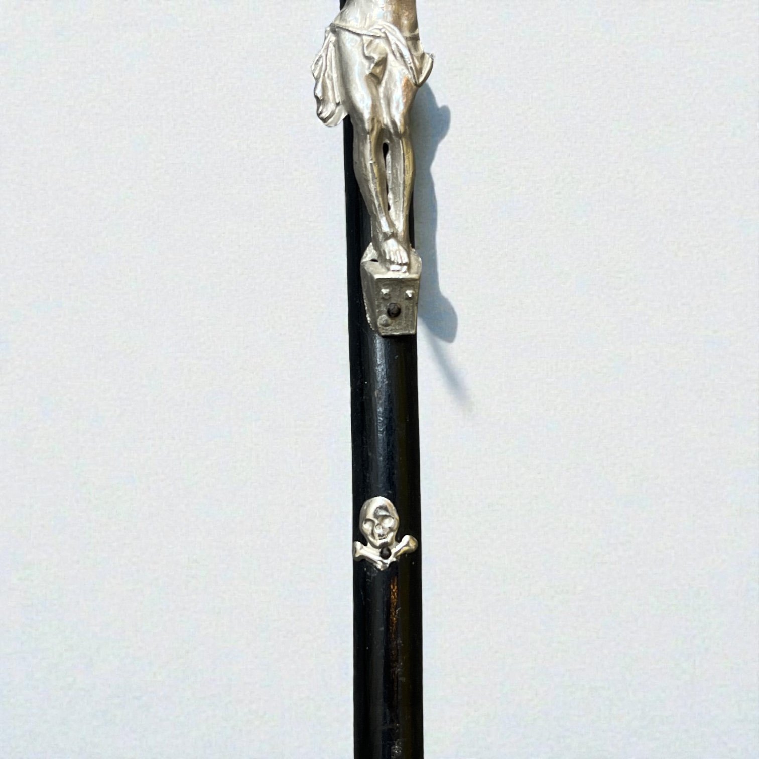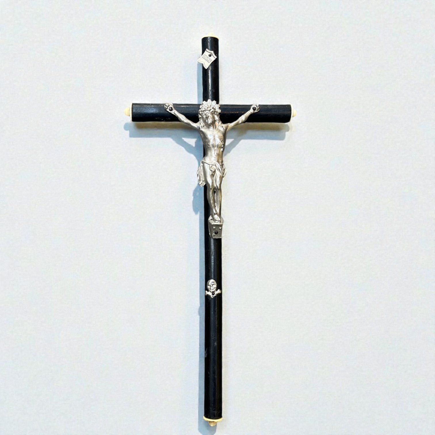 Crucifix ancien Napoléon III bois noirci et métal argenté Christ avec crâne Memento Mori