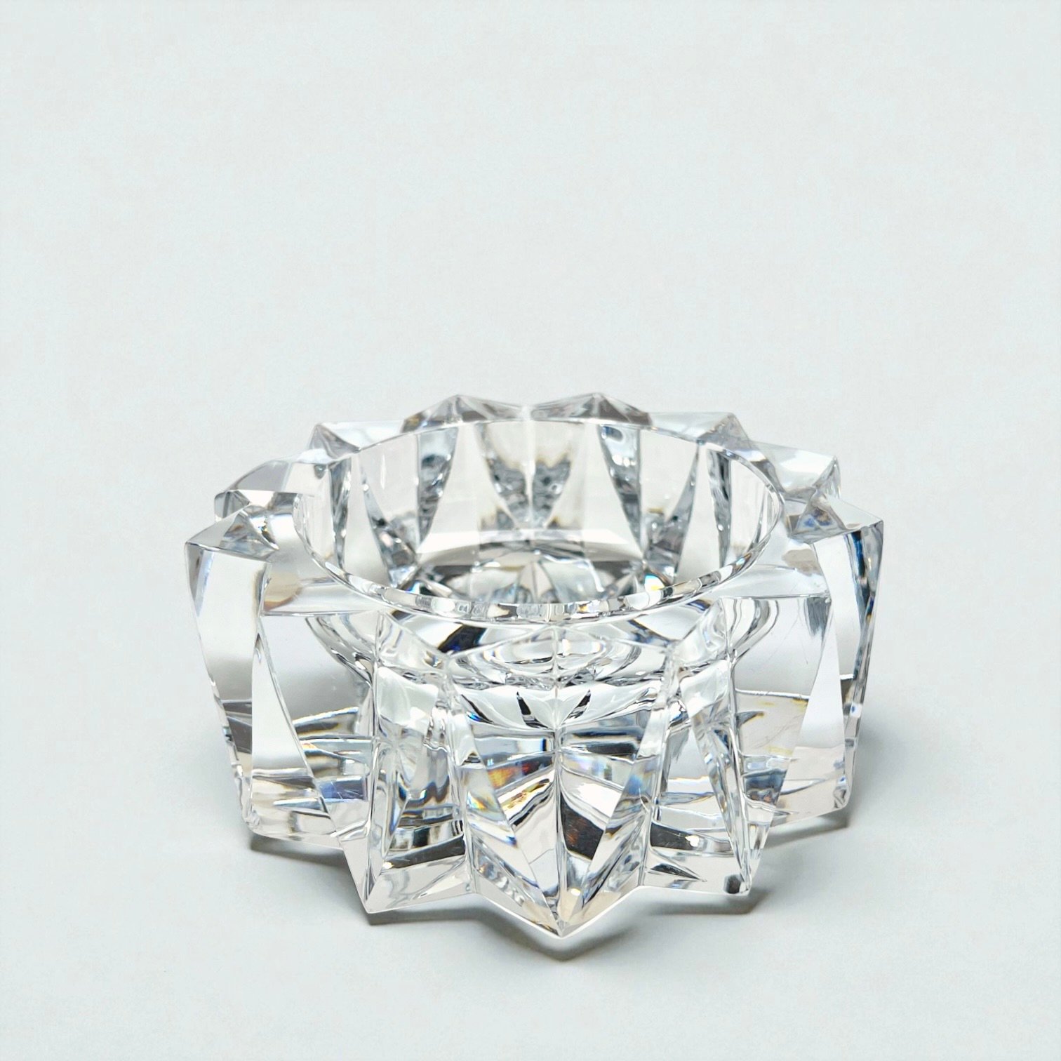 Magnifique cendrier en cristal de Sèvres signé, design vintage des années 1970.