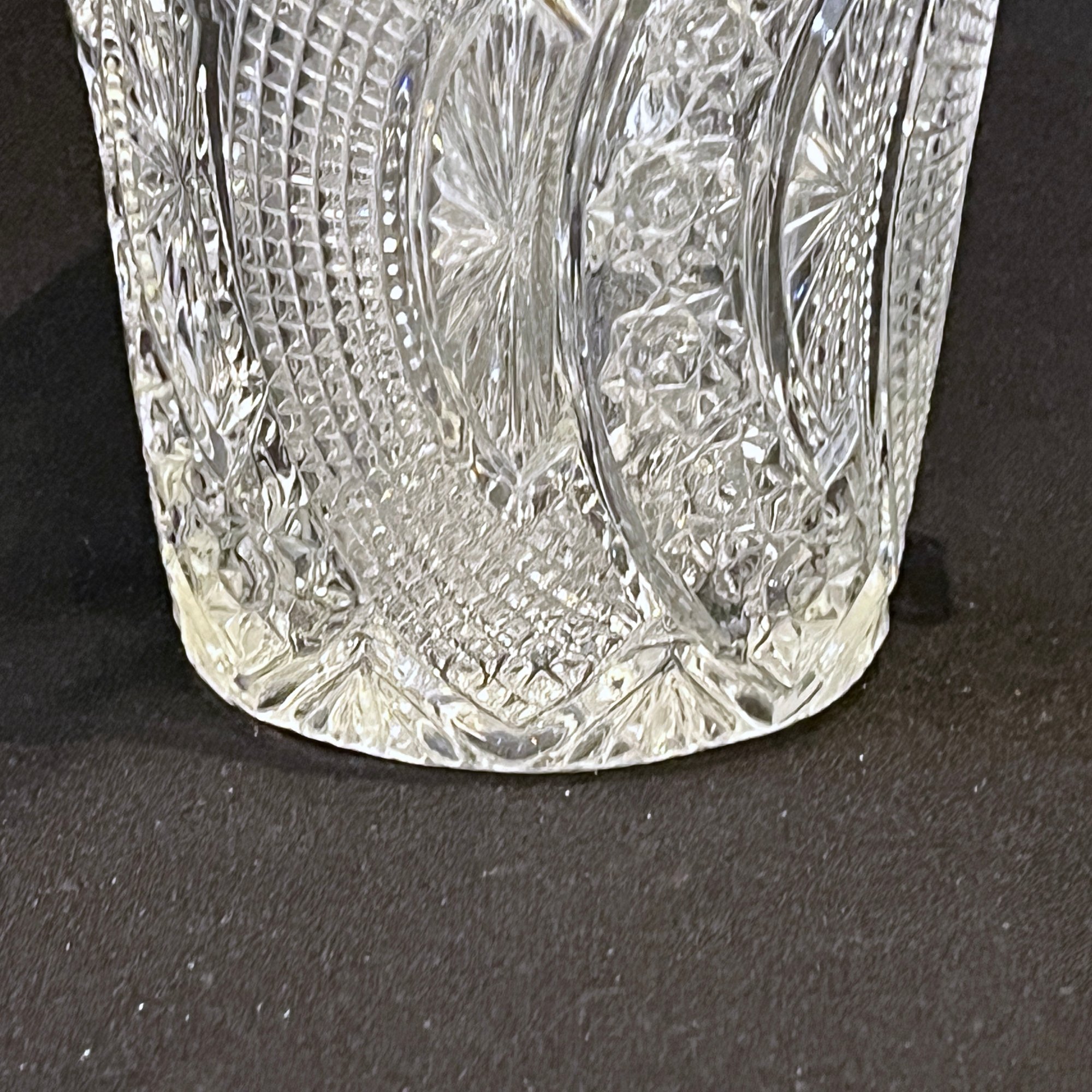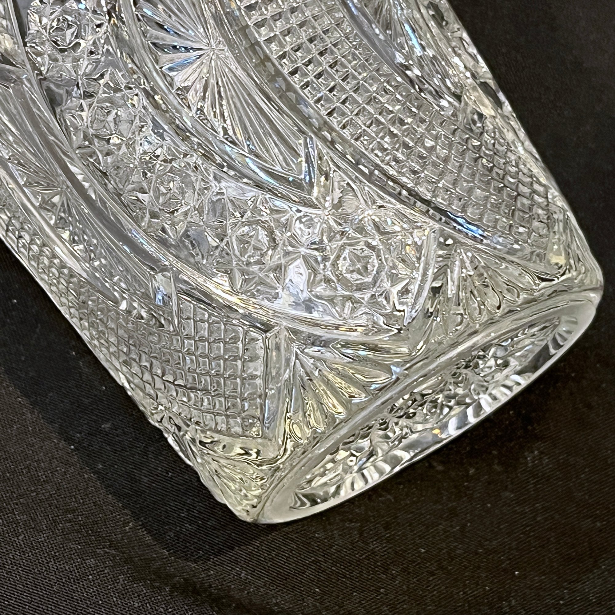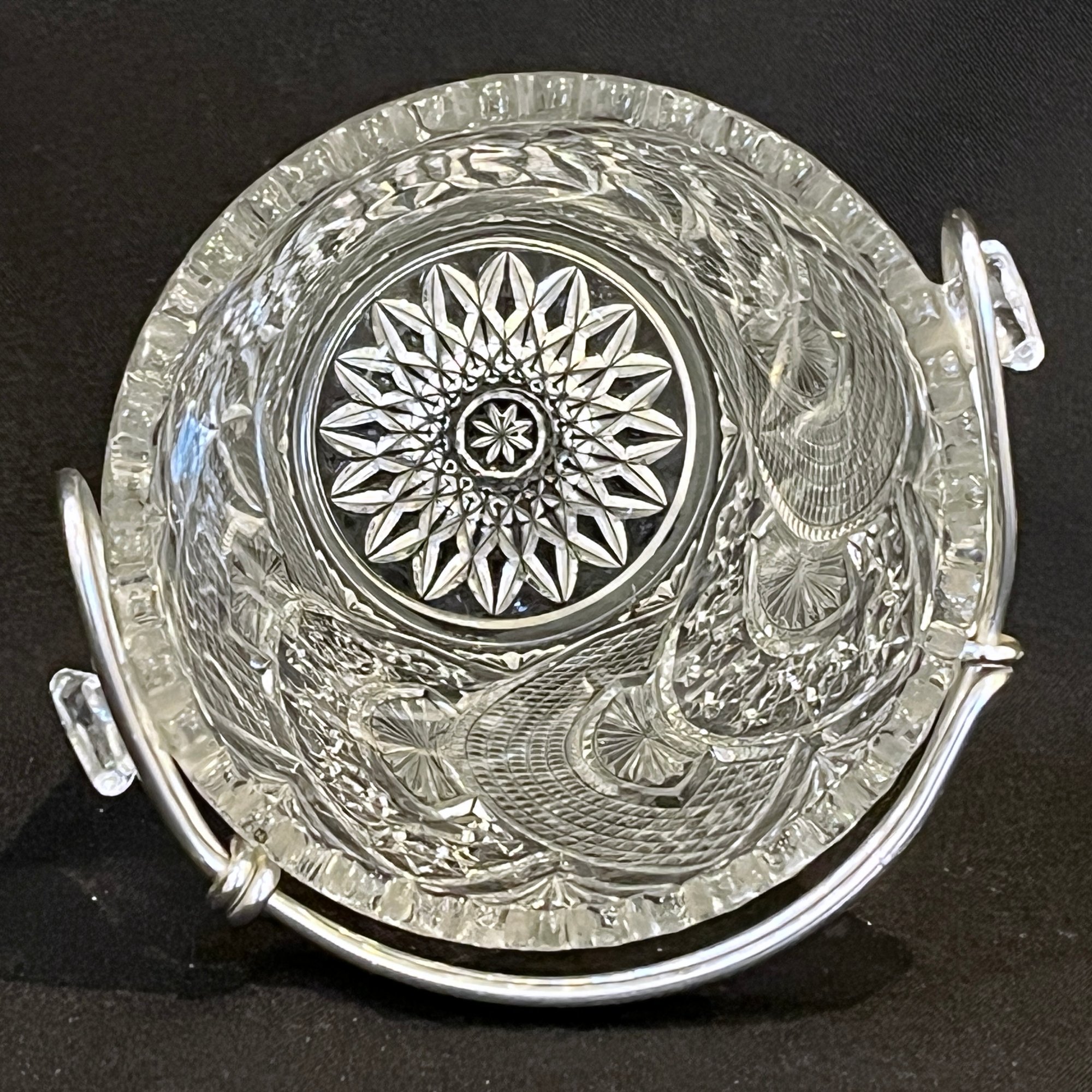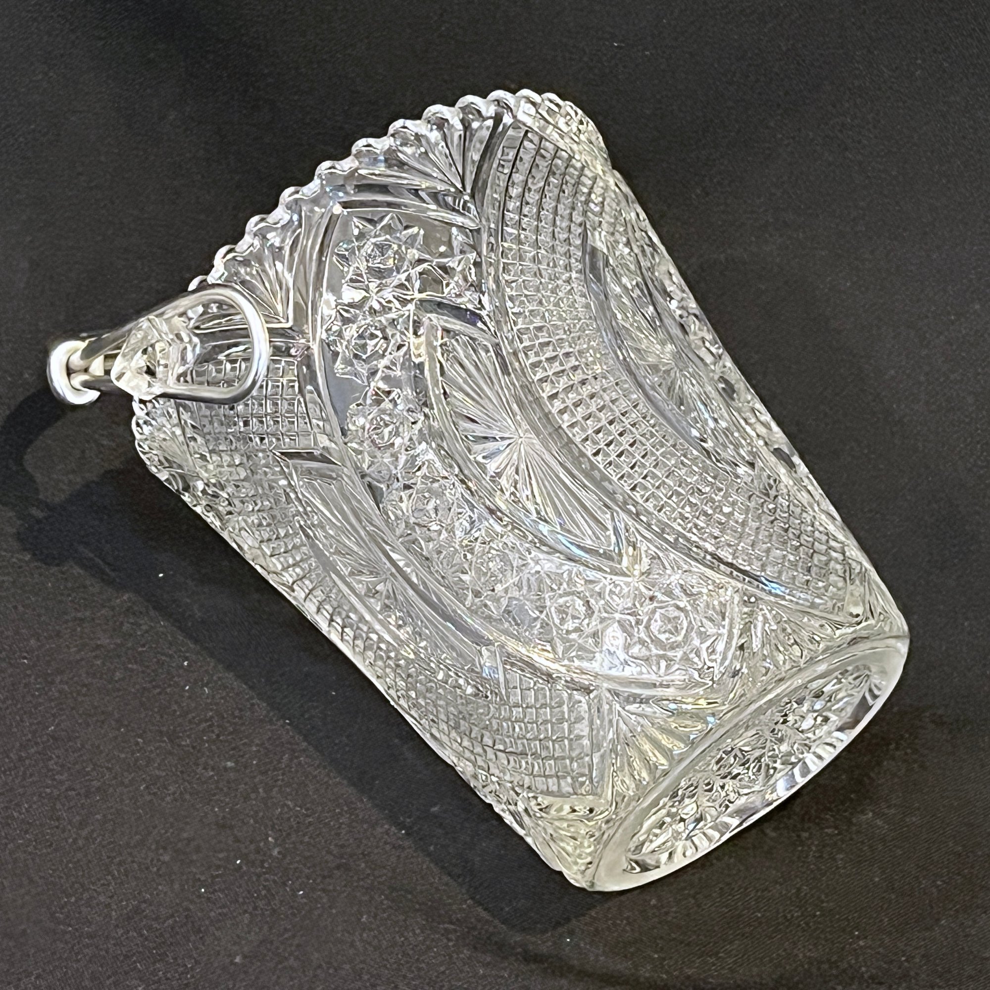 Joli seau à glaçons vintage en cristal taillé vintage 1950 1960, agrémenté d’une anse en métal chromé. Le cristal présente un décor géométrique élégant qui capte la lumière et crée un effet scintillant.