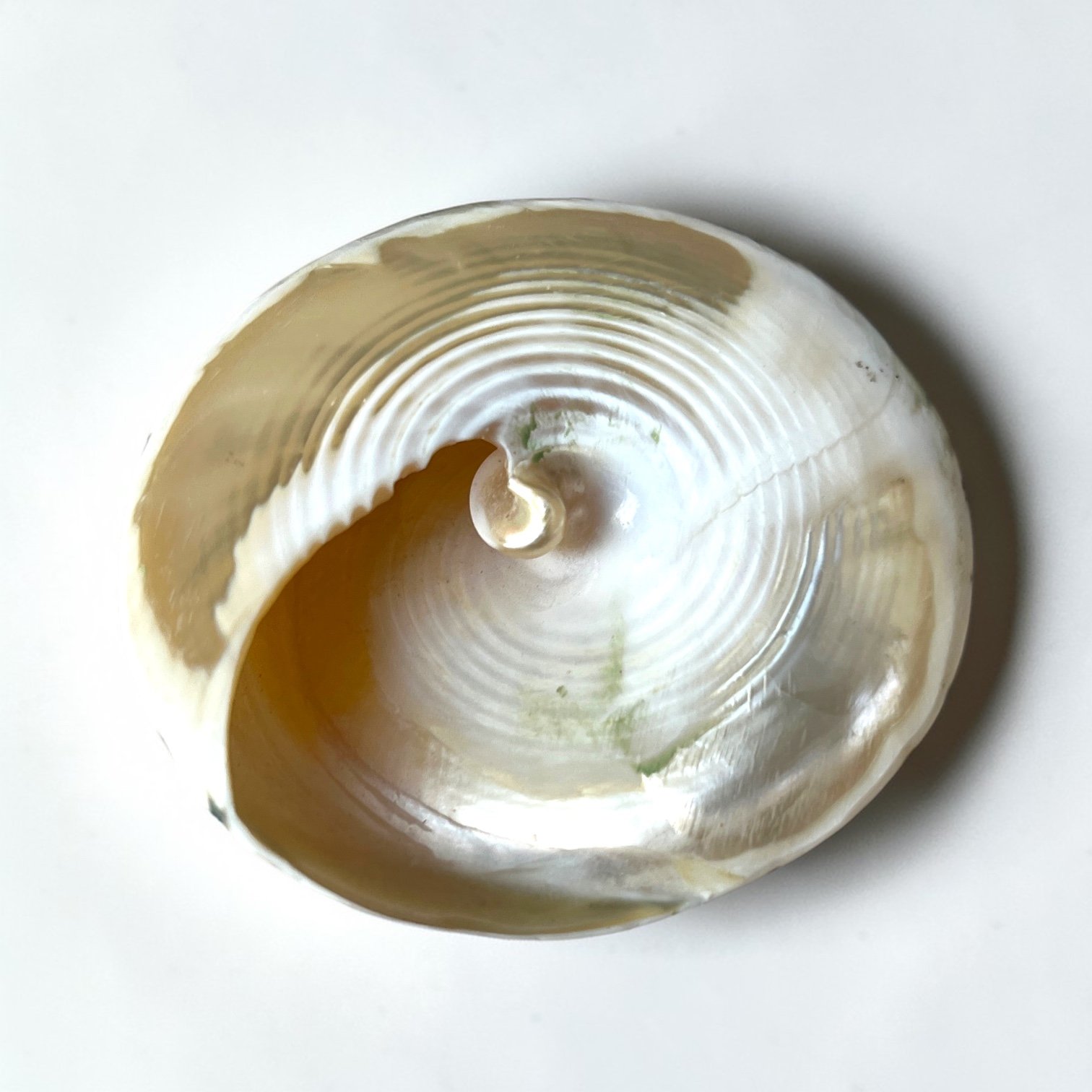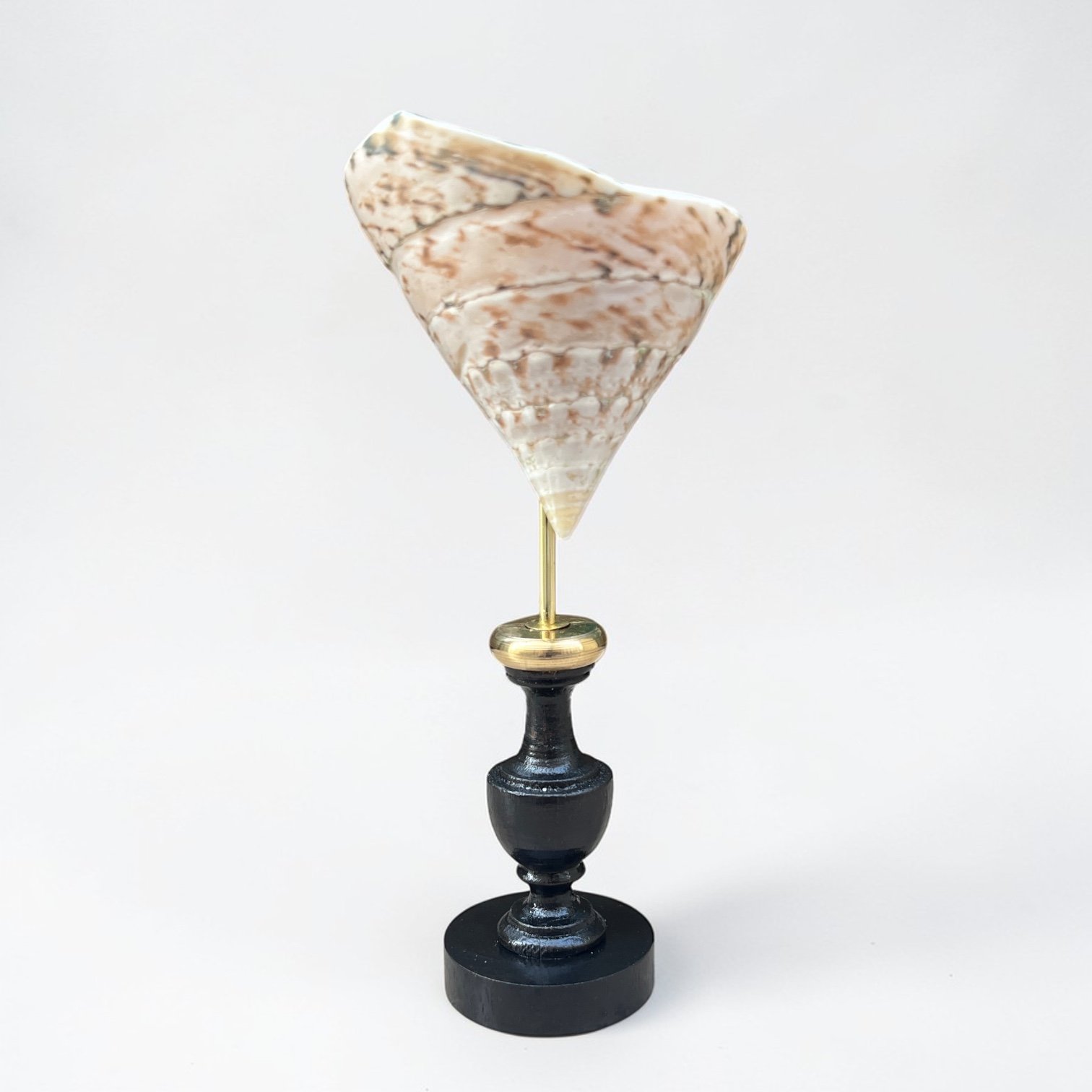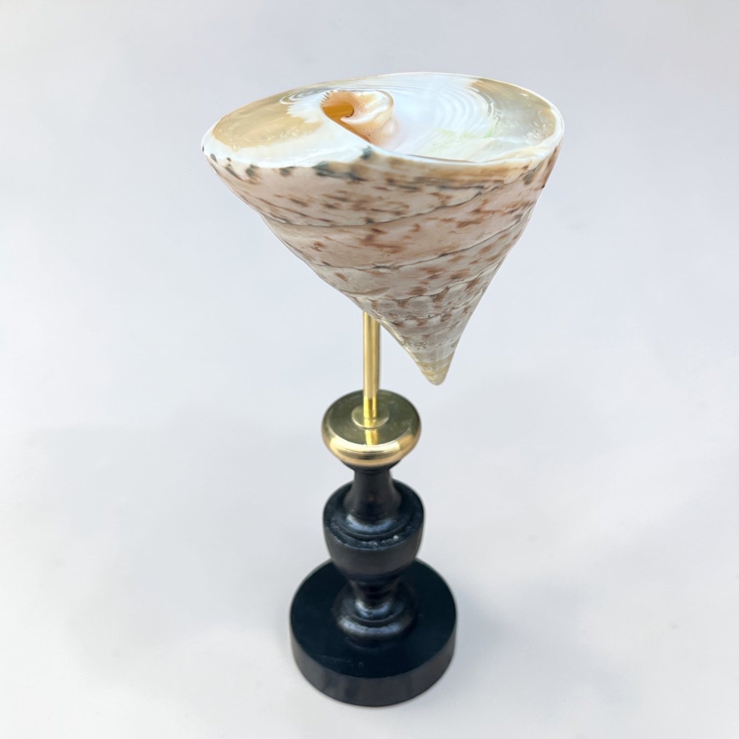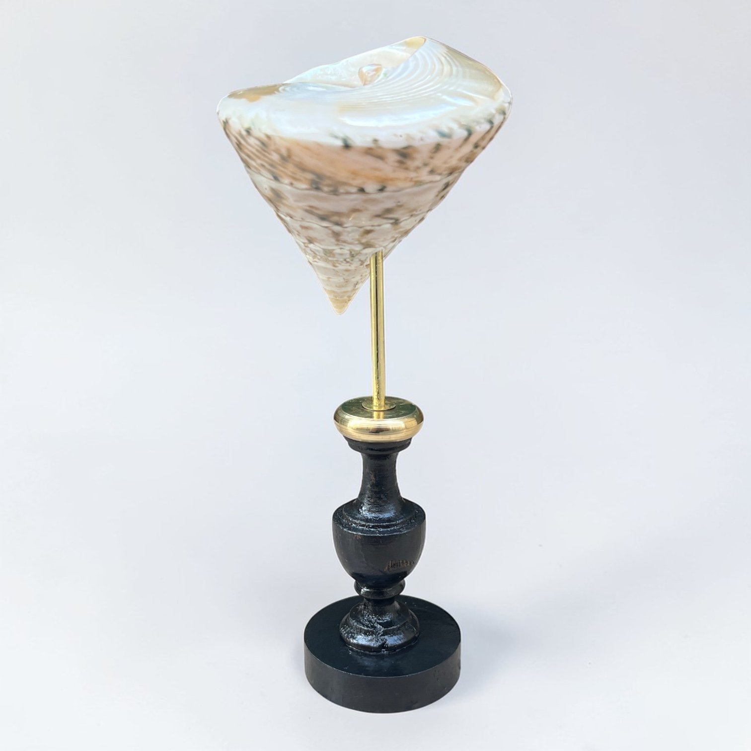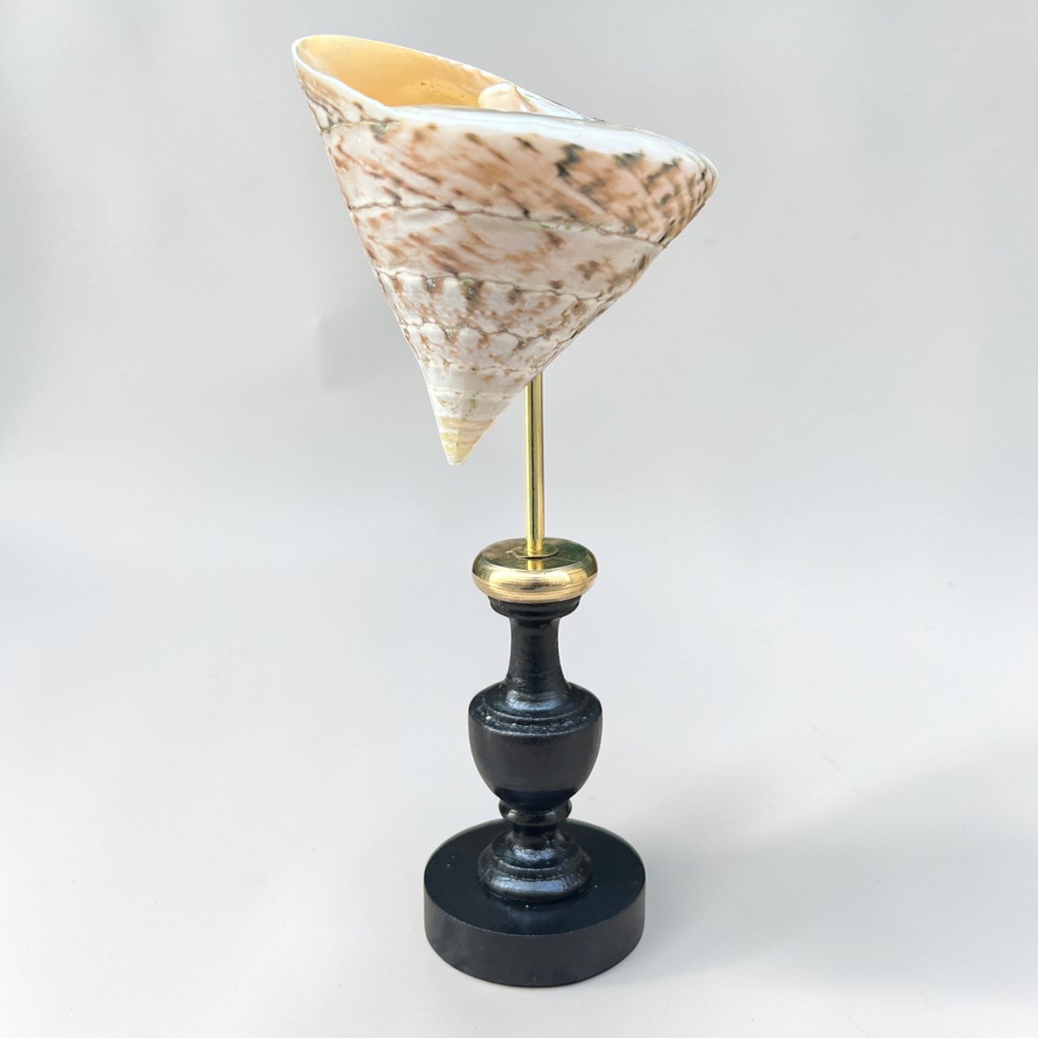 Ancien coquillage cône en nacre Troca (Trochus niloticus) monté sur socle en bois tourné et noirci de style Napoléon III.