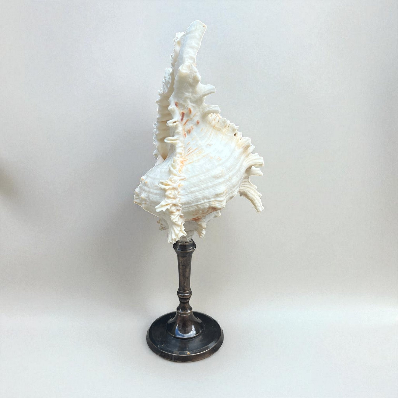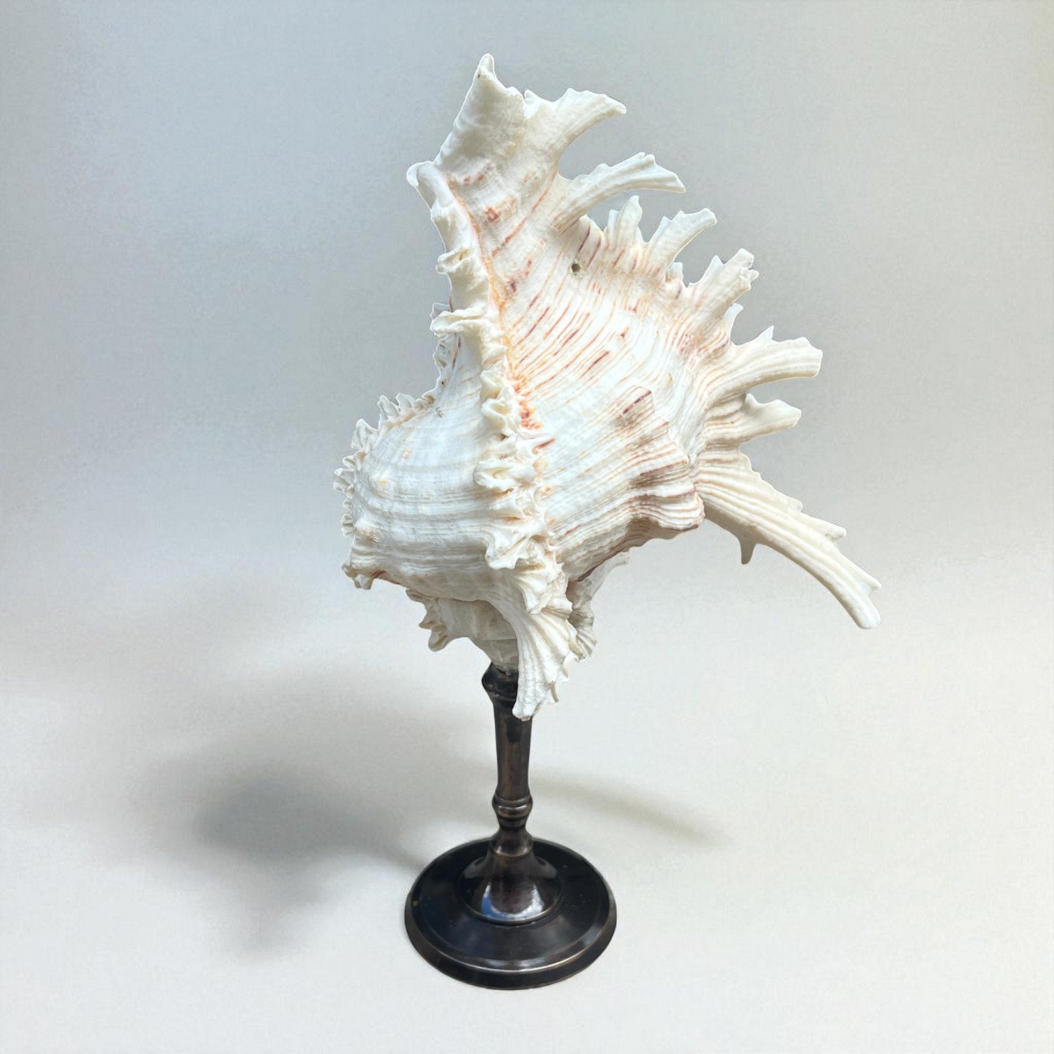 Magnifique ancien coquillage Murex Ramosus monté sur socle en laiton patiné ancien.
