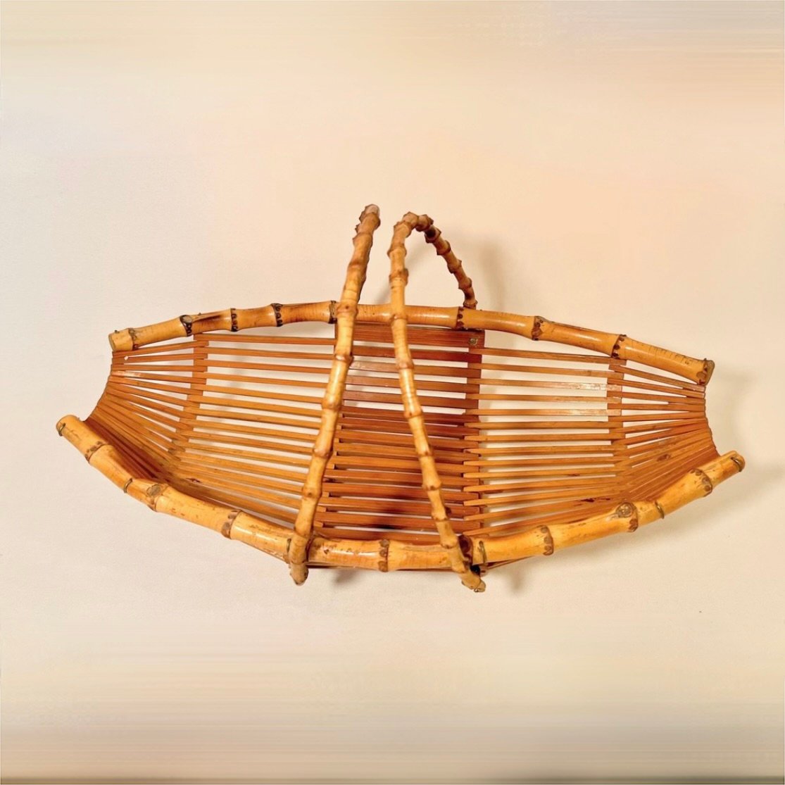 Très joli panier en bambou vintage avec anses datant des années 60, typique Sud de la France Saint-Tropez 1960.