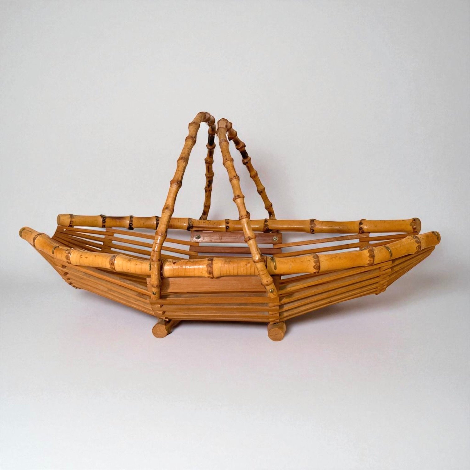 Corbeille à fruits vintage en bambou 1960 avec anses - panier