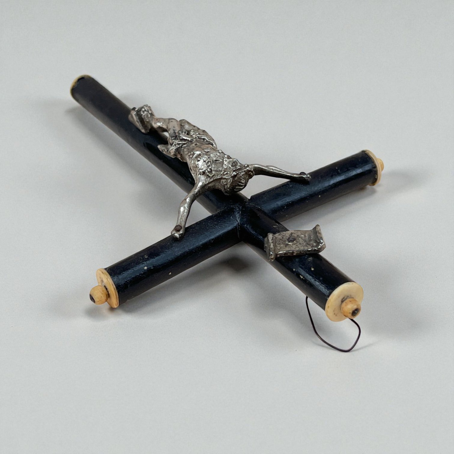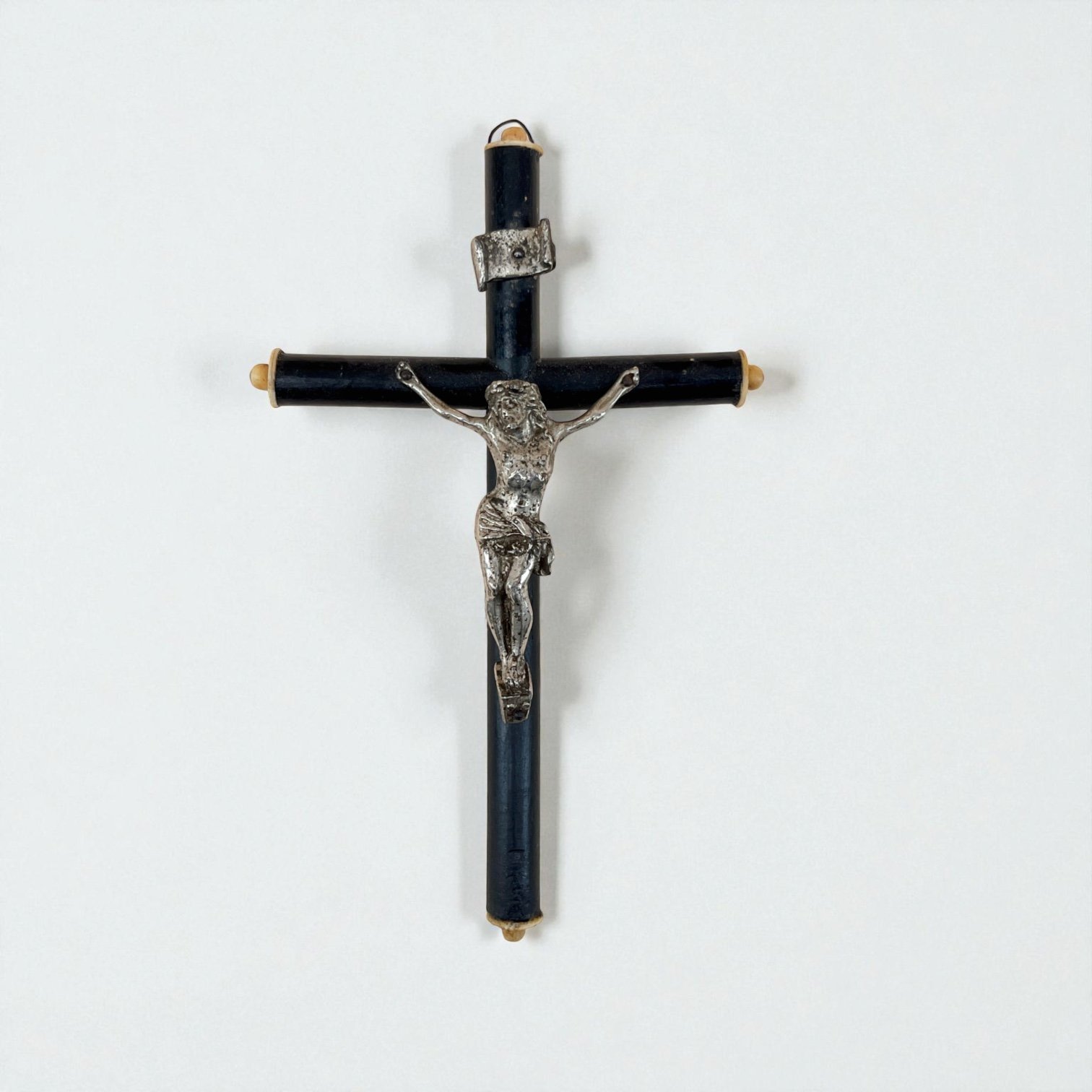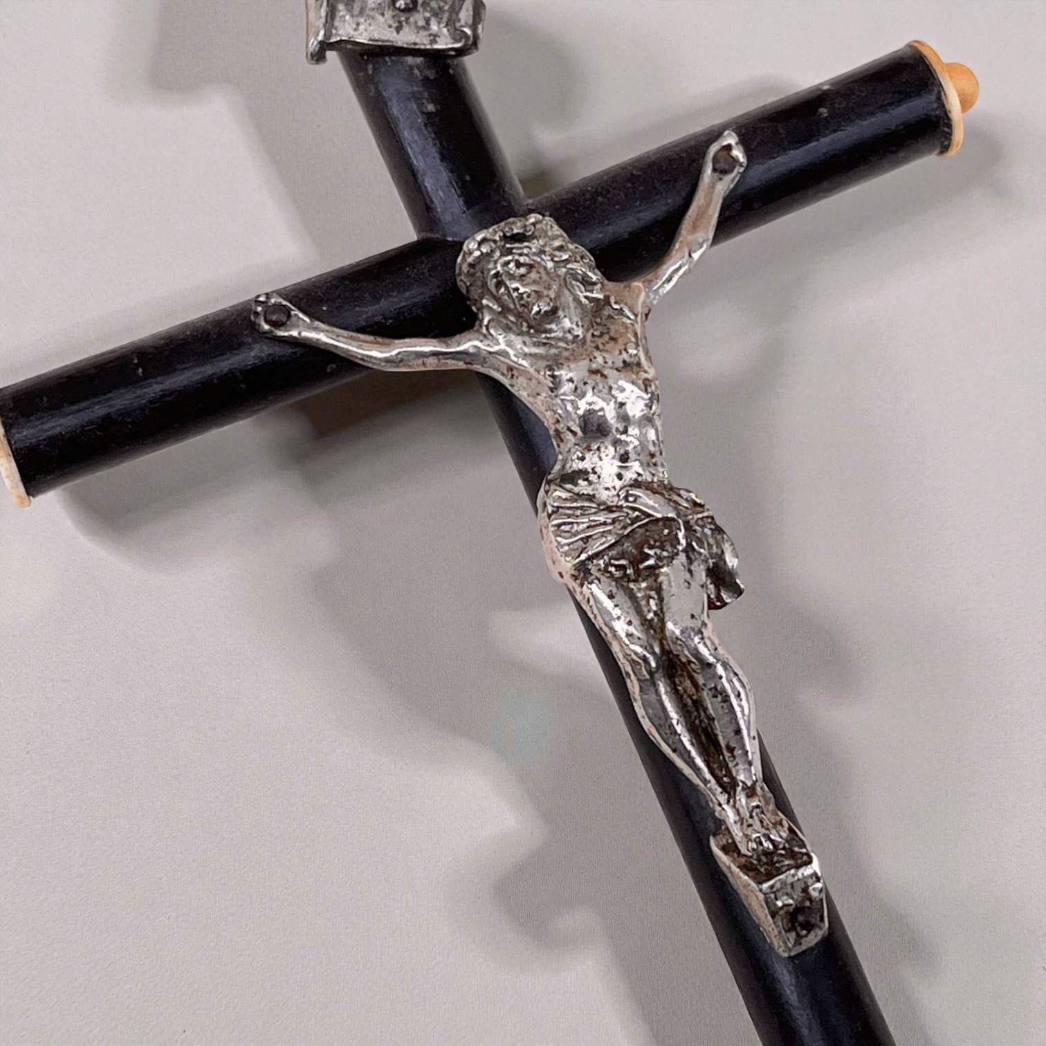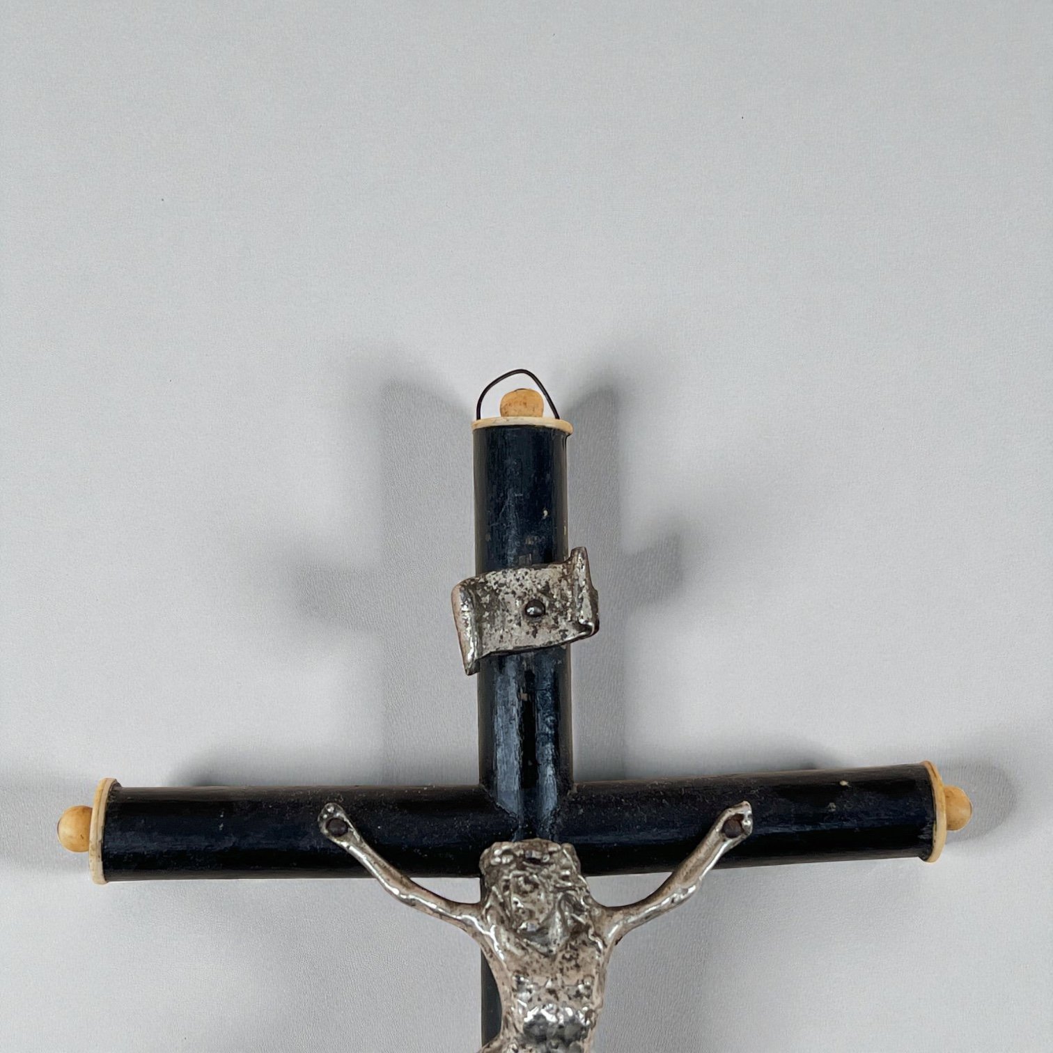 Le Christ est en métal argenté, aux quatres extrémités une décoration en os.