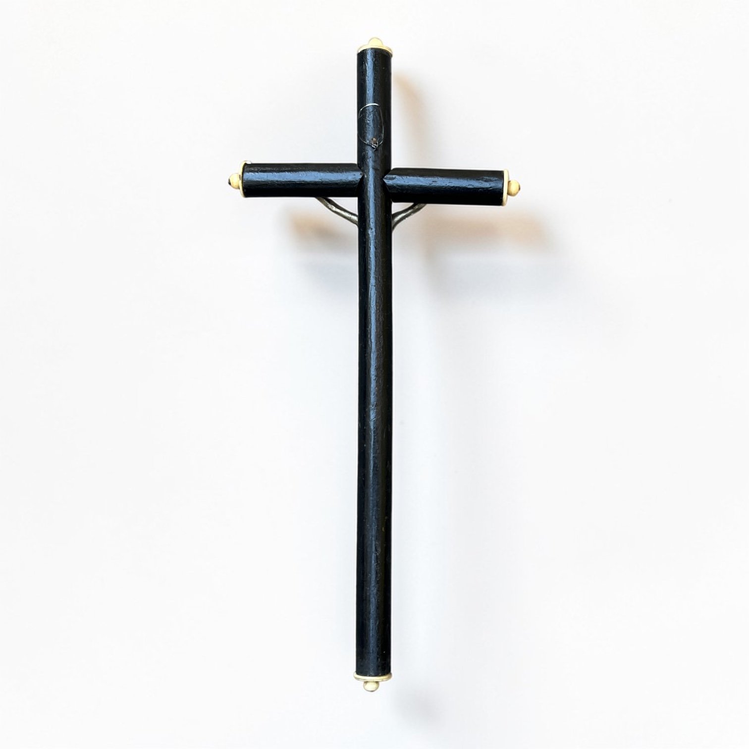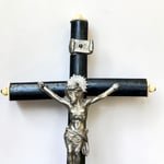 Crucifix antique de Jésus Christ - Napoléon III – Bois noirci et Christ en métal - XIXe