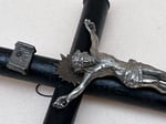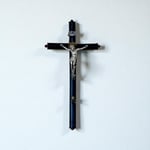 En bois noirci, elle est ornée d’un Christ en métal , délicatement travaillé.