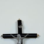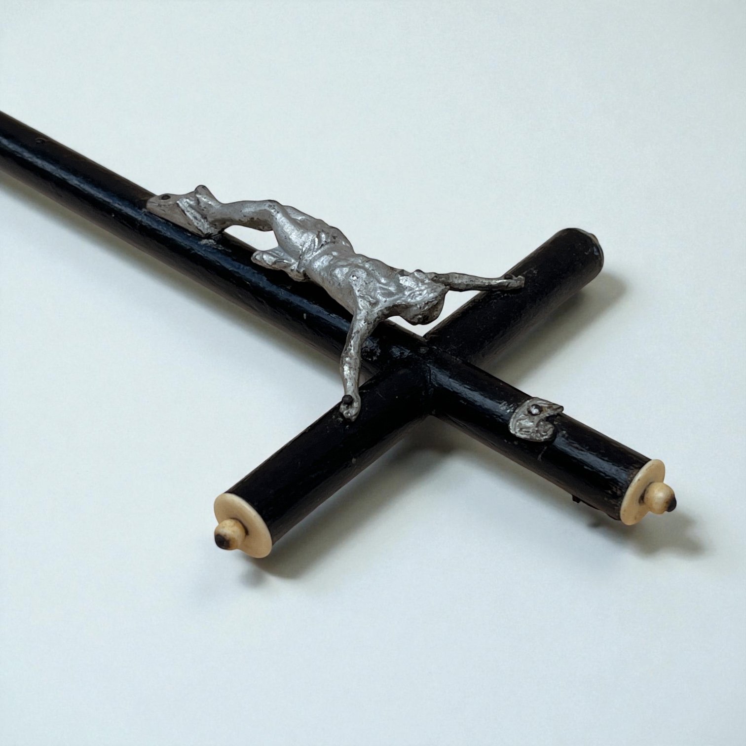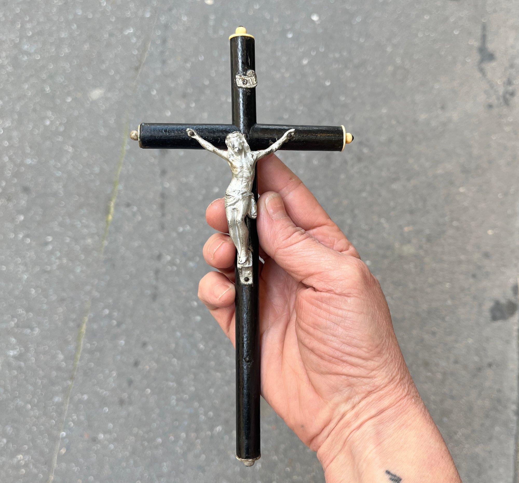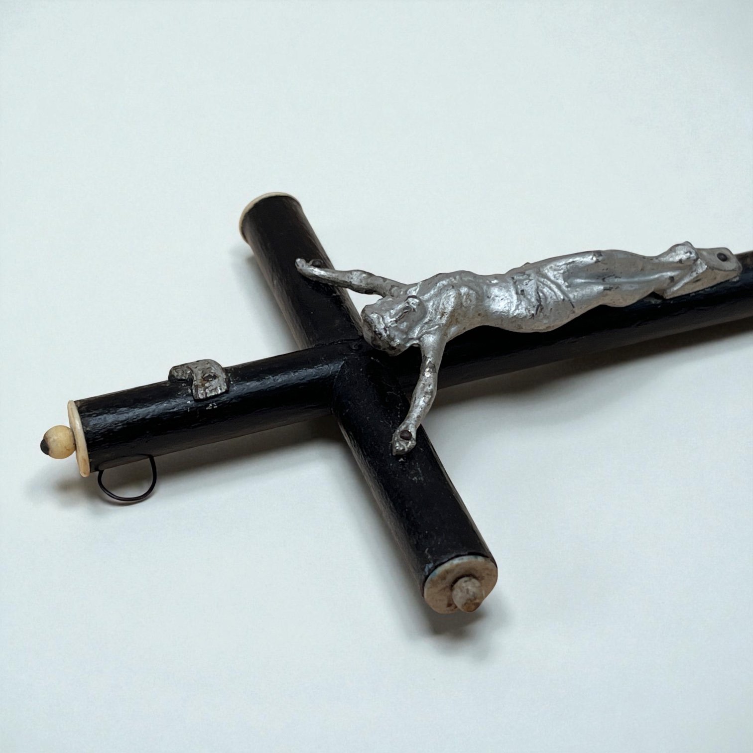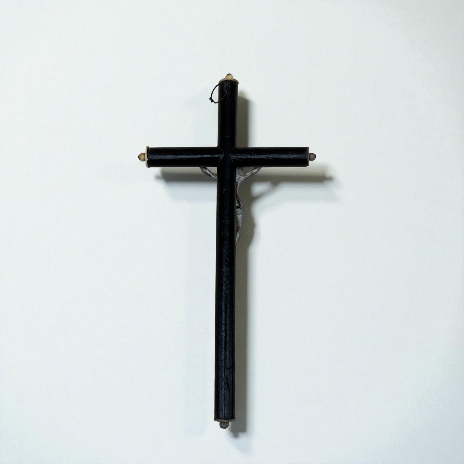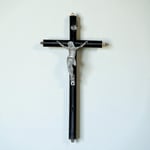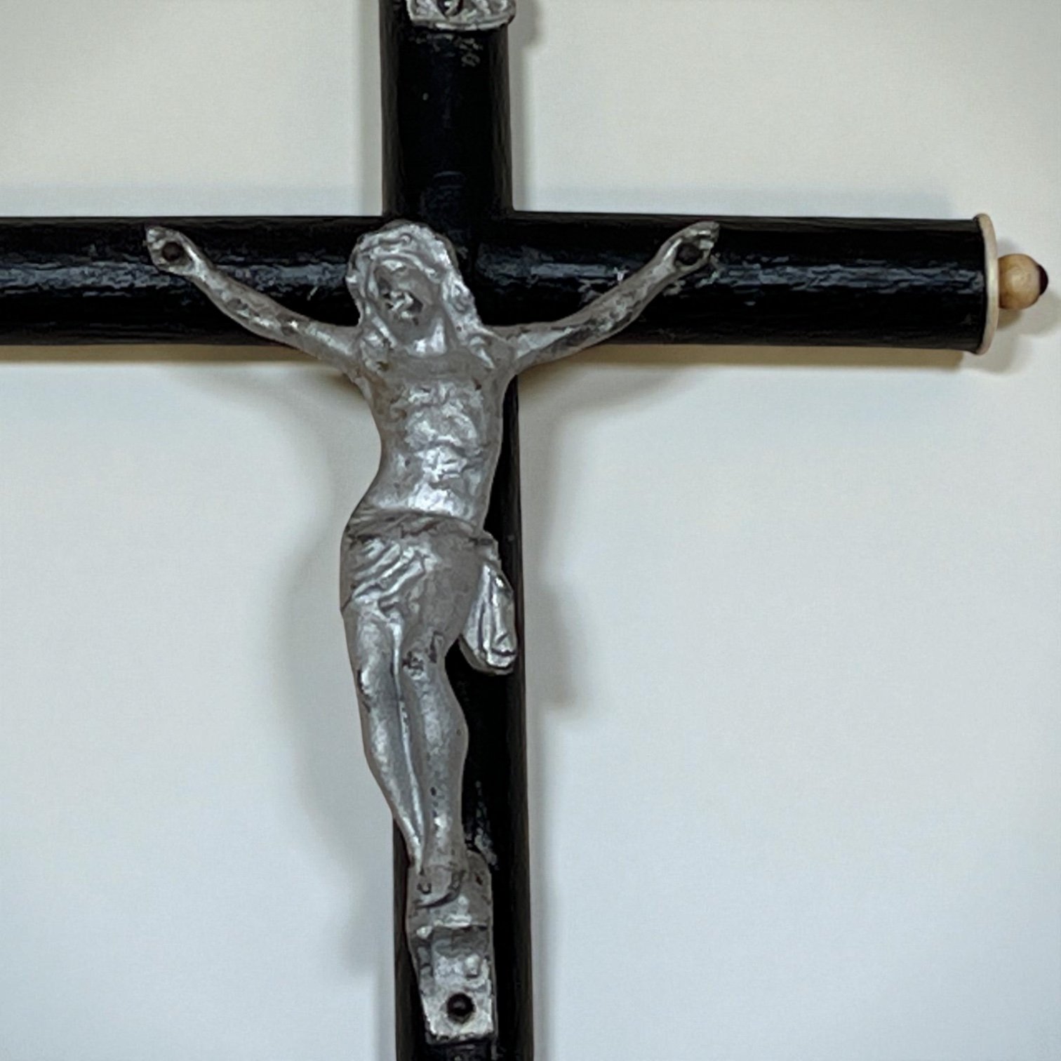 Crucifix antique Jésus Christ / Napoléon III en bois noirci et Christ en métal - fin XIXe.