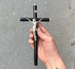 Très belle Croix de Jésus d'époque Napoléon III fin XIXe en bois noirci.