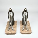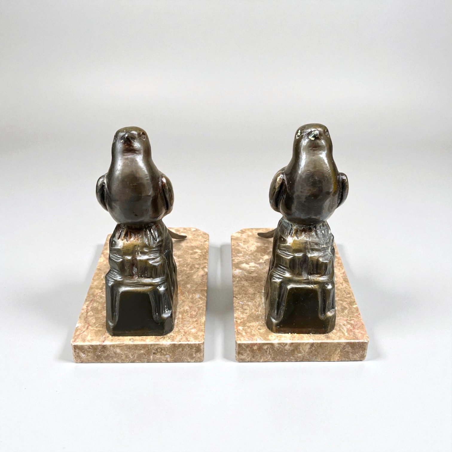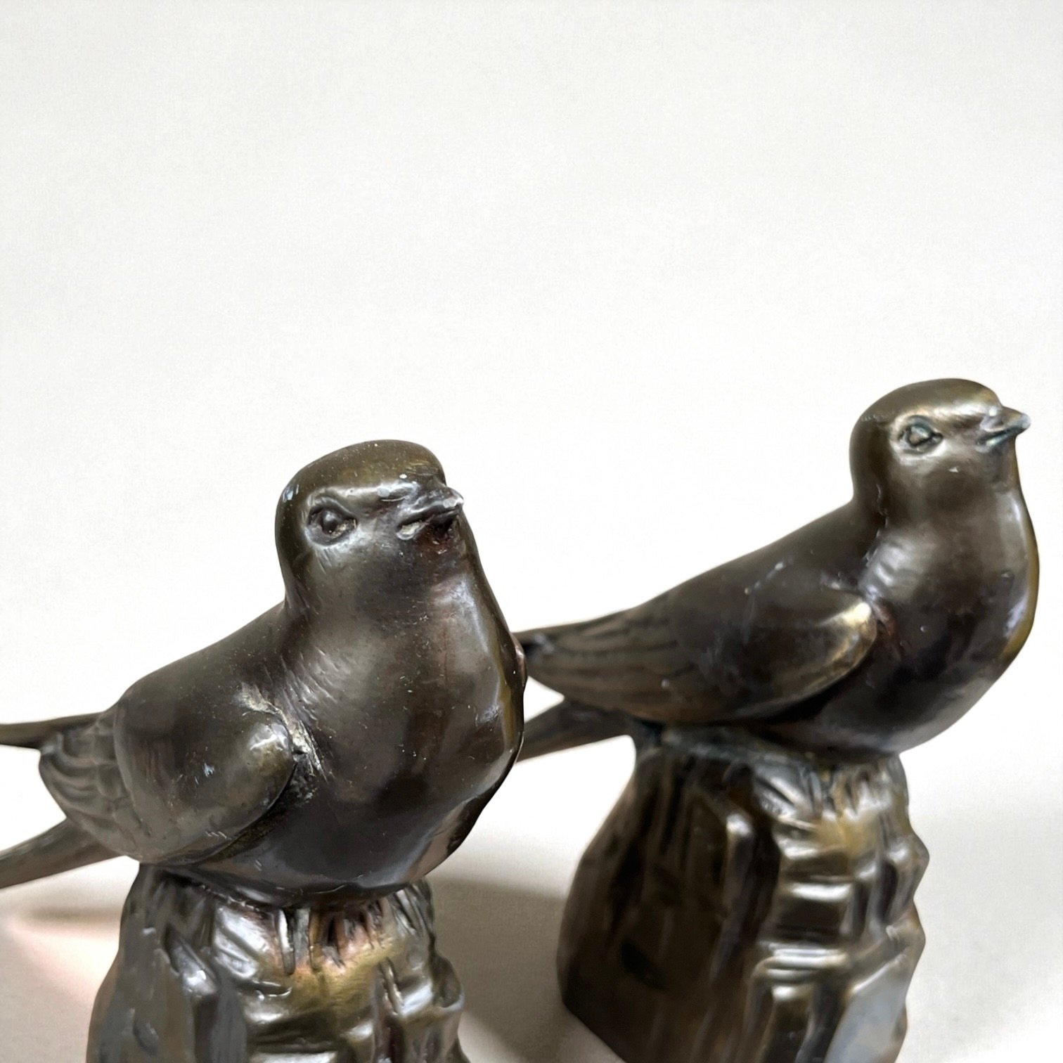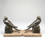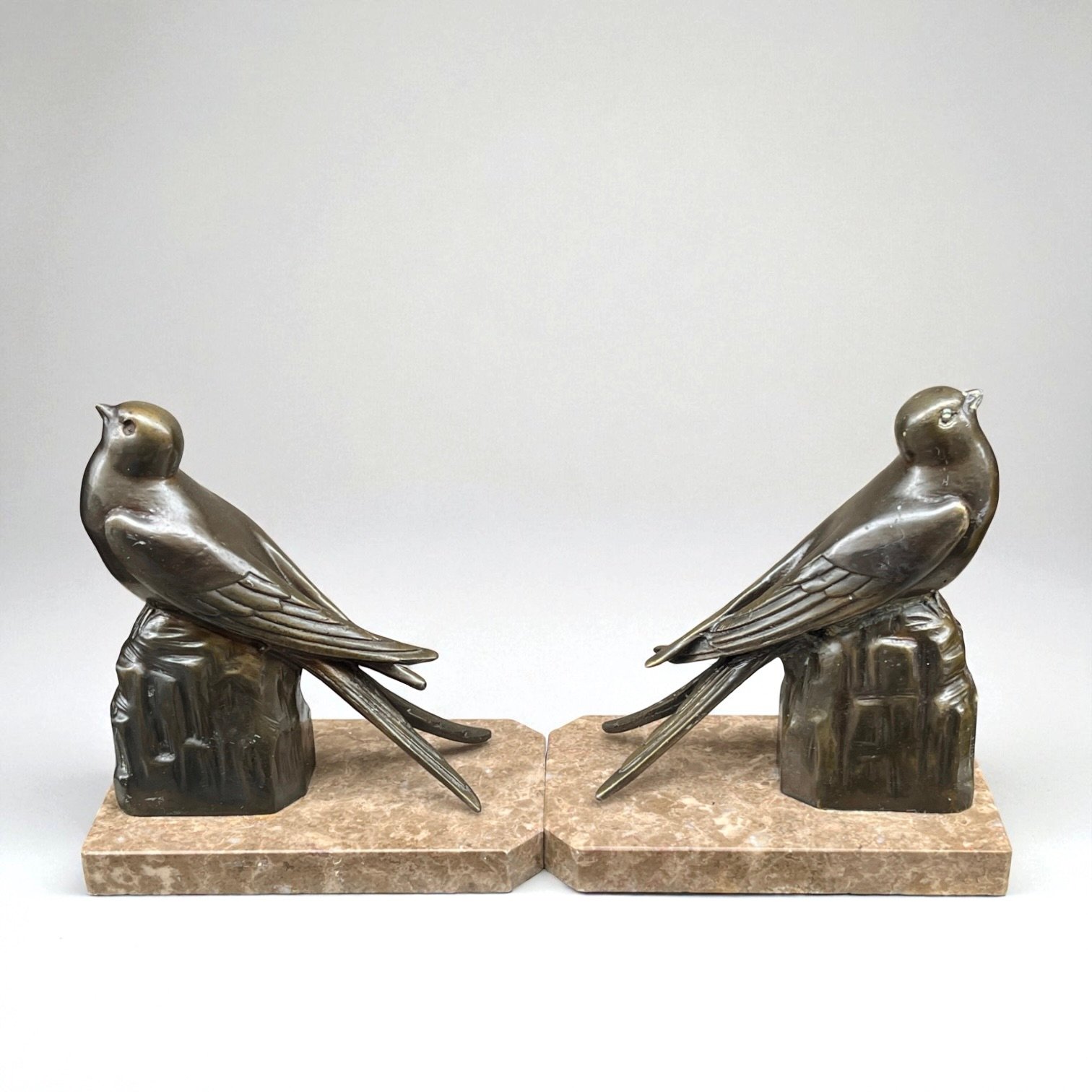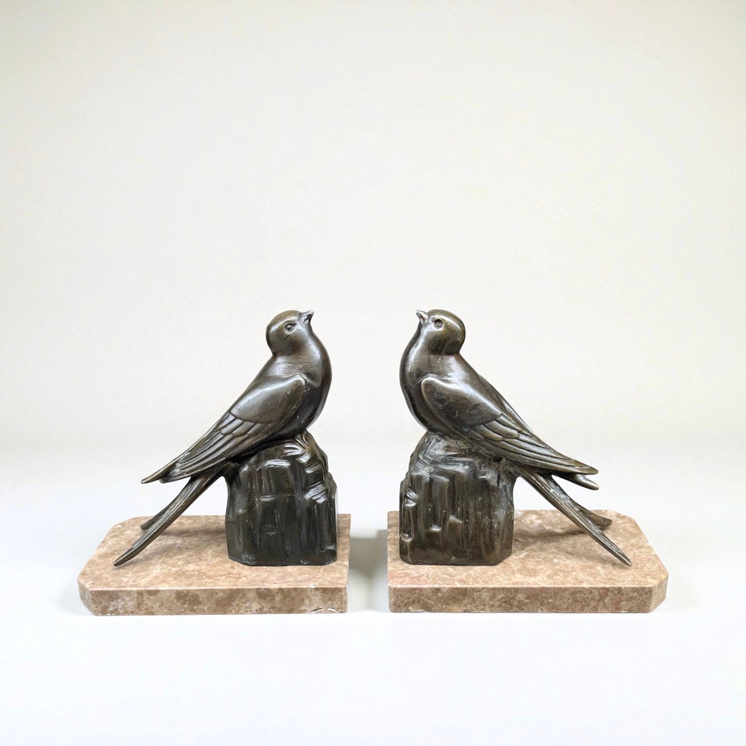 Deux serre-livres Art Déco Hirondelles en marbre et métal bronze 1930s serre-livres oiseaux
