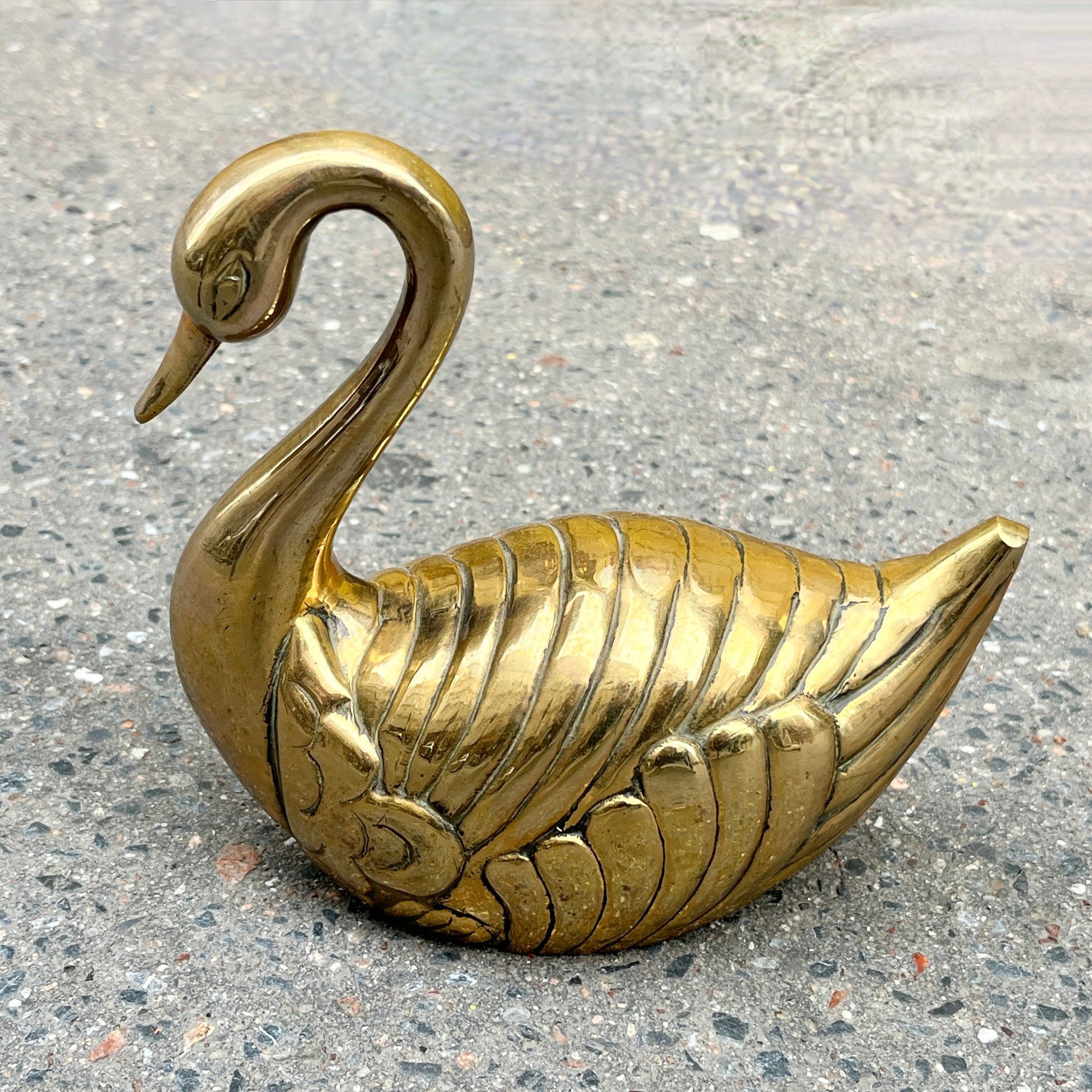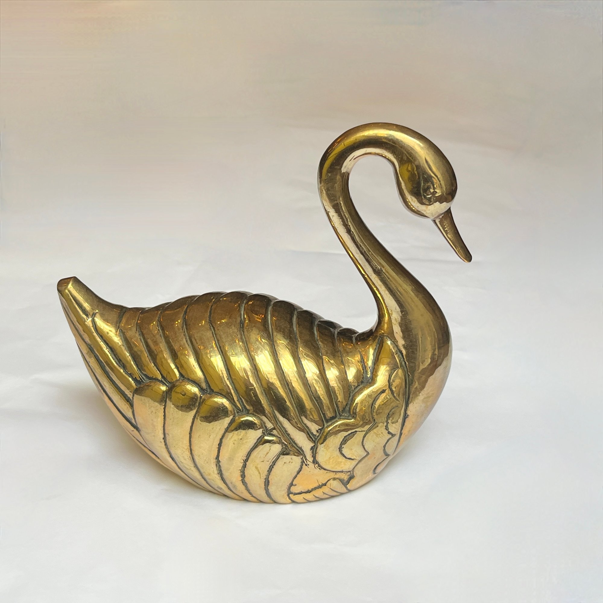 Figurine grand cygne en laiton – Décoration vintage années 70