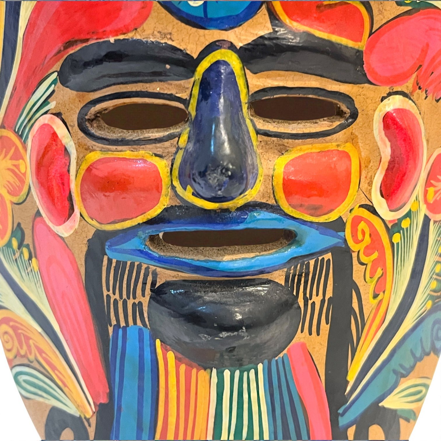 Grand masque mexicain vintage en terre cuite peint à la main – Années 70 - 80