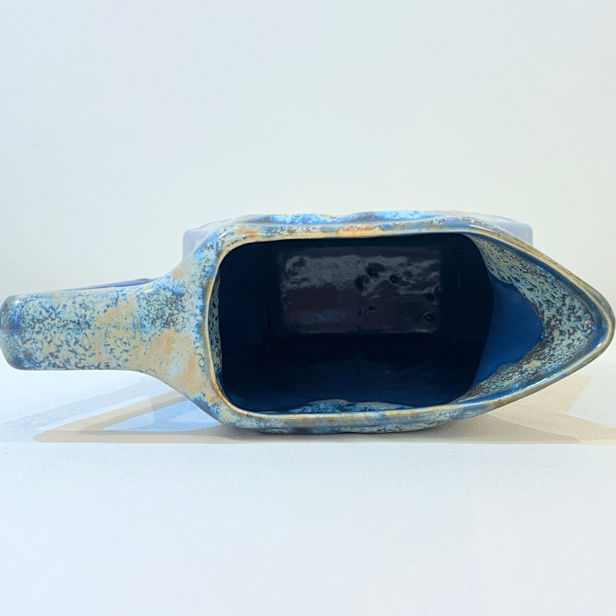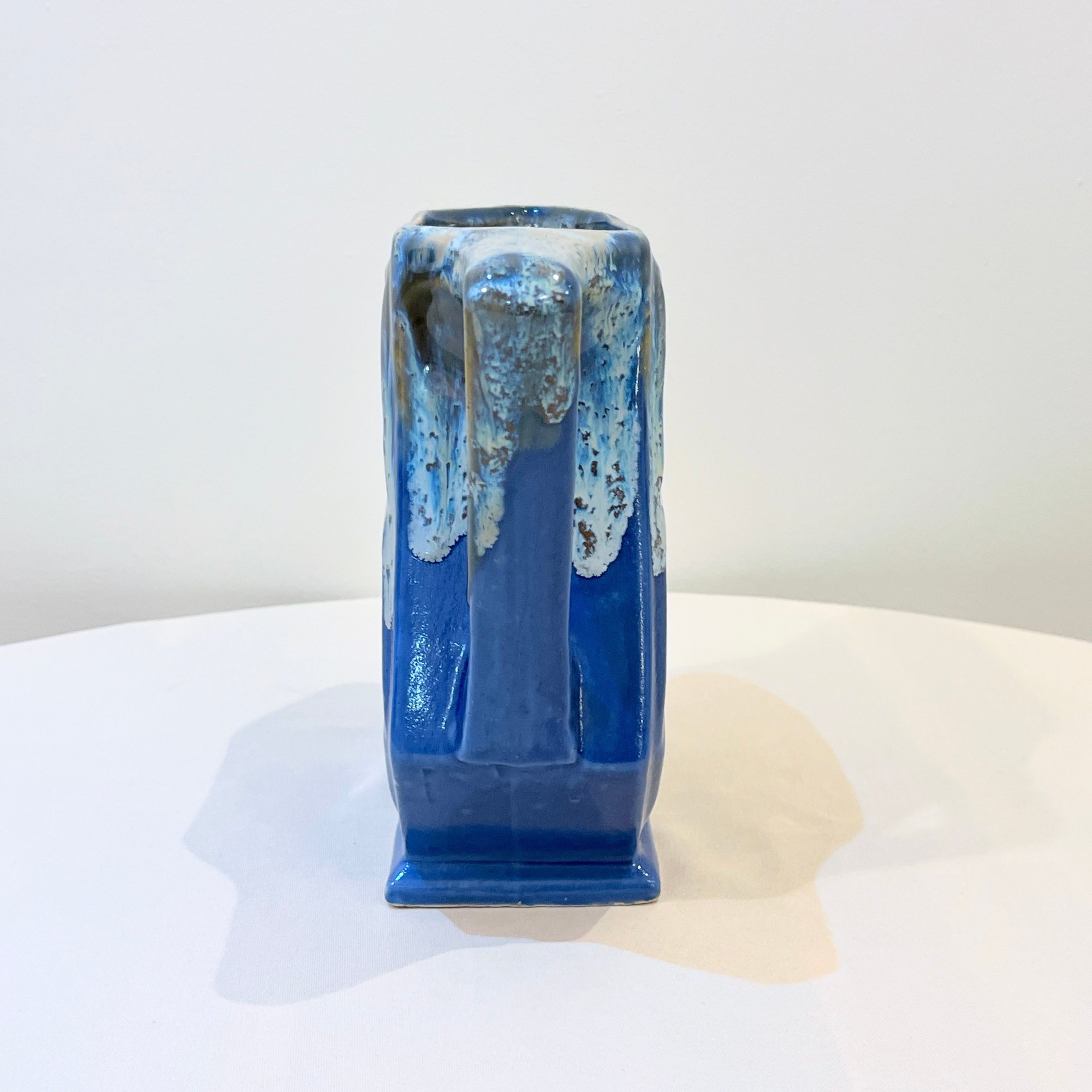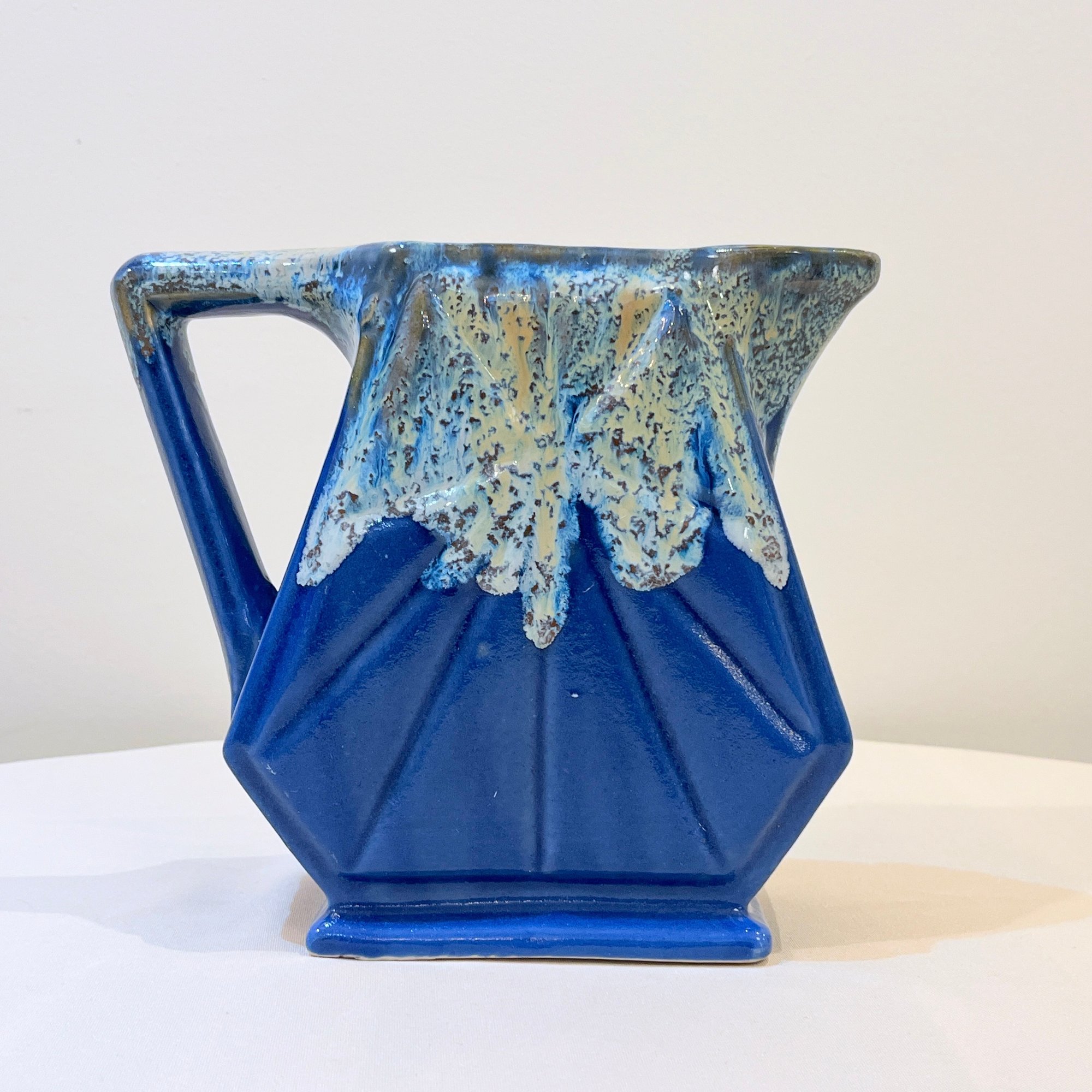 Grand Pichet ALPHO Art Déco avec anses en céramique bleu FAT LAVA