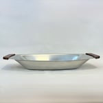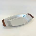 Grand plat rectangulaire en inox et teck Braun & Kemmler West Germany 1970 Design Bauhaus