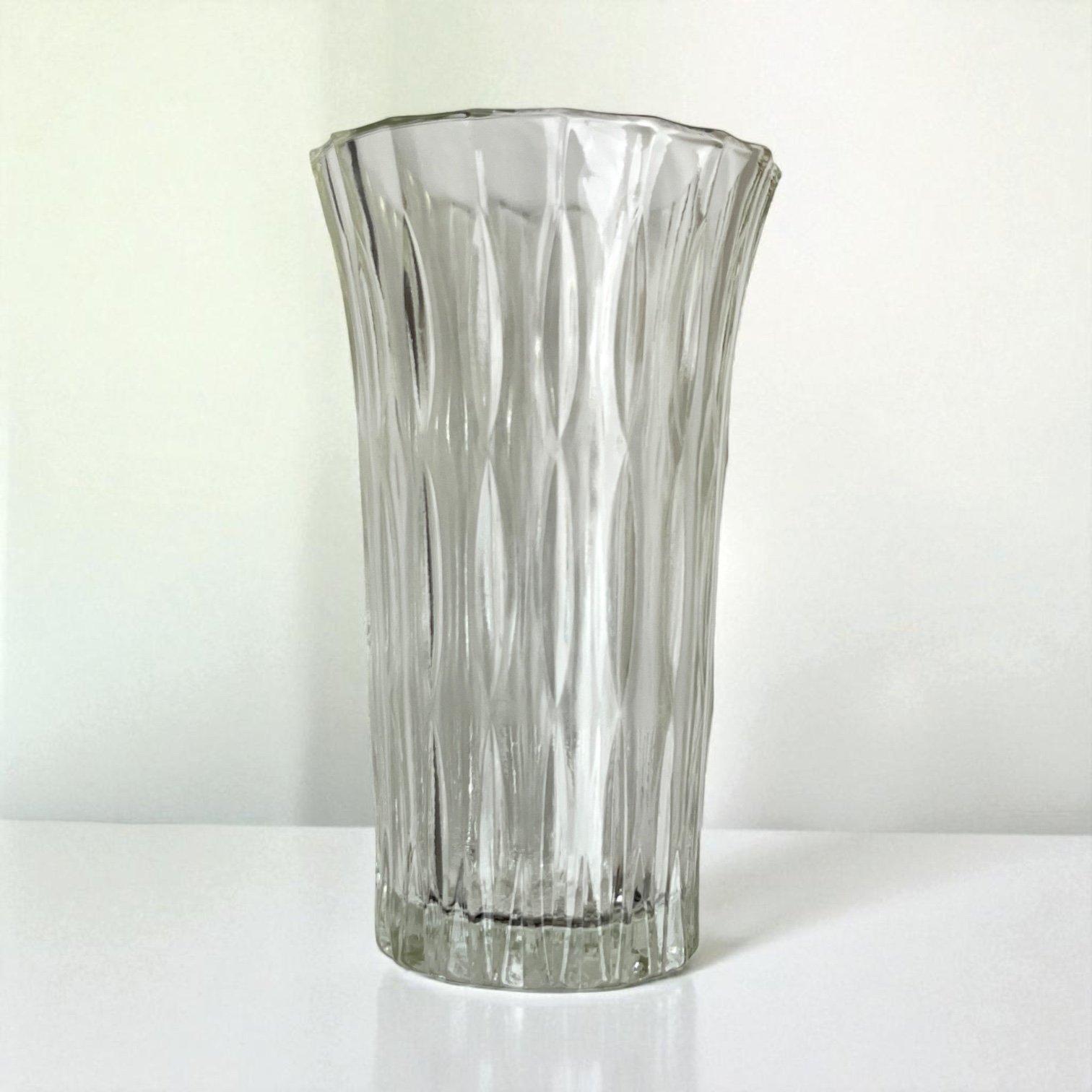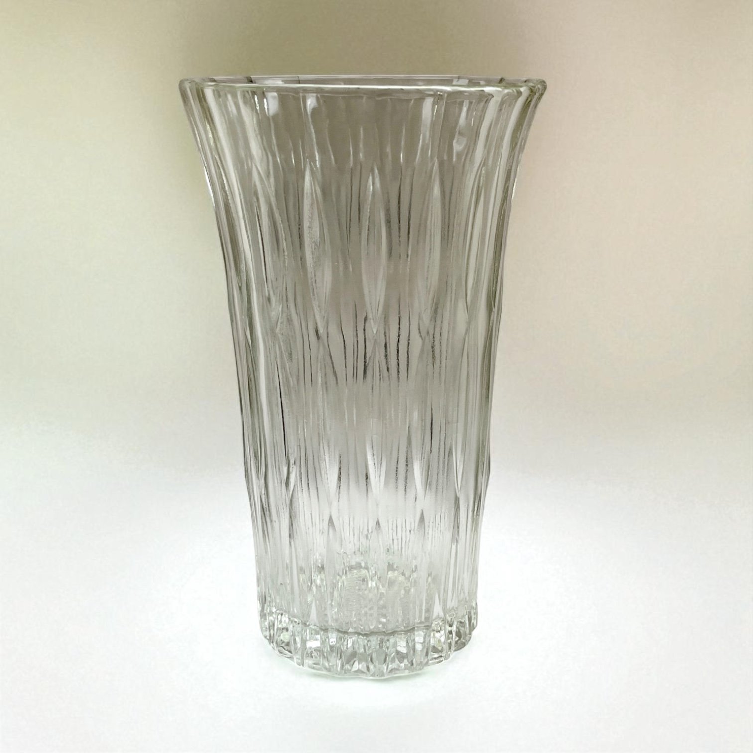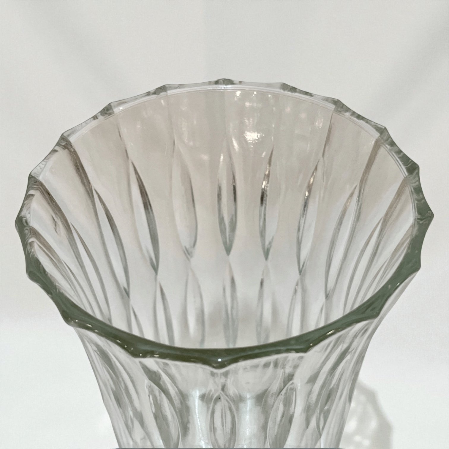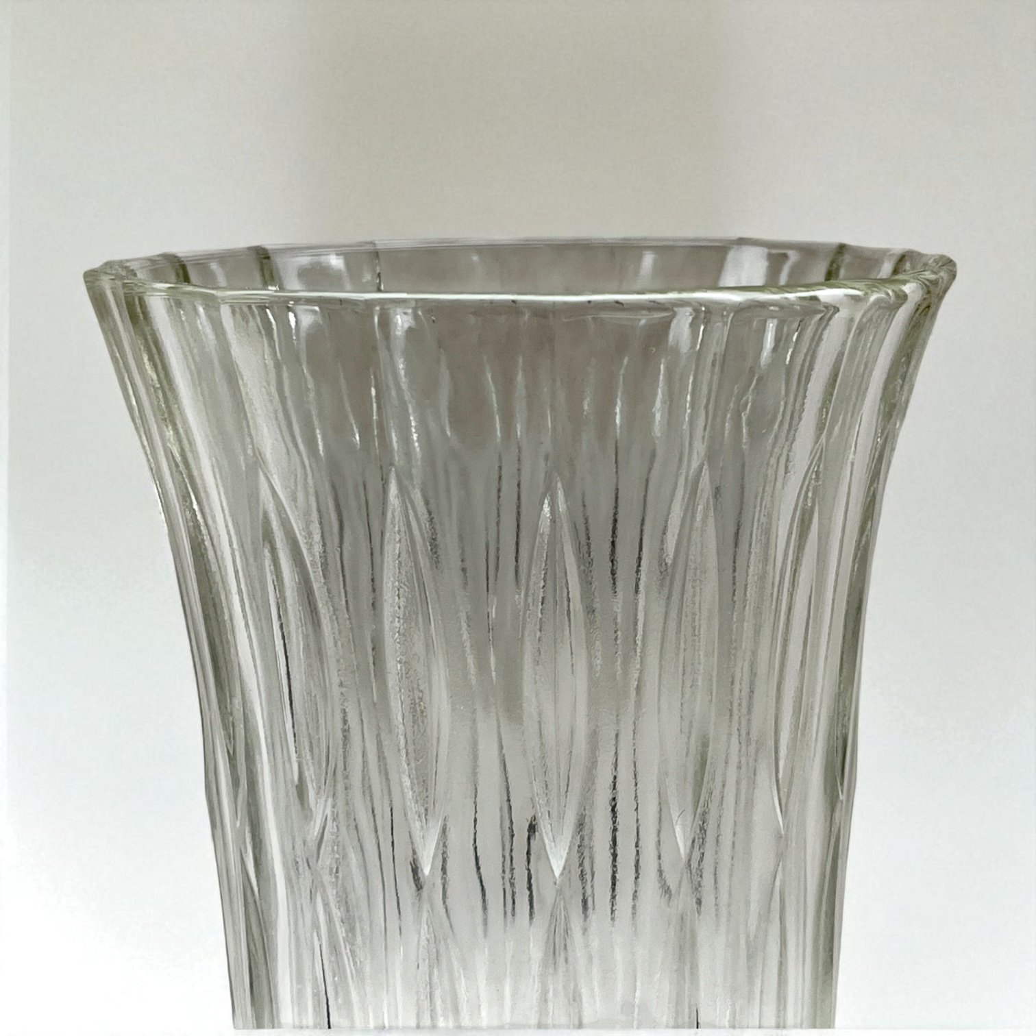 Grand vase Art Déco vintage en verre moulé motif losanges allongés – Années 30 - 40