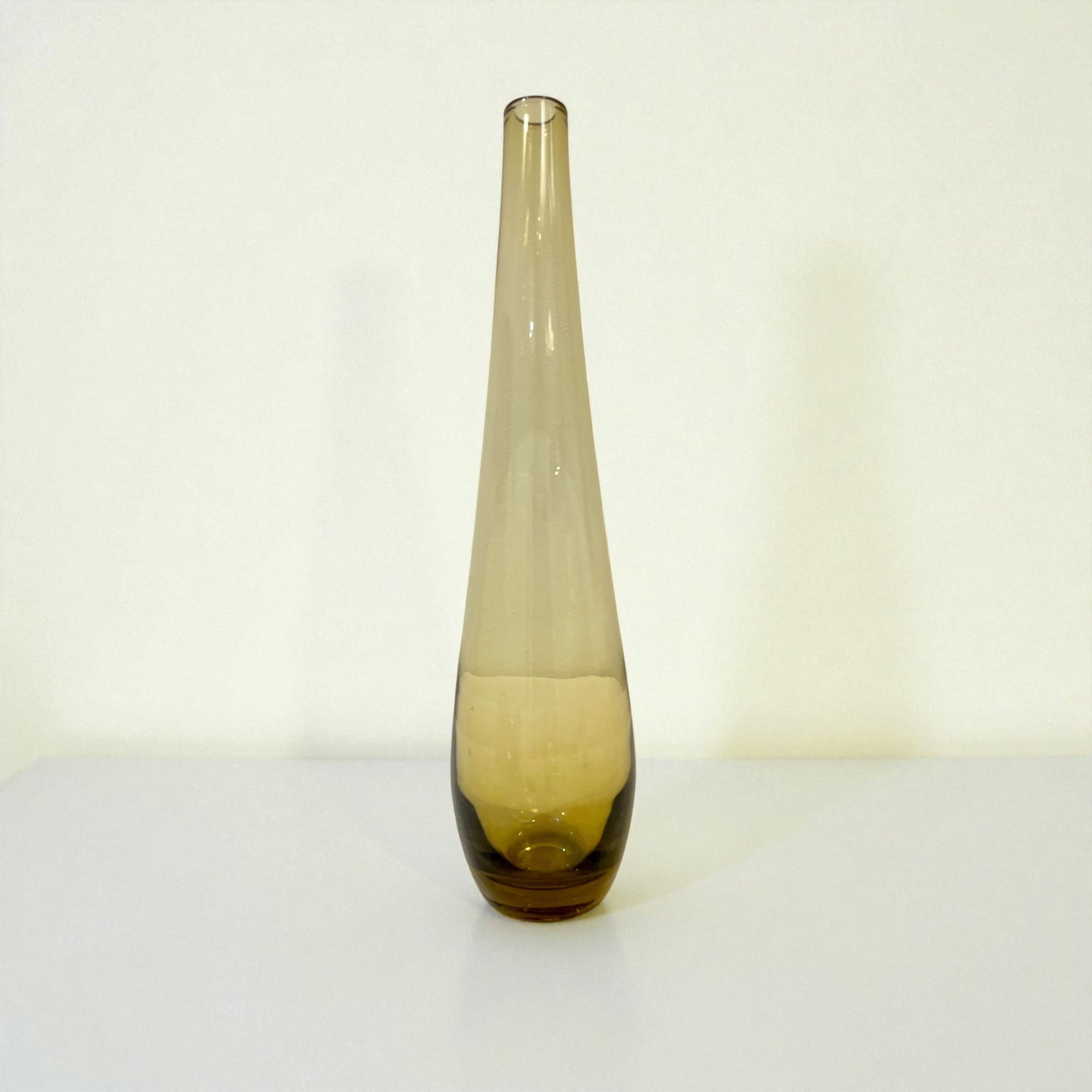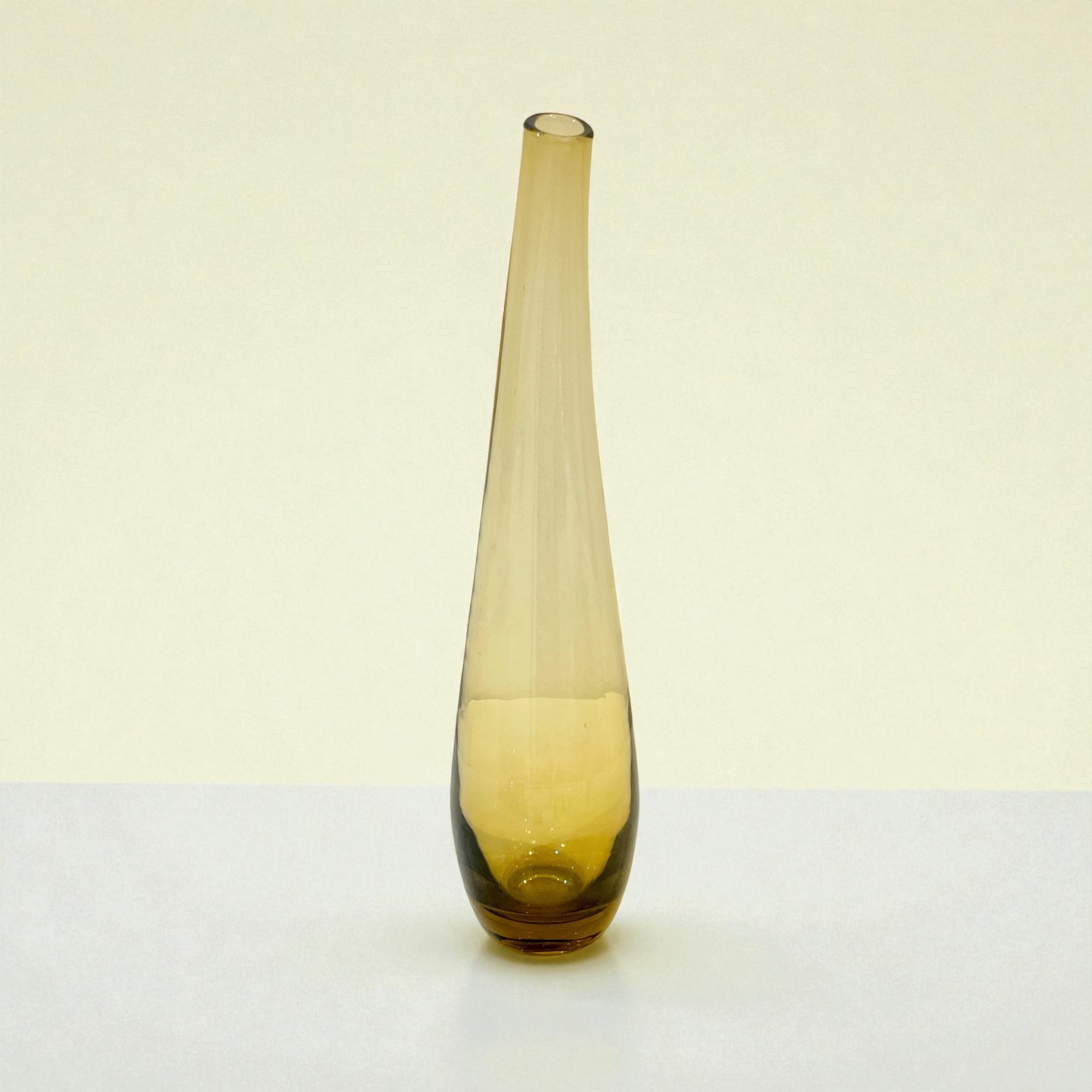 Grand vase soliflore IKEA – Design Lotta Pettersson – Verre soufflé jaune fumé (années 2000)