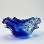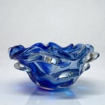 Grand vide-poche Sommerso en verre bleu & transparent - Murano Venise Artisanat d'Art 1970