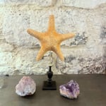 Grande étoile de mer sur socle en bois tourné - Protoreaster nodosus - cabinet de curiosités
