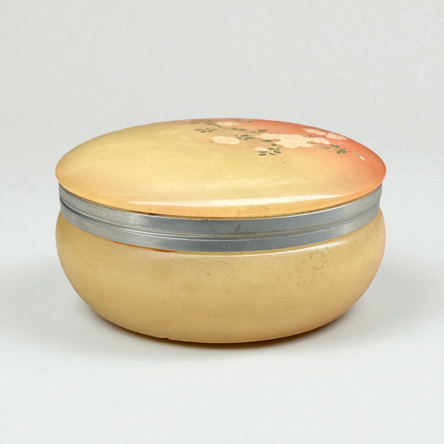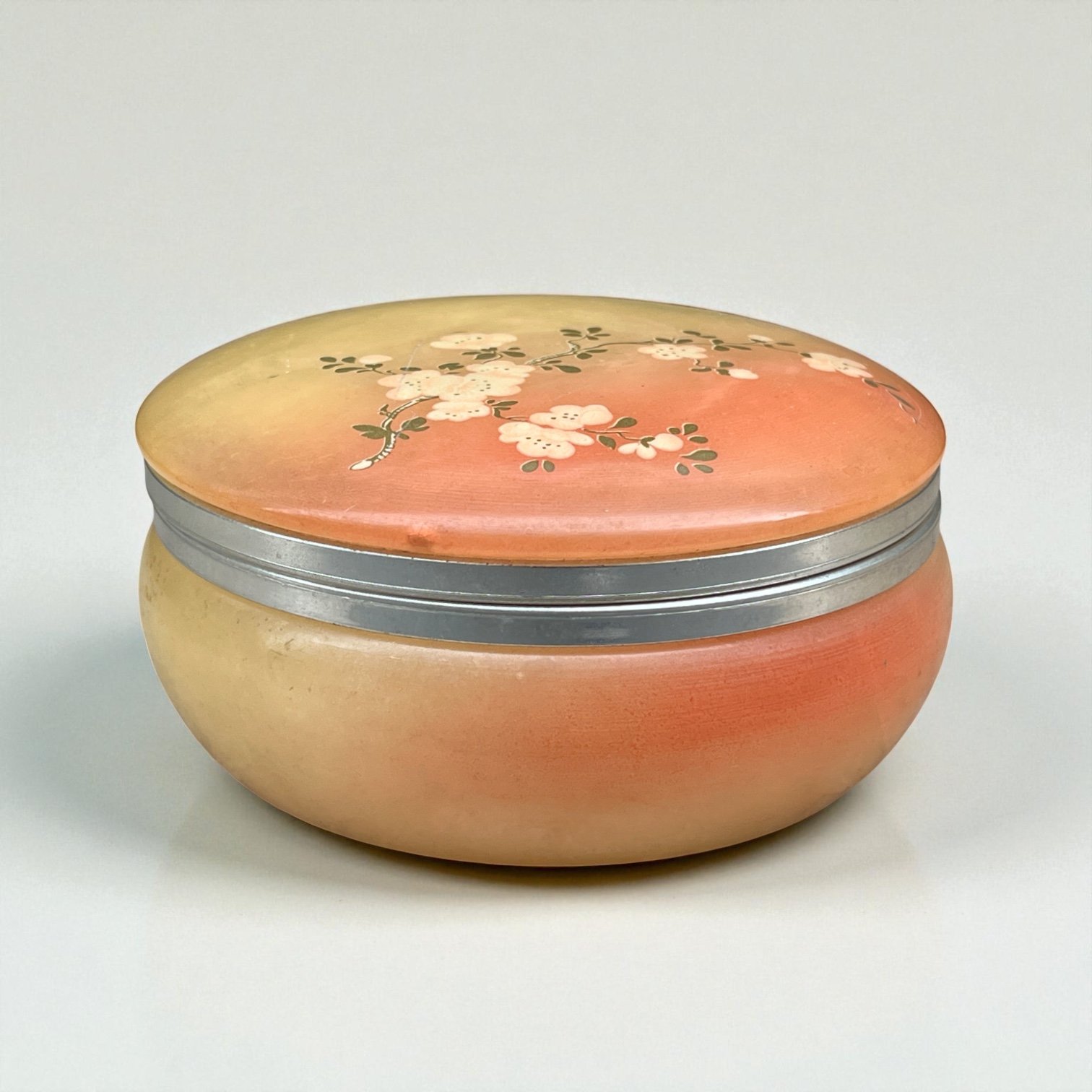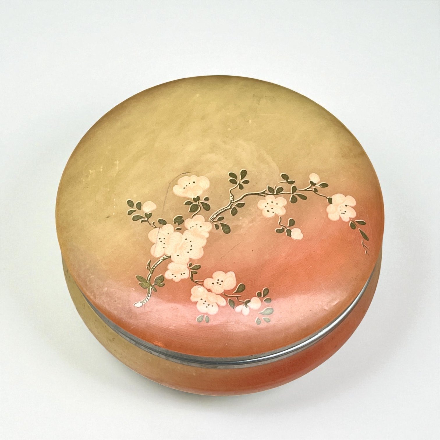 Grande Boîte à bijoux en albâtre avec fleurs de cerisier rose - vintage 1970s.