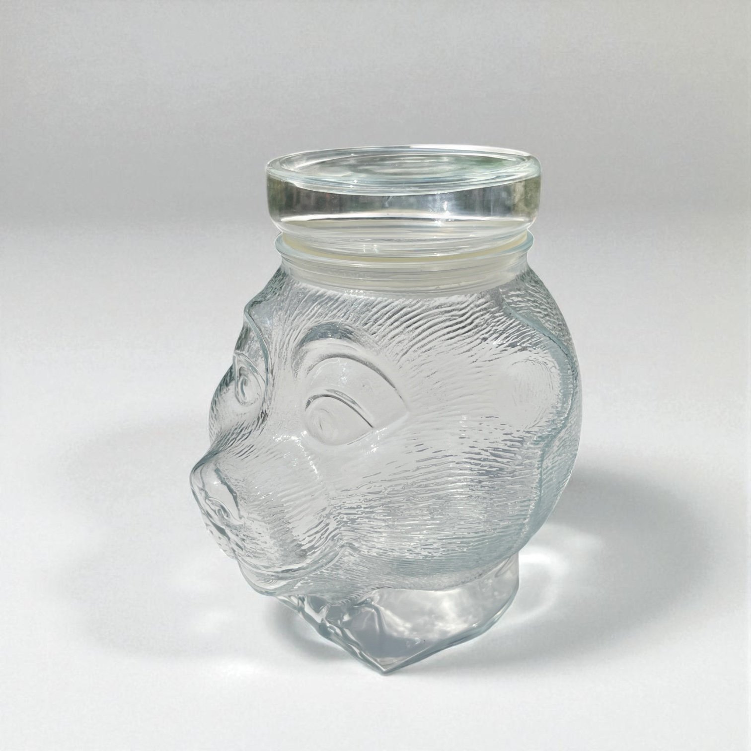 Grand bocal en verre tête d'ours LUMINARC vintage 1970 bonbonnière Pot à bonbons