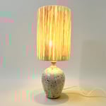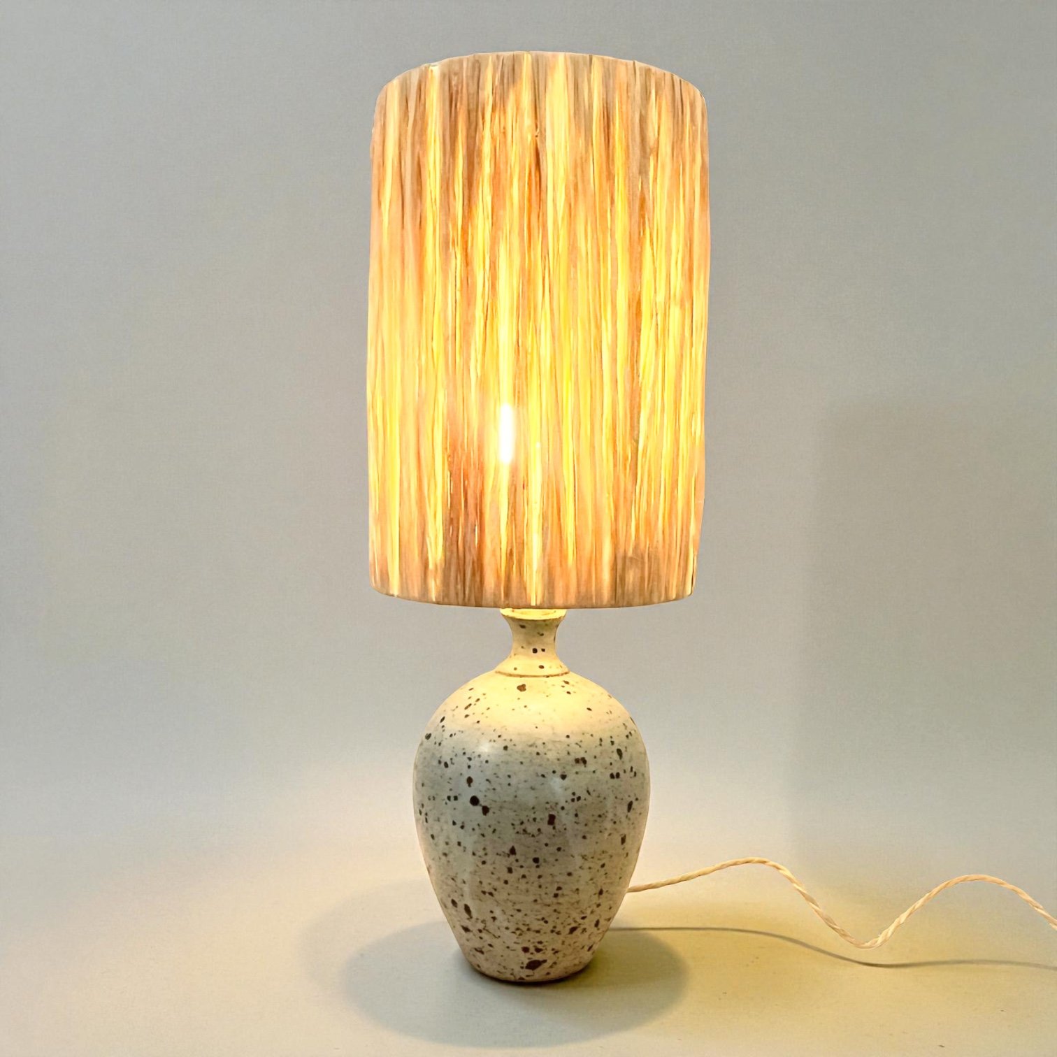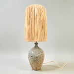 Grande lampe céramique grès beige gris pyrité vintage 1960s - 1970s - Abat-jour en raphia