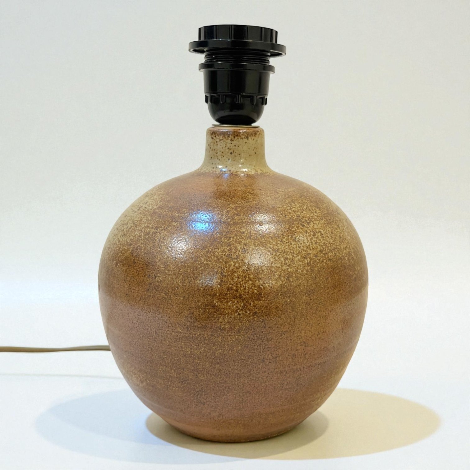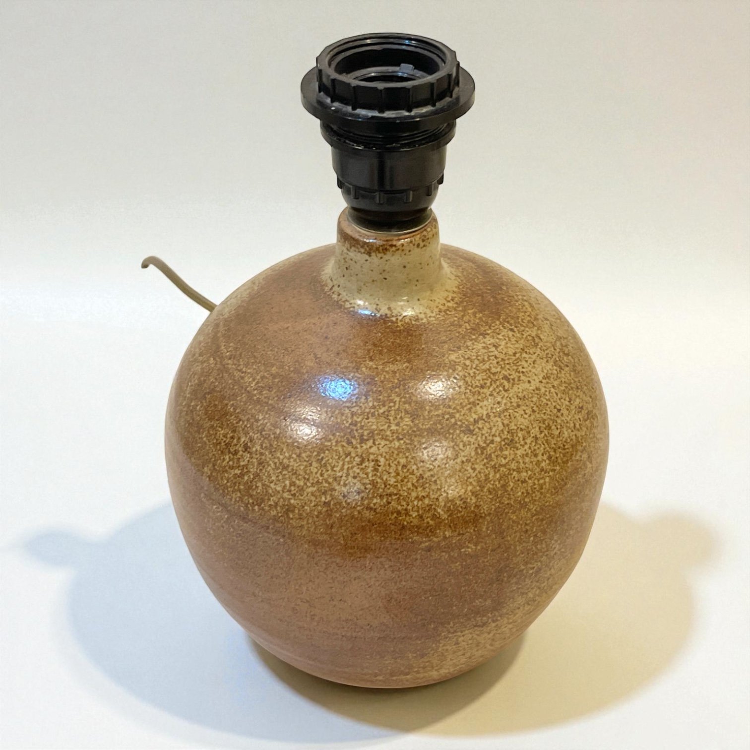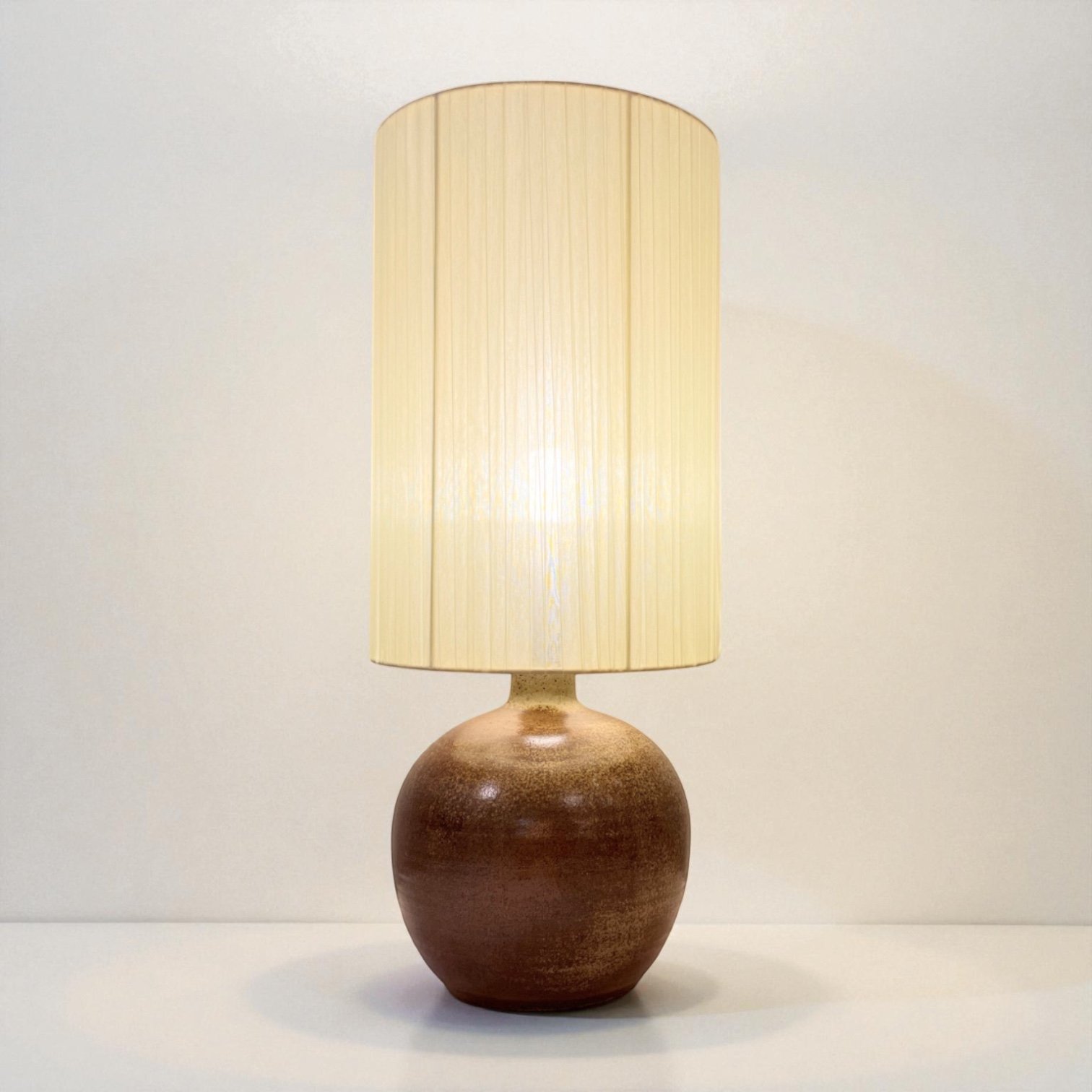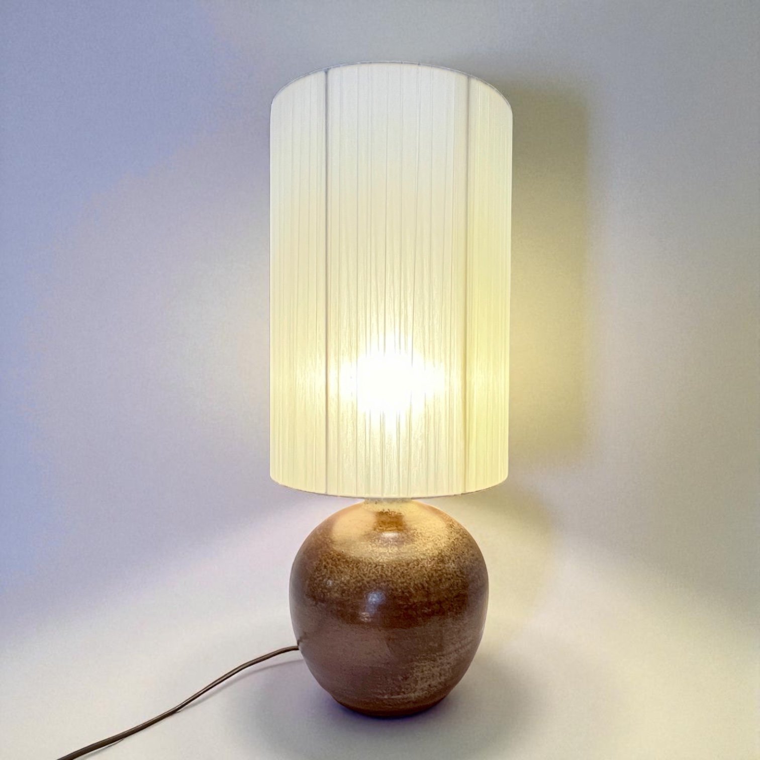 Grande lampe céramique grès marron pyrité vintage 1960s - 1970s - Abat-jour en ruban