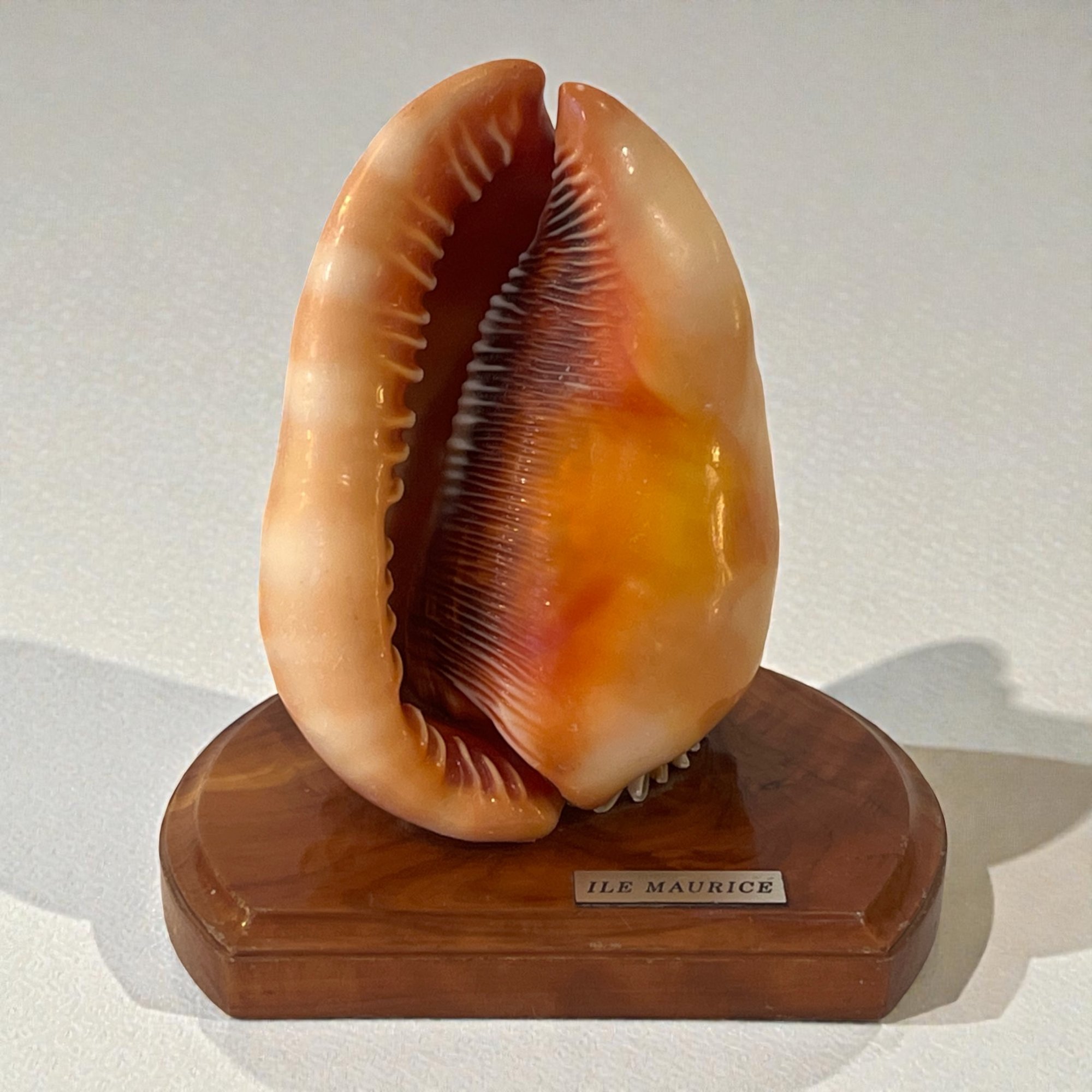 Il s'agit d'un souvenir artisanal authentique des années 70 de l'Île Maurice comme l'indique la plaque sur le socle. Très bel état.