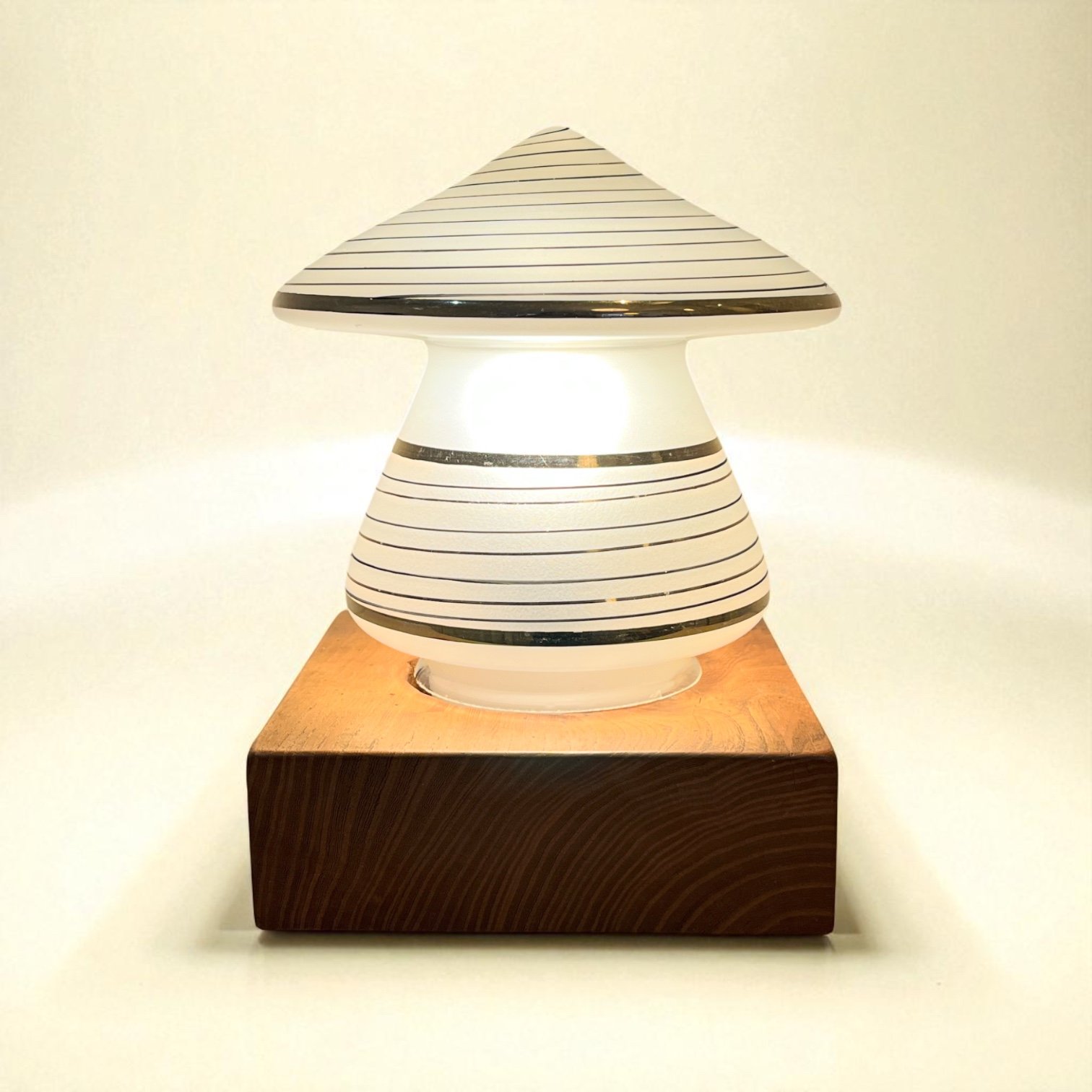 Lampe de table vintage verre de Murano forme champignon et socle bois – années 1960