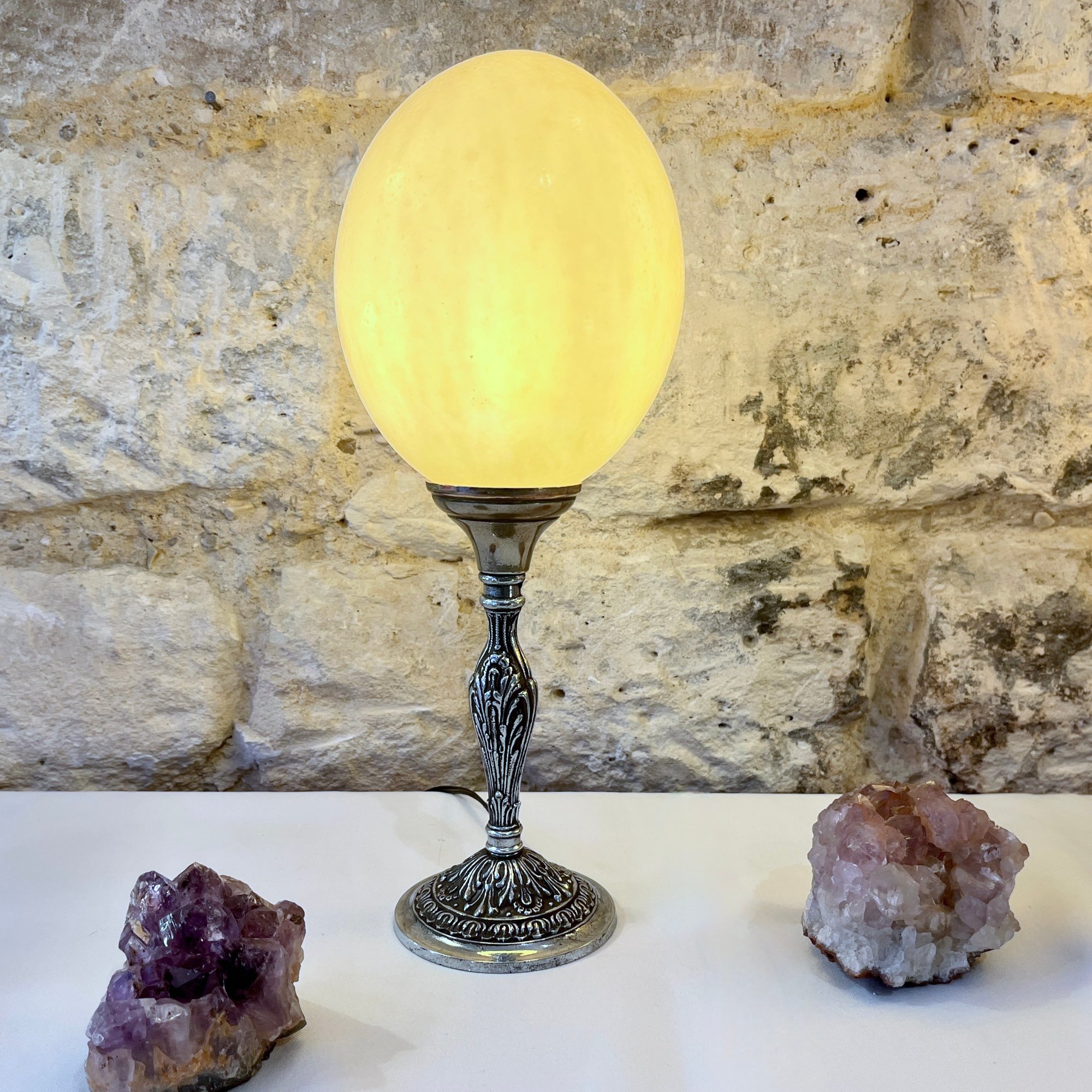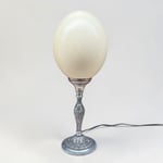 Lampe oeuf d'autruche sur pied en métal argenté ancien - Cabinet de curiosités