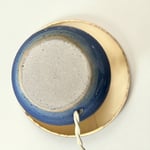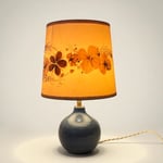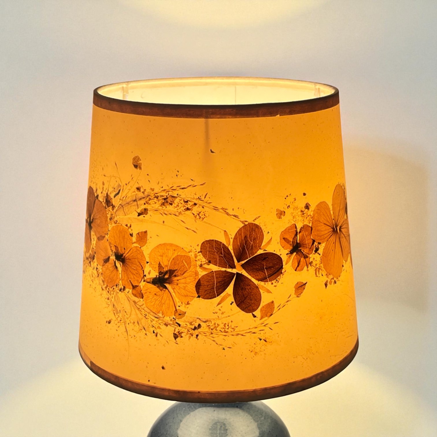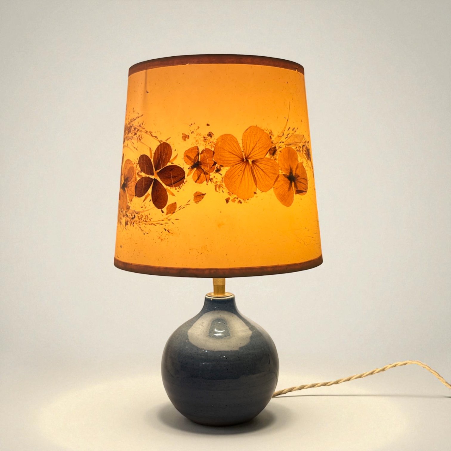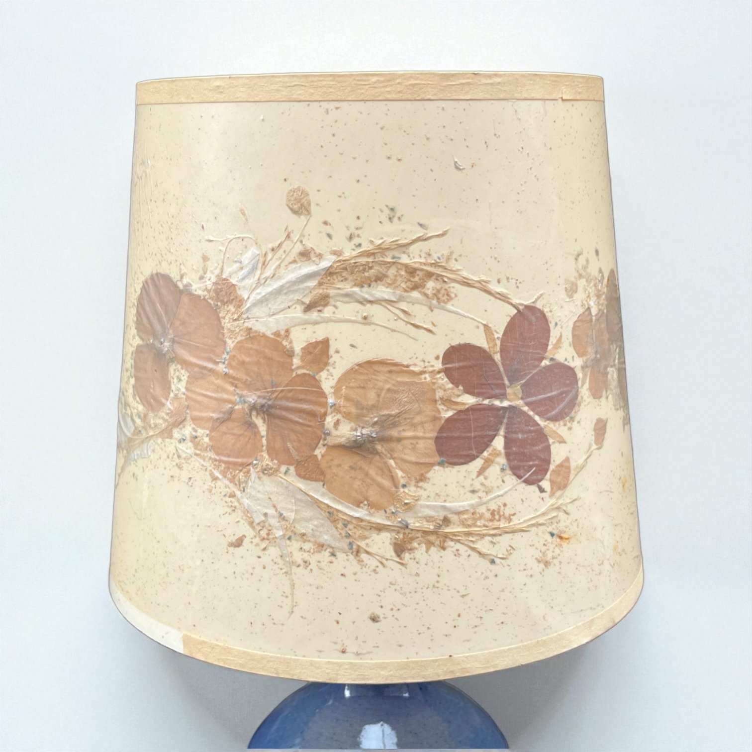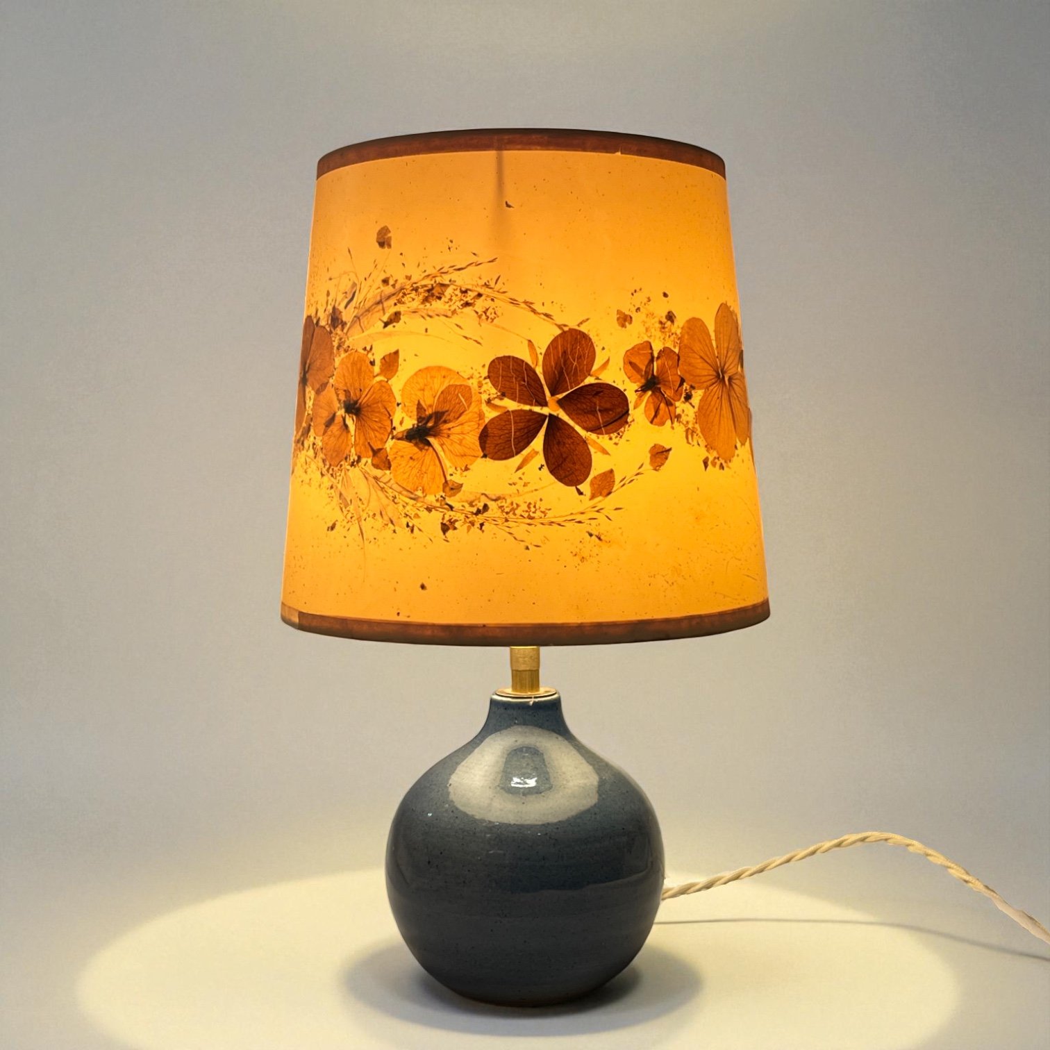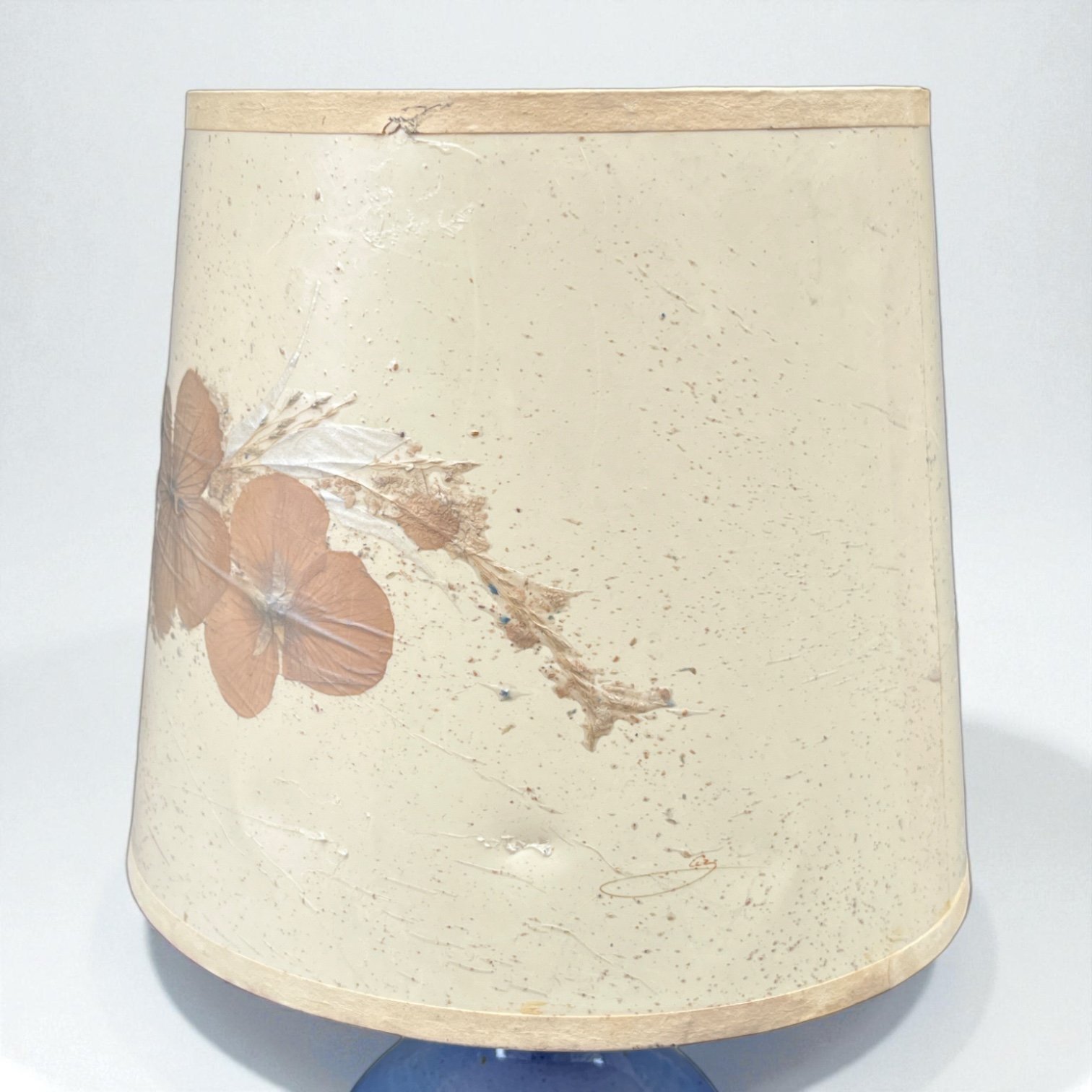 Lampe vintage en grès céramique bleu lavande - 1970s - abat-jour fleurs séchées